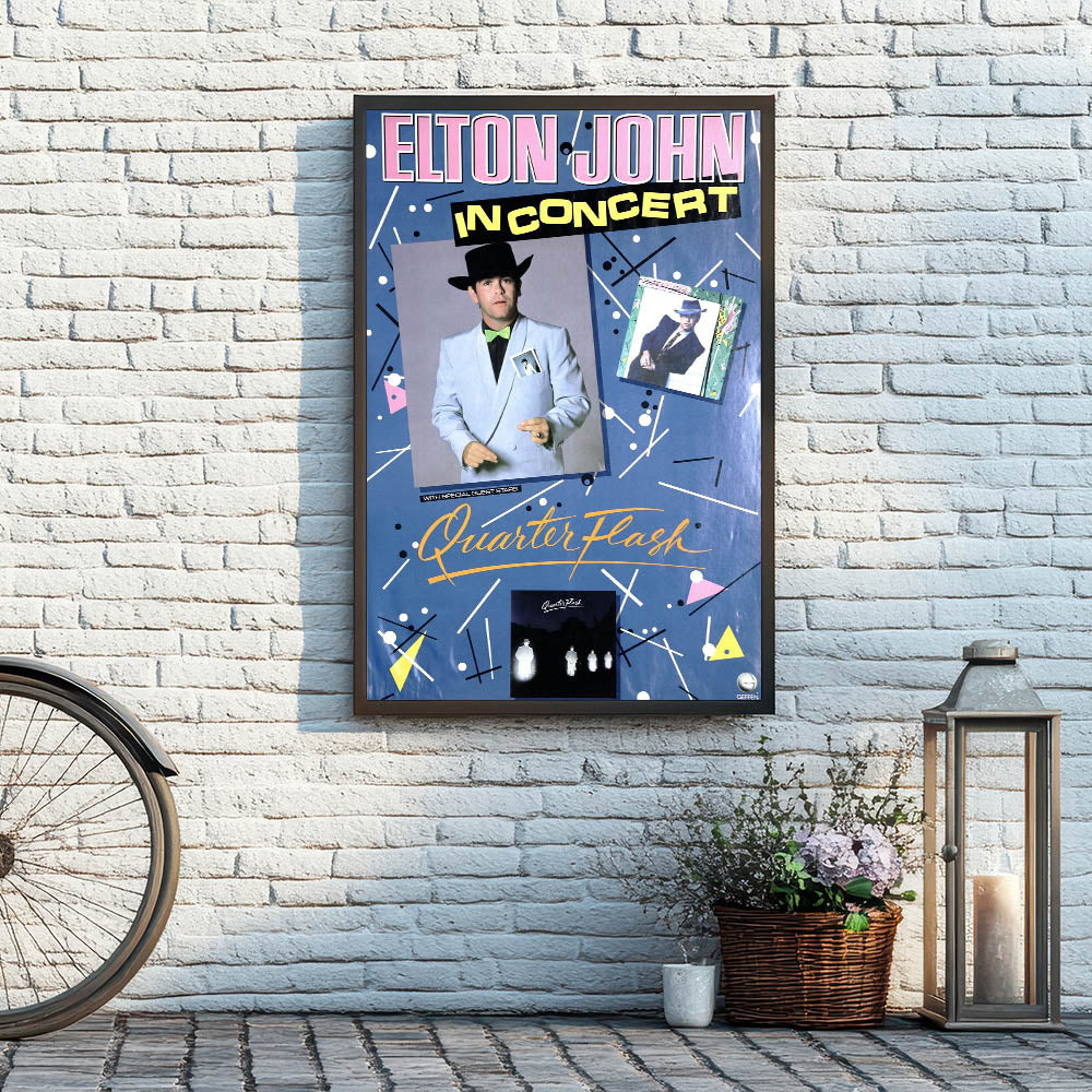 Bring the energy of a legendary concert into your space with this Retro Elton John Concert Poster, featuring classic 1980s design elements and a bold, nostalgic aesthetic. Perfect for vintage decor enthusiasts, this retro poster art captures the essence of a golden era in music, making it a must-have for fans of Elton John, Quarterflash, and iconic live performances.