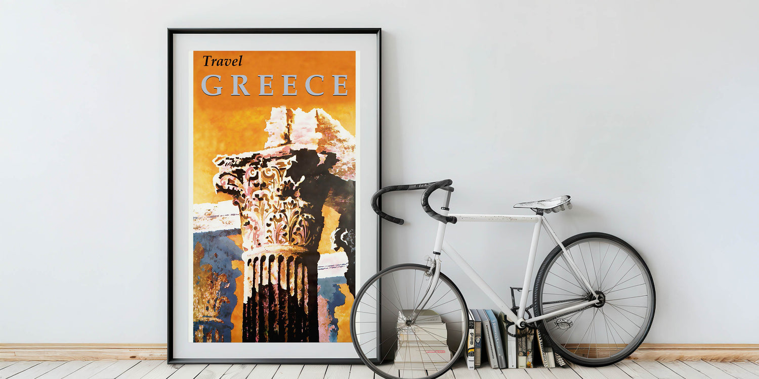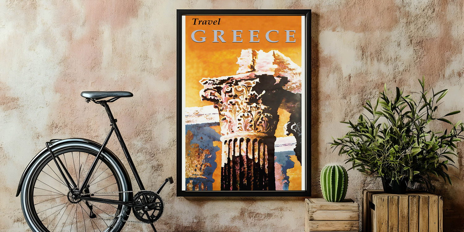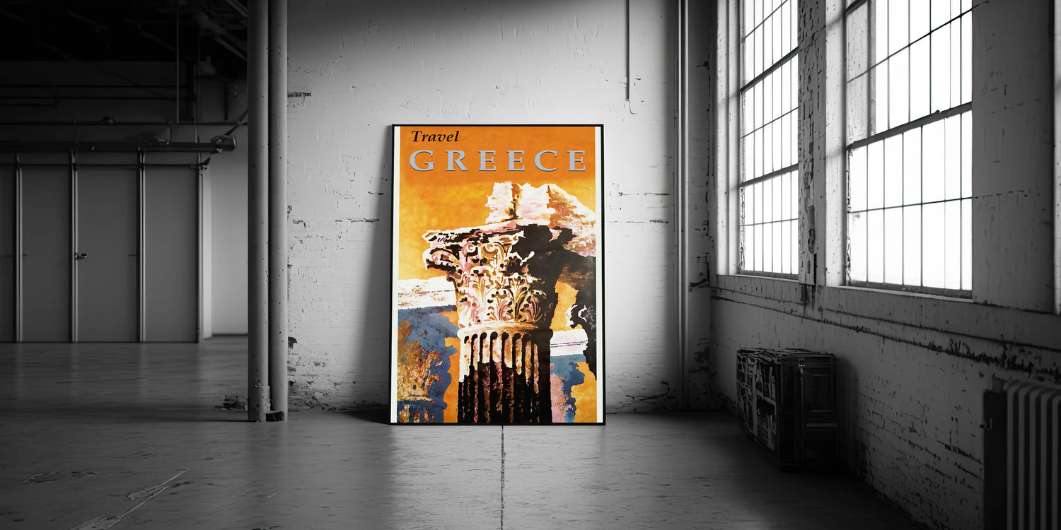 Immerse yourself in the history and beauty of Greece with this Retro Travel Poster, showcasing a stunning close-up of an ancient Greek column. The warm, earthy tones of the background highlight the intricate details of the architecture, offering a unique perspective on Greece’s timeless cultural heritage. This vintage-inspired design captures the essence of Greece’s rich history, making it perfect for those who appreciate art, history, and travel.