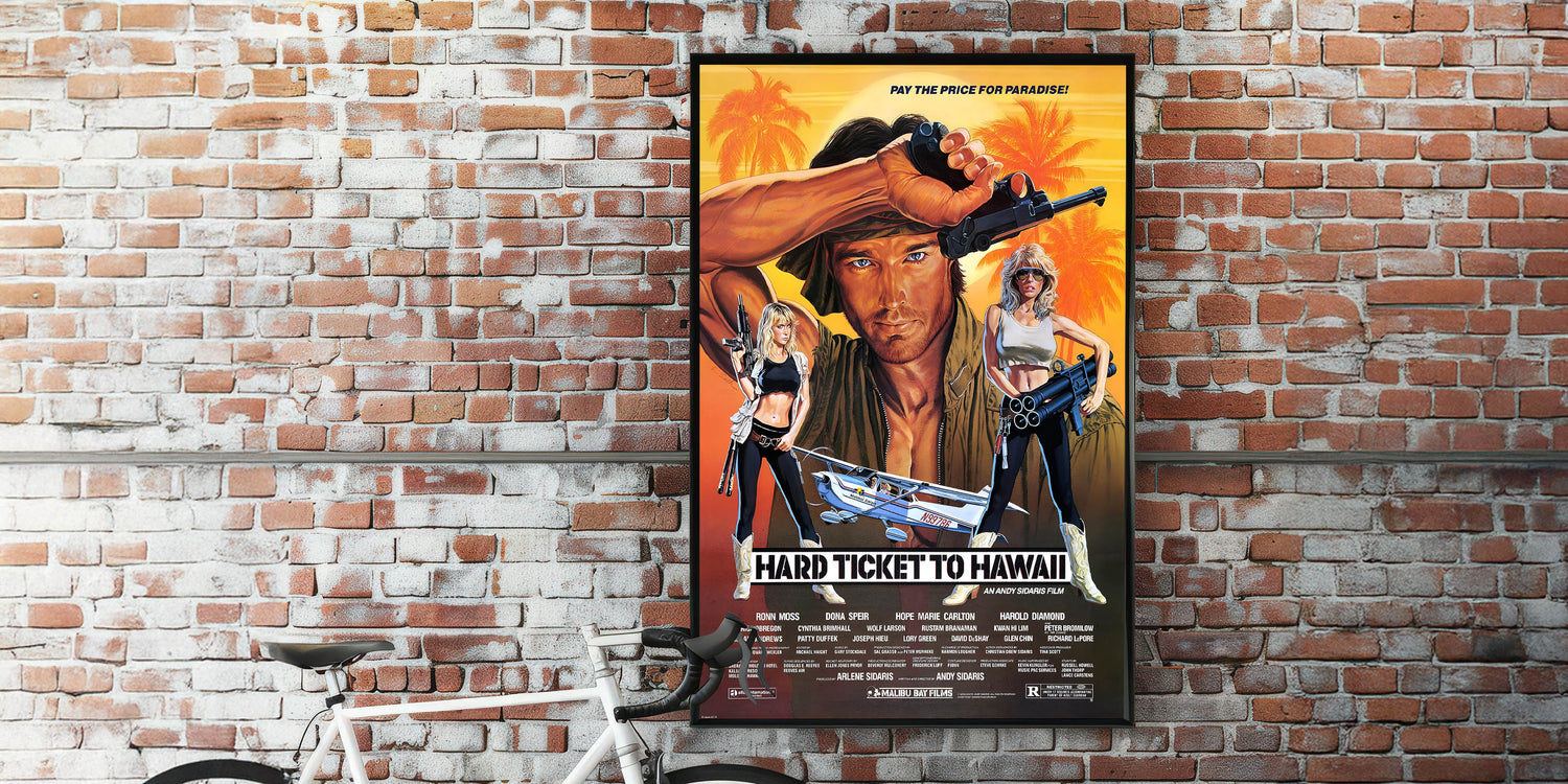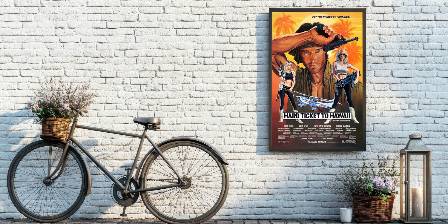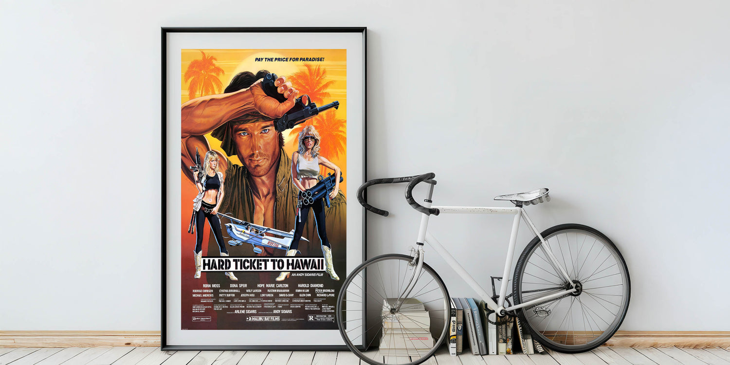 Whether you’re decorating a home theater, living room, or man cave, this Hard Ticket to Hawaii poster is sure to make a statement. Bring the spirit of adventure and action into your space today with this timeless retro print.