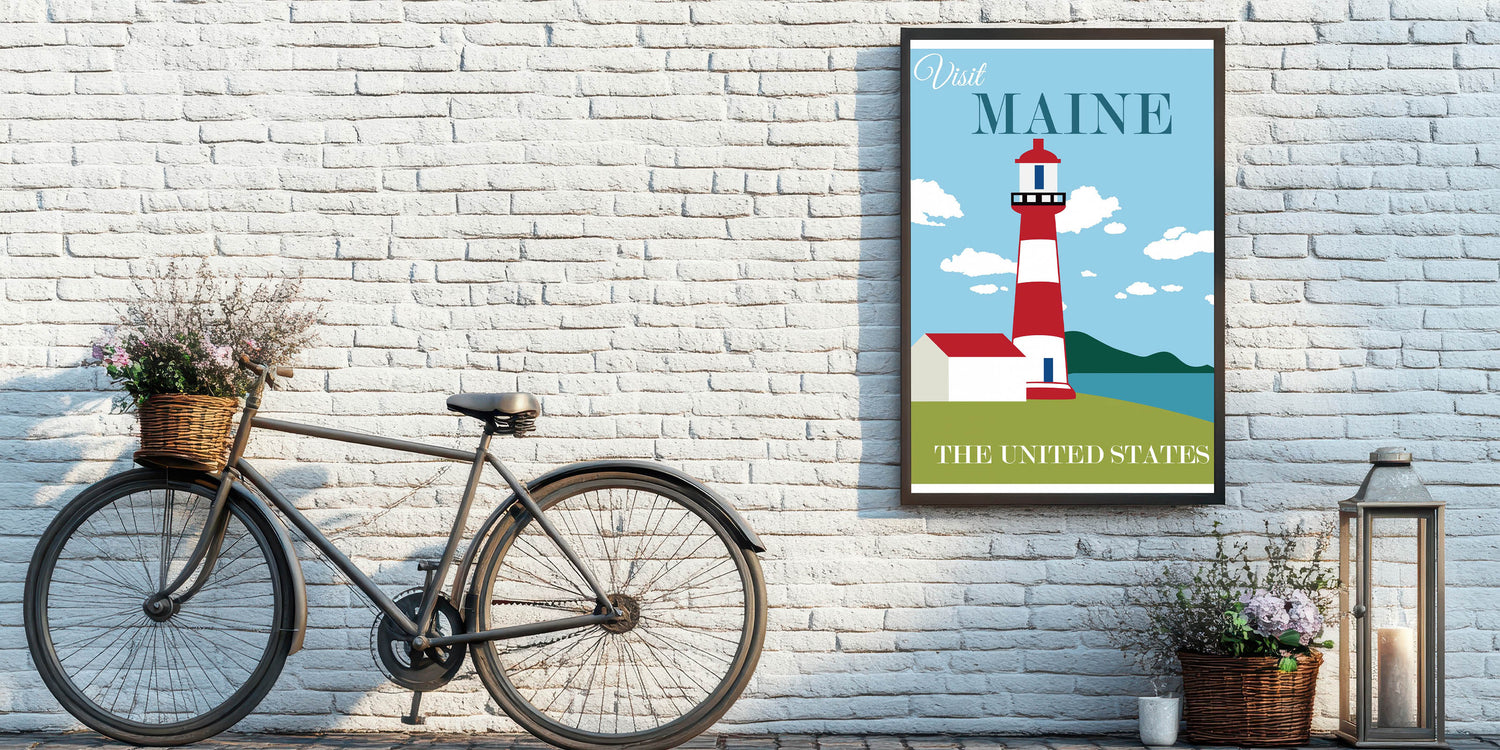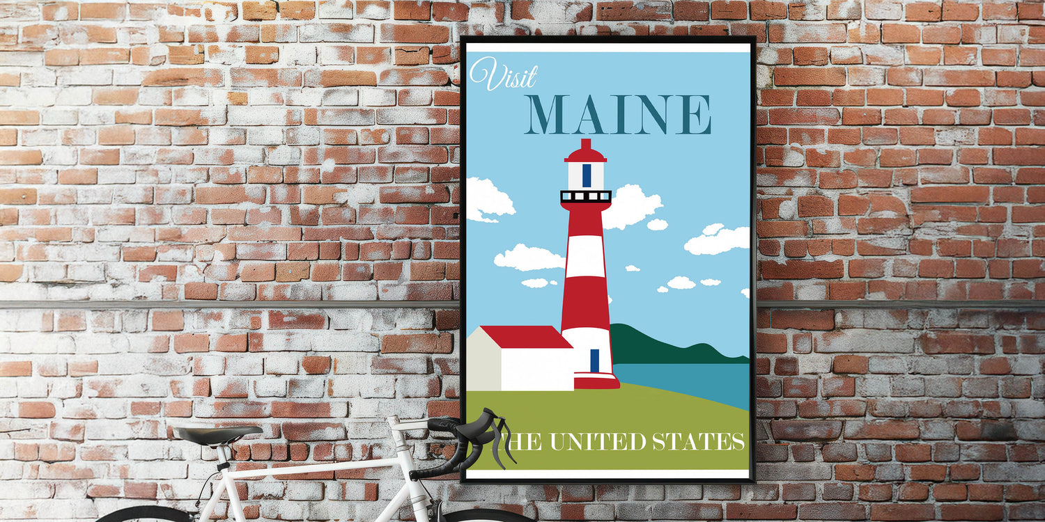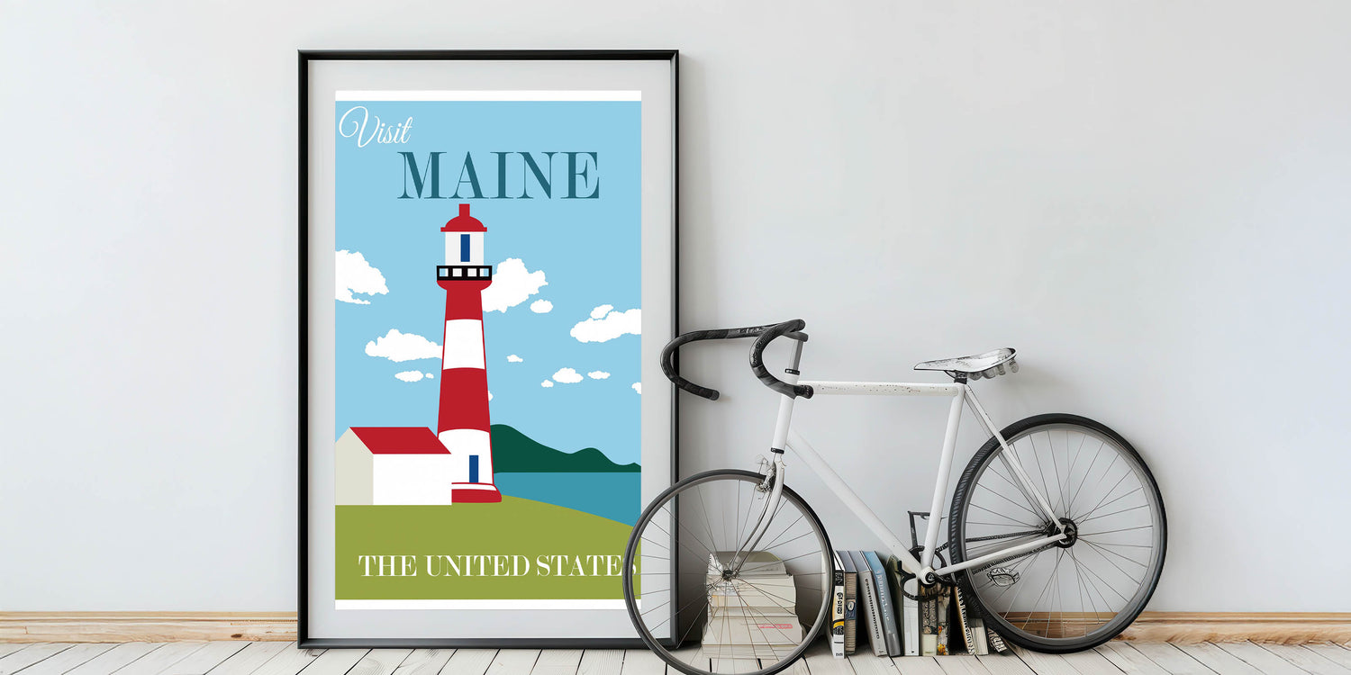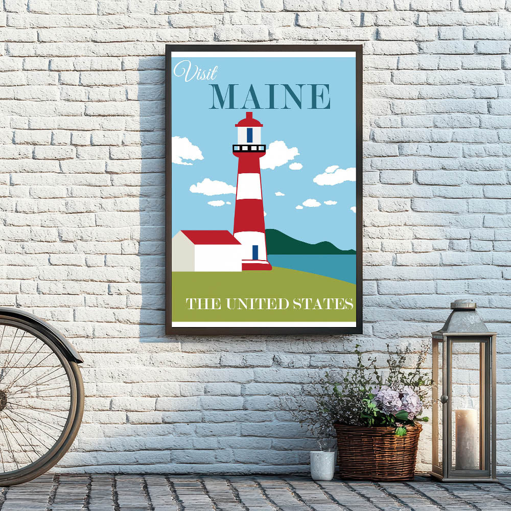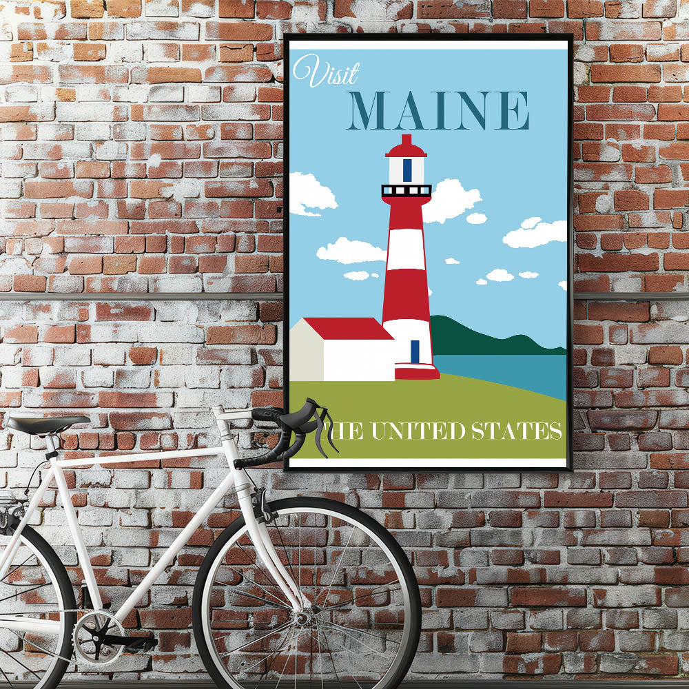 Retro Maine Lighthouse Poster – Vintage Prints & Nautical Wall Art