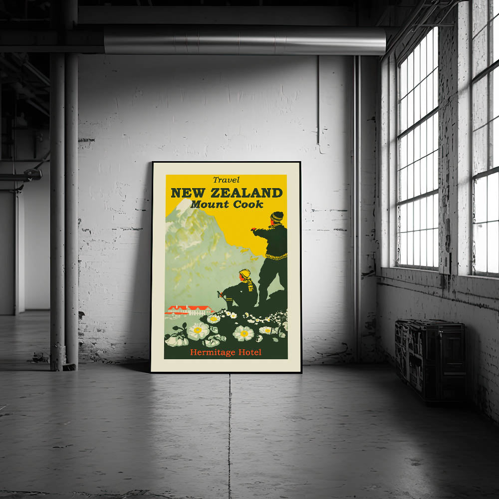 Retro New Zealand Mount Cook Poster – Vintage Alpine Travel Art