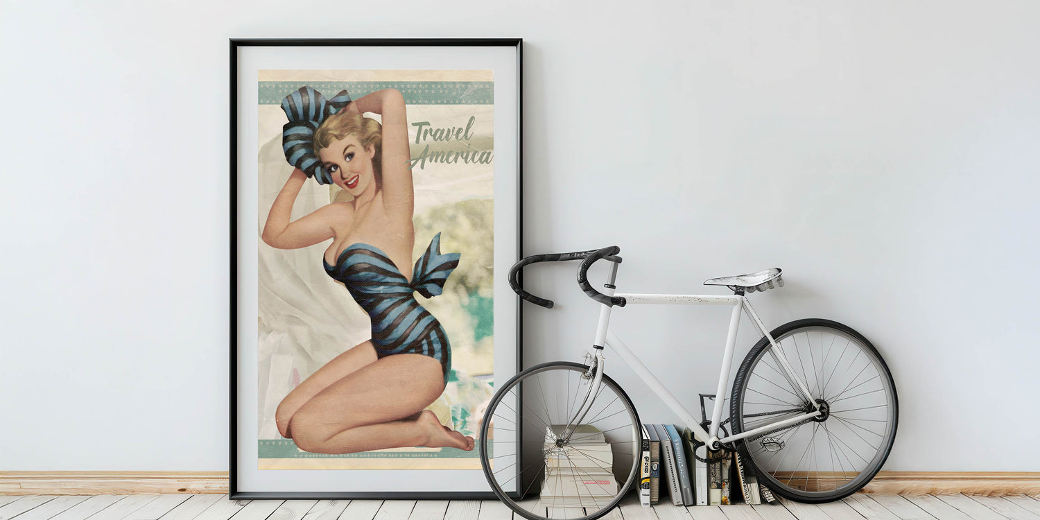 - High-quality print of a vintage pin-up girl with a nostalgic flair