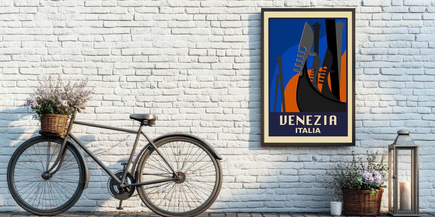 Bring the romantic charm of Venice into your home with this Retro Venice Travel Poster and experience the beauty of Italy’s canals every day.