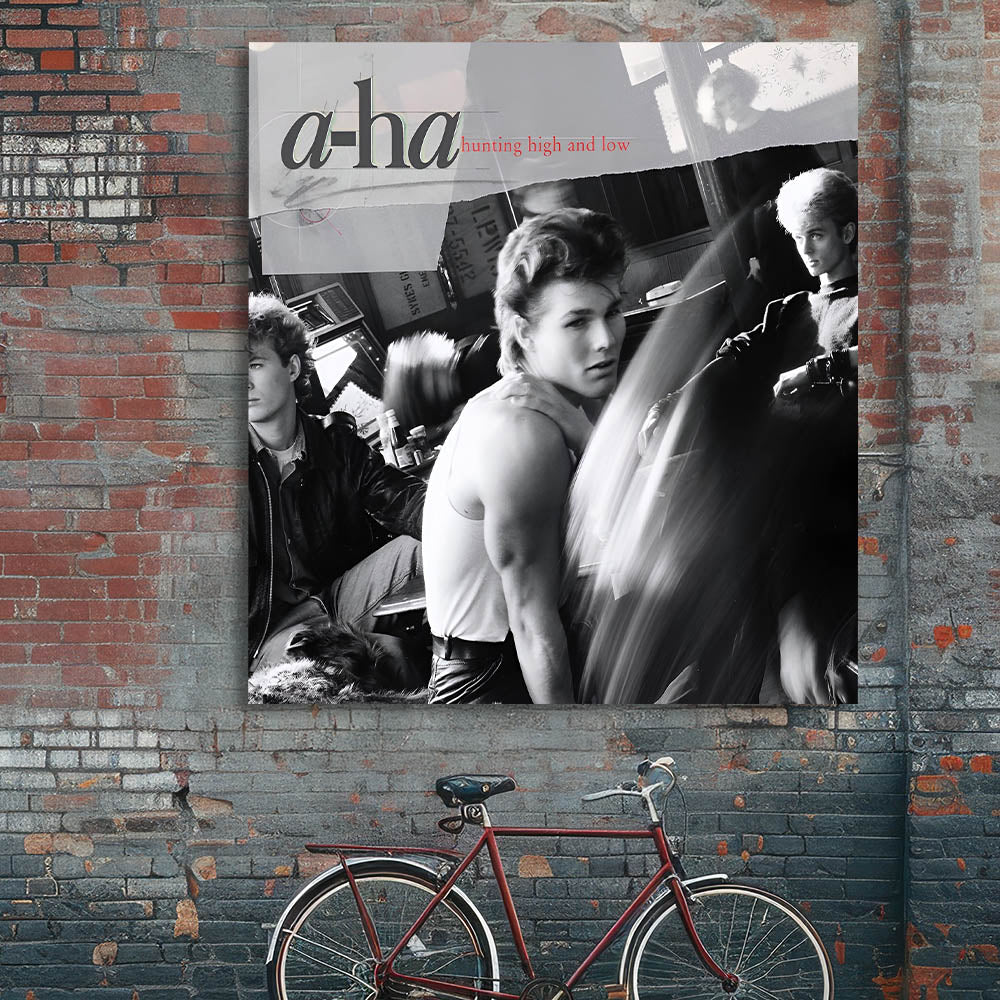 Capture the essence of the 80s with this Retro Wall Art featuring A-ha's iconic Hunting High and Low album cover. Perfect for fans of vintage decor and nostalgic art prints, this piece embodies the classic retro style with its black and white tones and moody atmosphere.