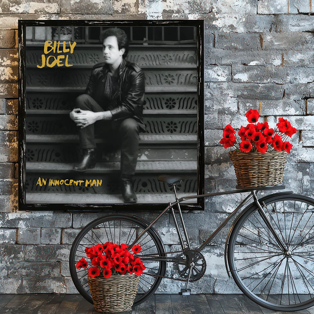 Add a touch of sophistication to your space with this Retro Wall Art featuring Billy Joel's iconic An Innocent Man album cover. Perfect for fans of vintage decor and nostalgic art prints, this piece captures the essence of classic retro style with its monochrome tones and elegant, reflective mood.