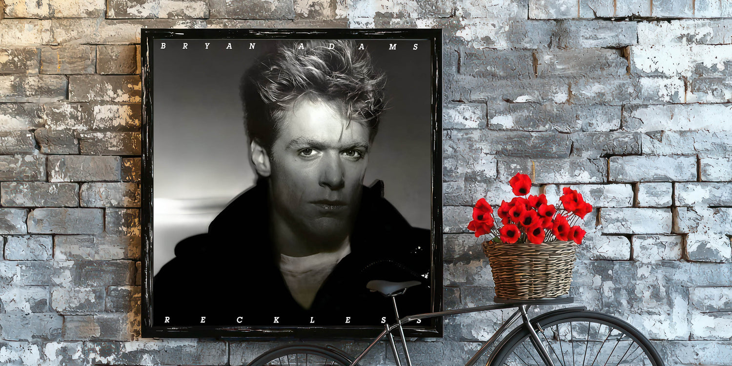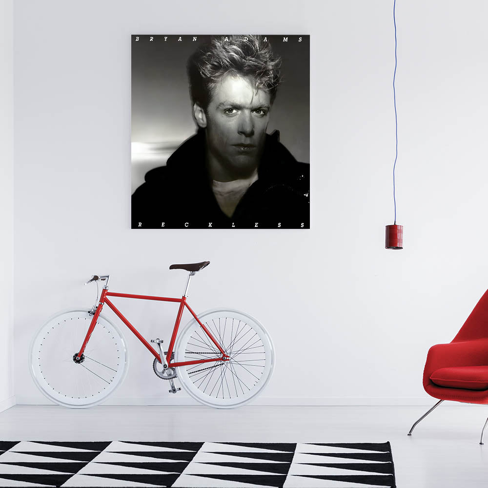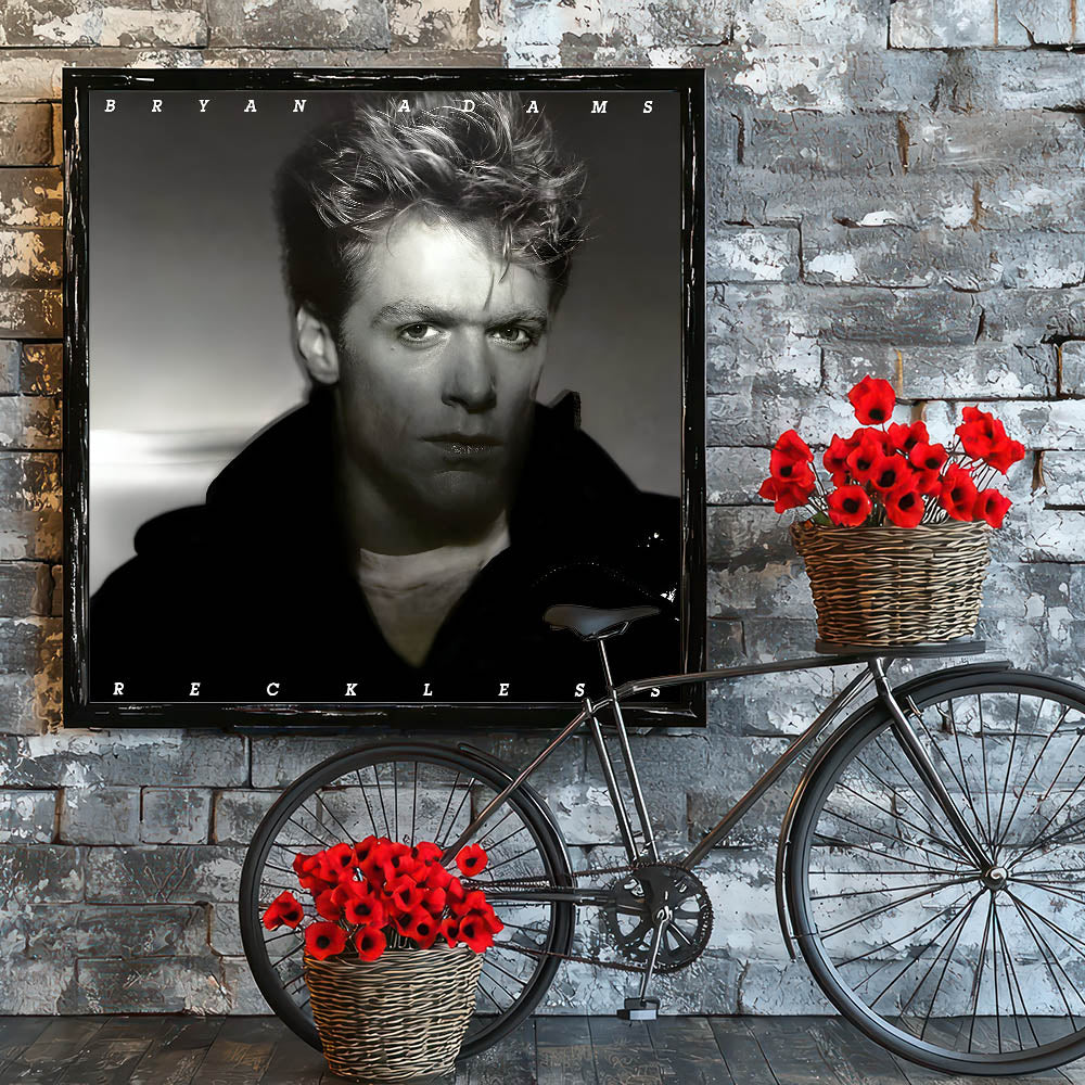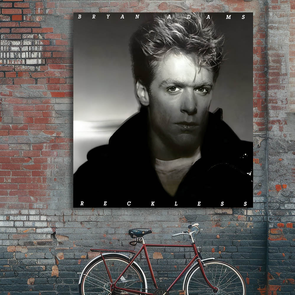 Embrace the raw energy of rock with this Retro Wall Art featuring Bryan Adams' iconic Reckless album cover. Designed for fans of vintage decor and nostalgic art prints, this piece captures the essence of classic retro style with its moody monochrome tones and powerful portrait.