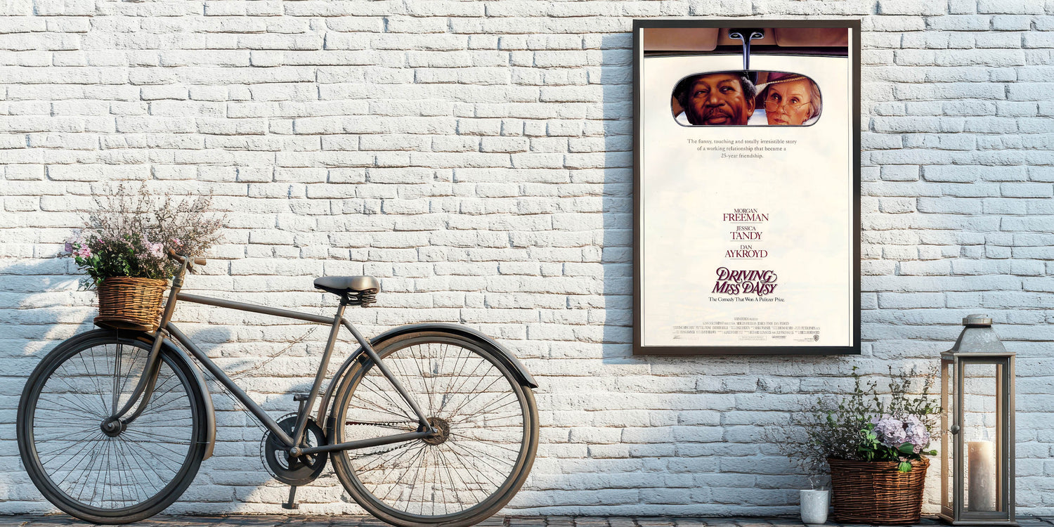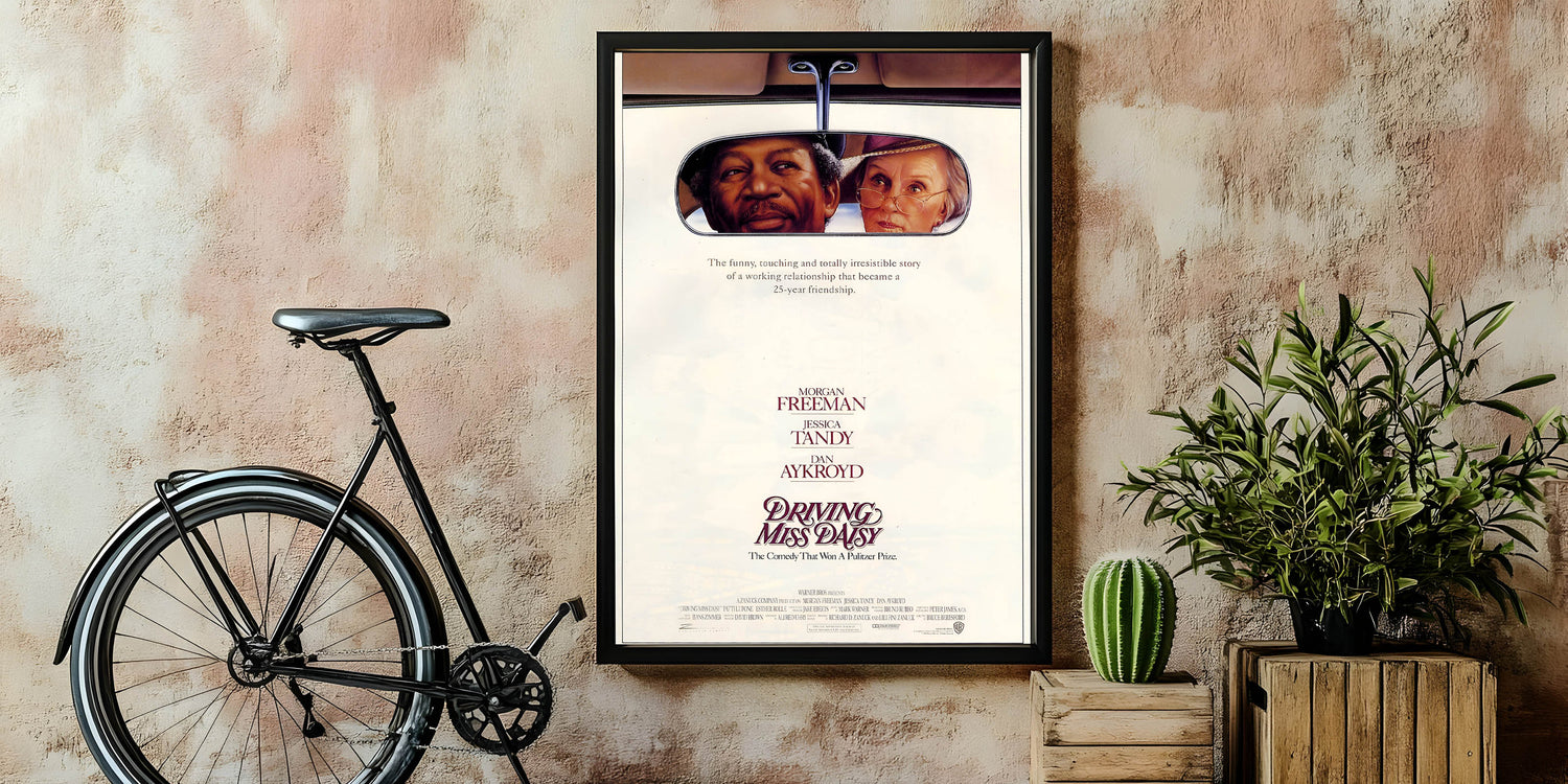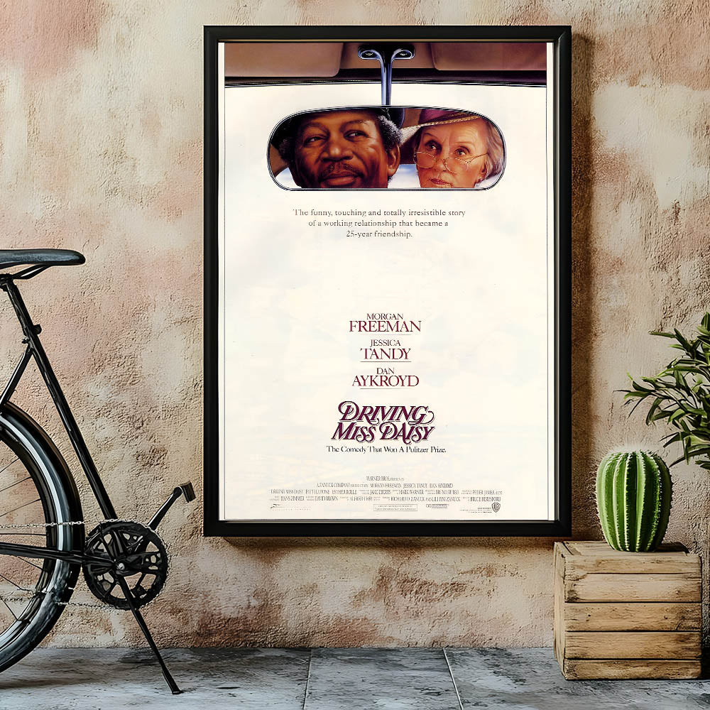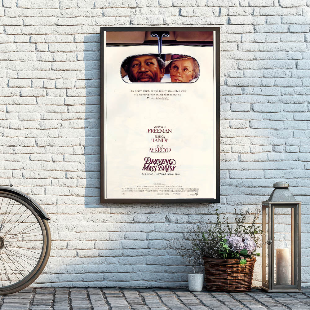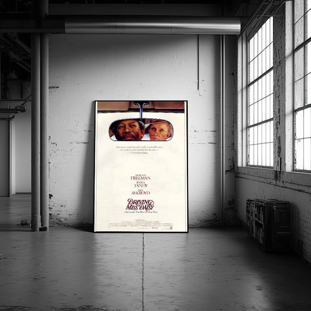 Celebrate the heartwarming story of Driving Miss Daisy with this retro movie poster. Featuring Morgan Freeman and Jessica Tandy, this print captures the essence of their unforgettable relationship in this Pulitzer Prize-winning film. The vintage design and classic imagery of the two characters in the car mirror are iconic, making it a perfect addition for fans of the movie and 80s cinematic history. Whether you're a fan of heartfelt dramas or vintage film posters, this print brings a timeless touch of elegance to your home decor.