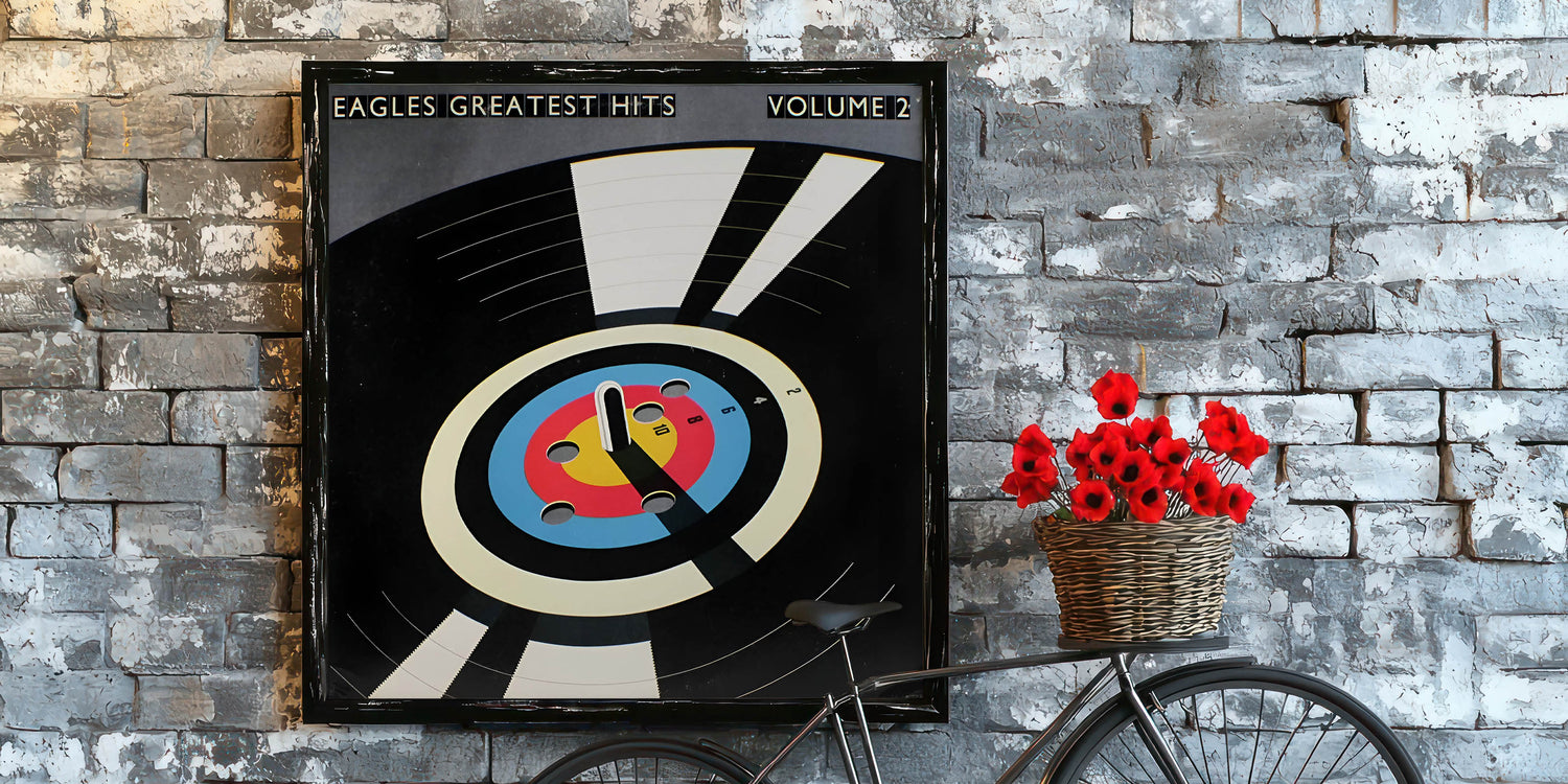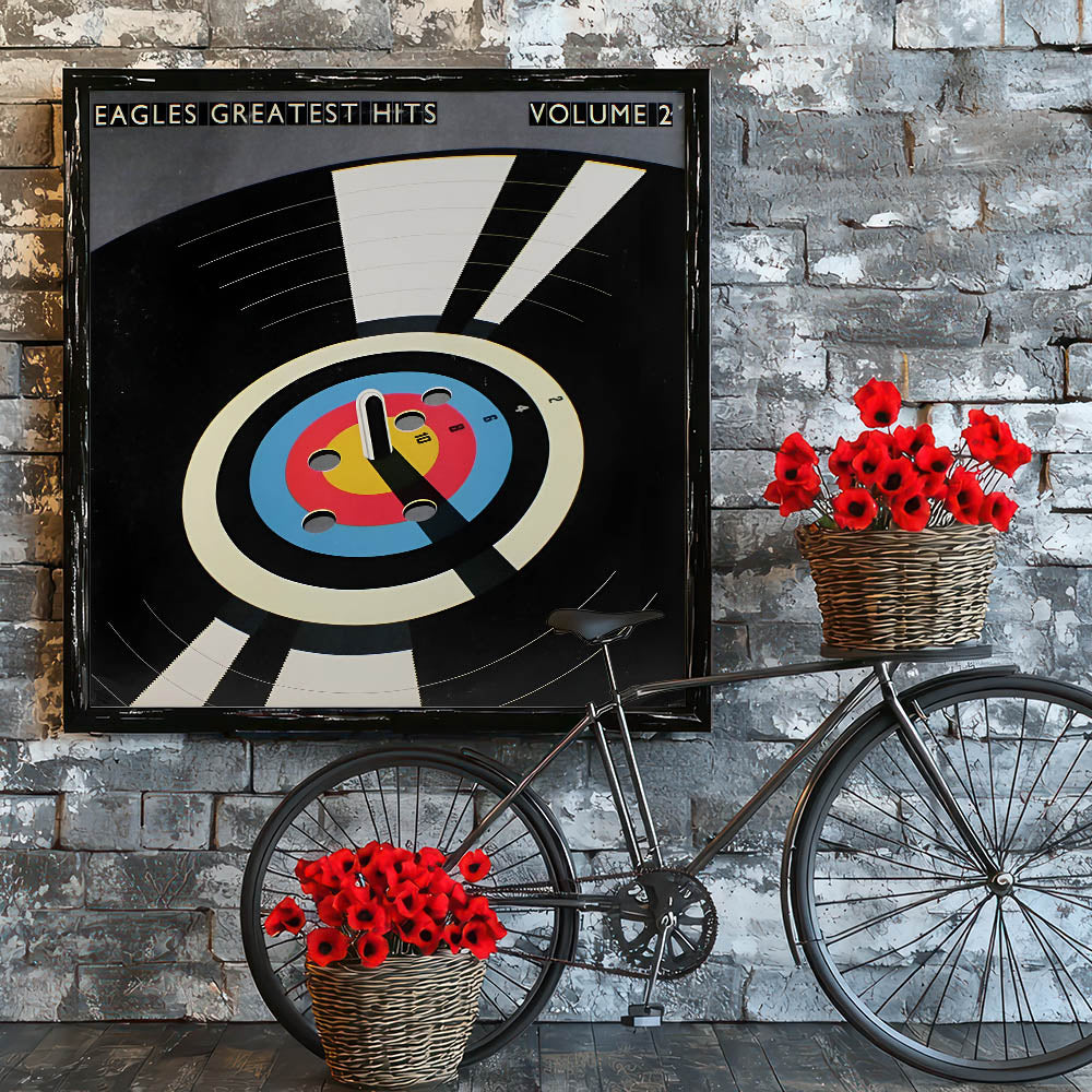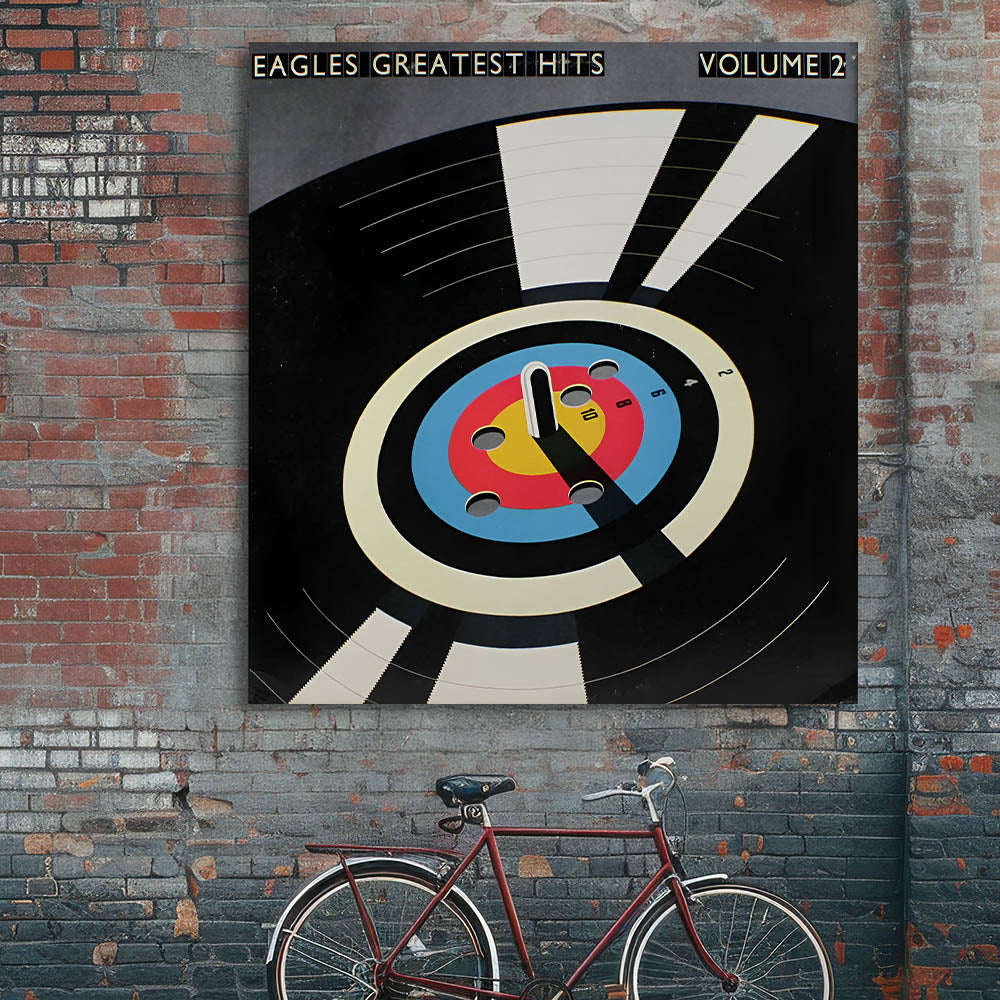 Capture the essence of classic rock with this Retro Wall Art featuring the Eagles' iconic Greatest Hits Volume 2 album cover. Designed for fans of vintage decor and nostalgic art prints, this piece showcases a bold mix of black, blue, red, and yellow tones, embodying a timeless retro aesthetic.