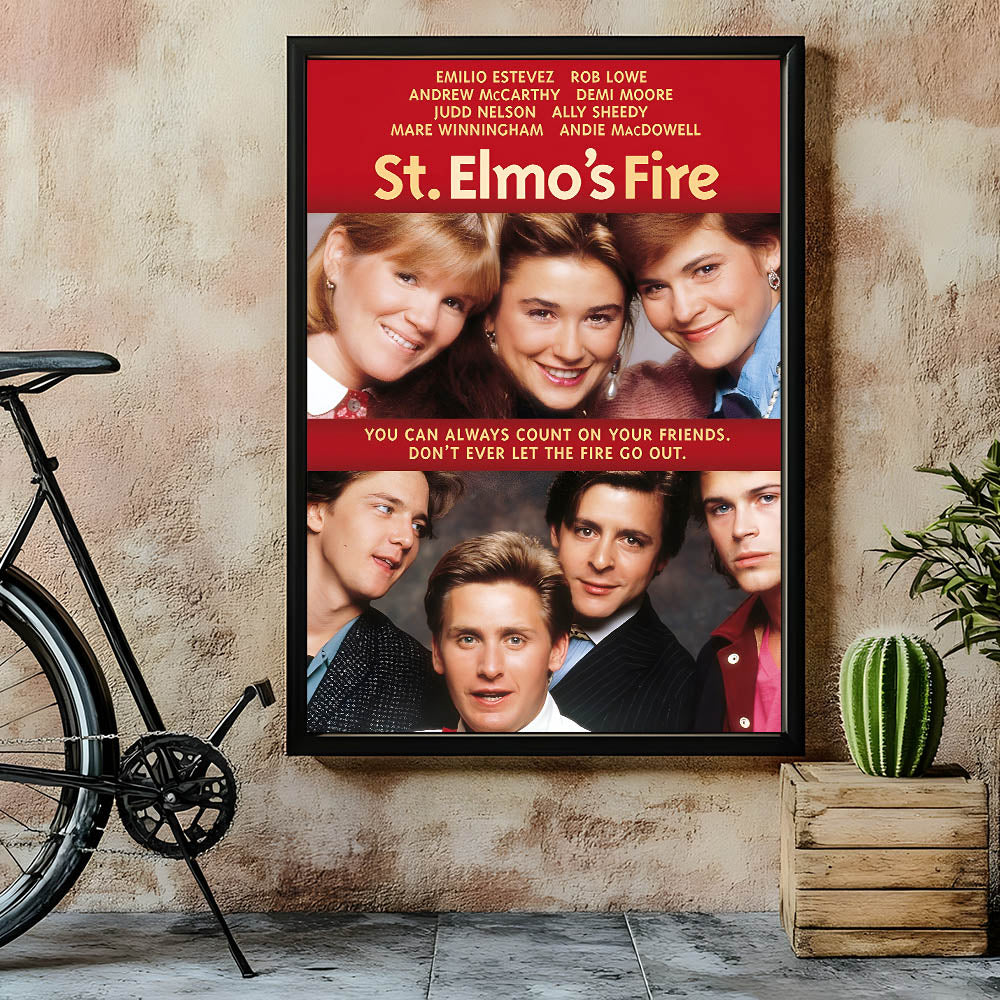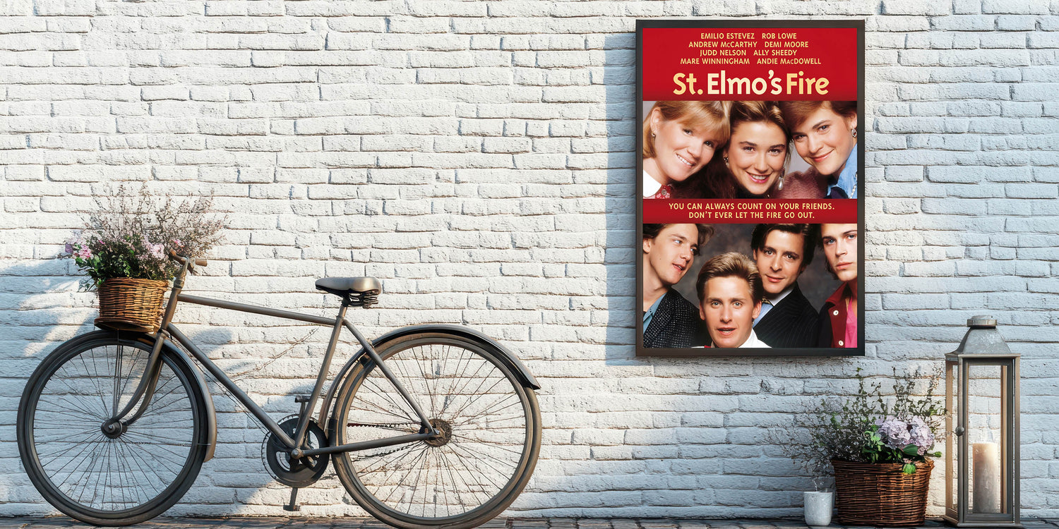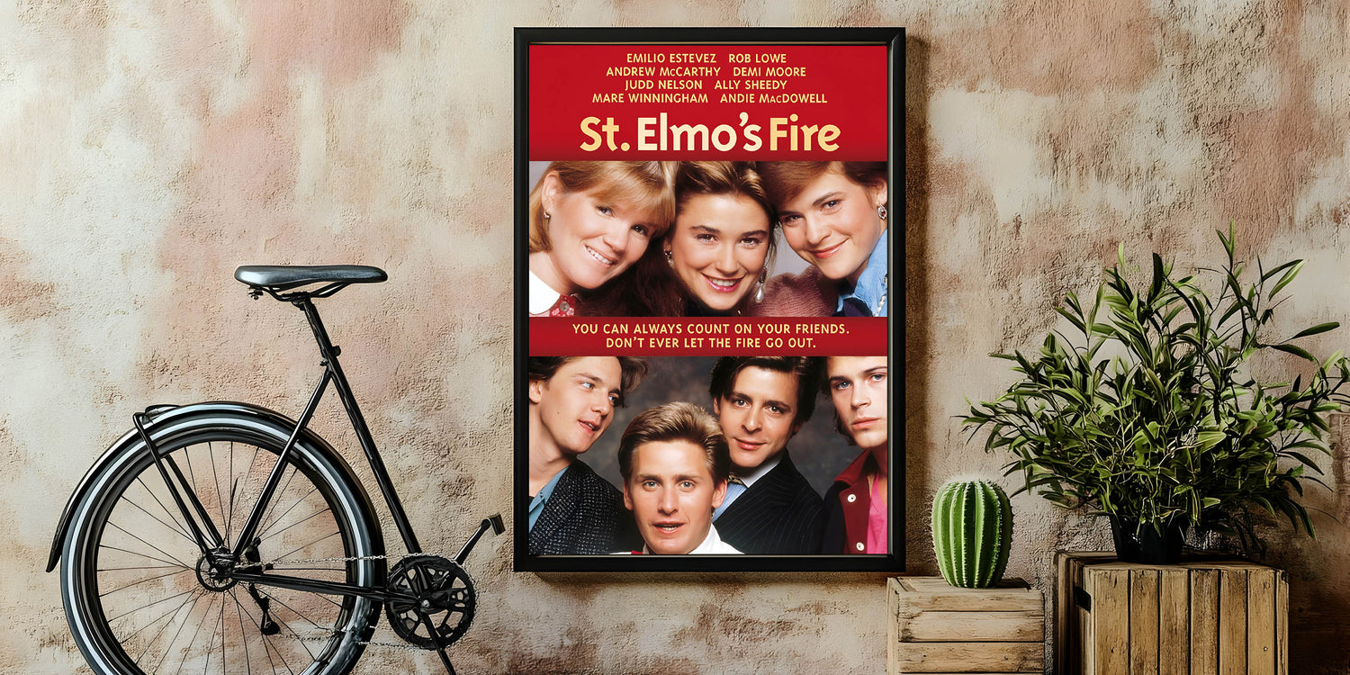 - Iconic movie design: The St. Elmo’s Fire poster brings the vibrant energy of the Brat Pack to life.