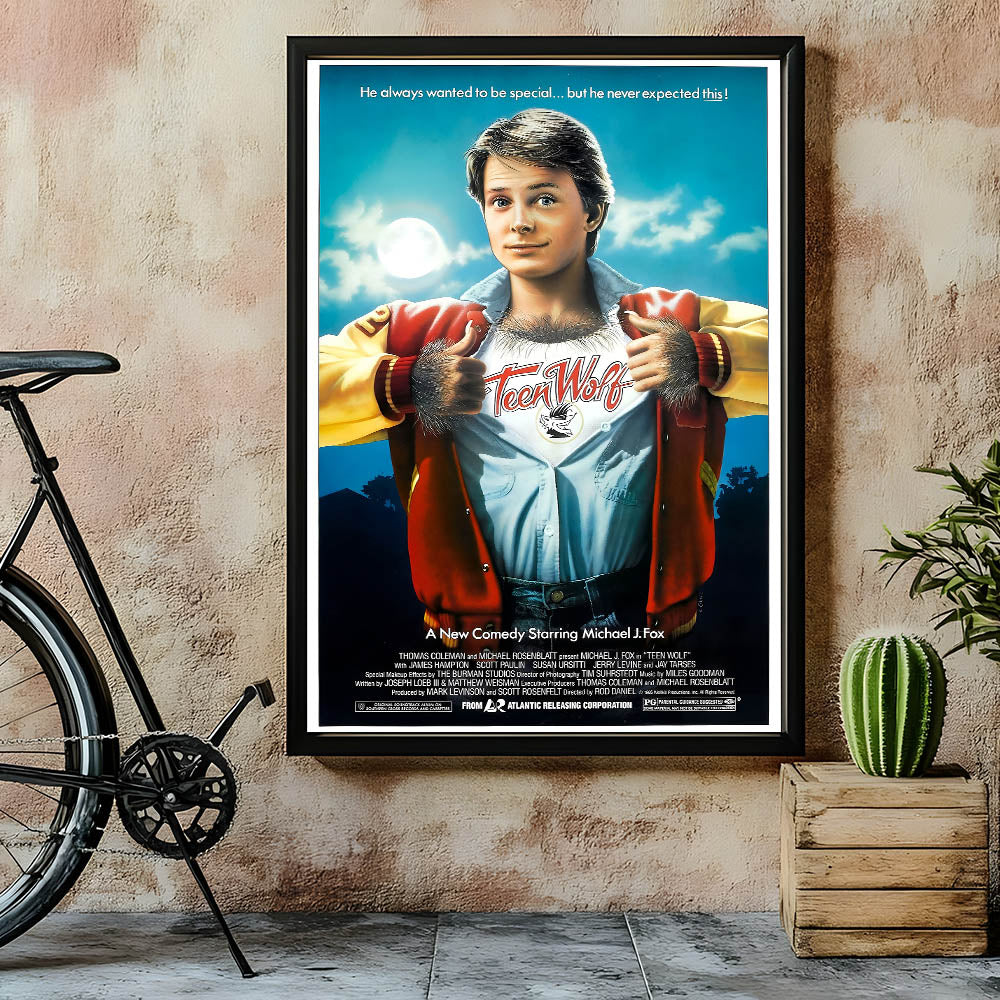 - Iconic movie design: The Teen Wolf poster showcases the quirky humor and transformation of the beloved character.
