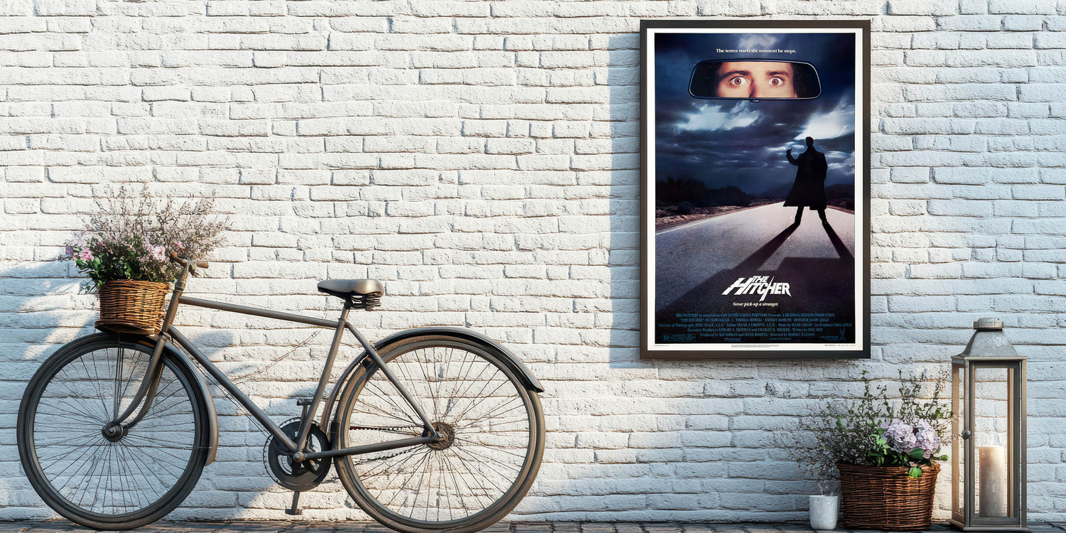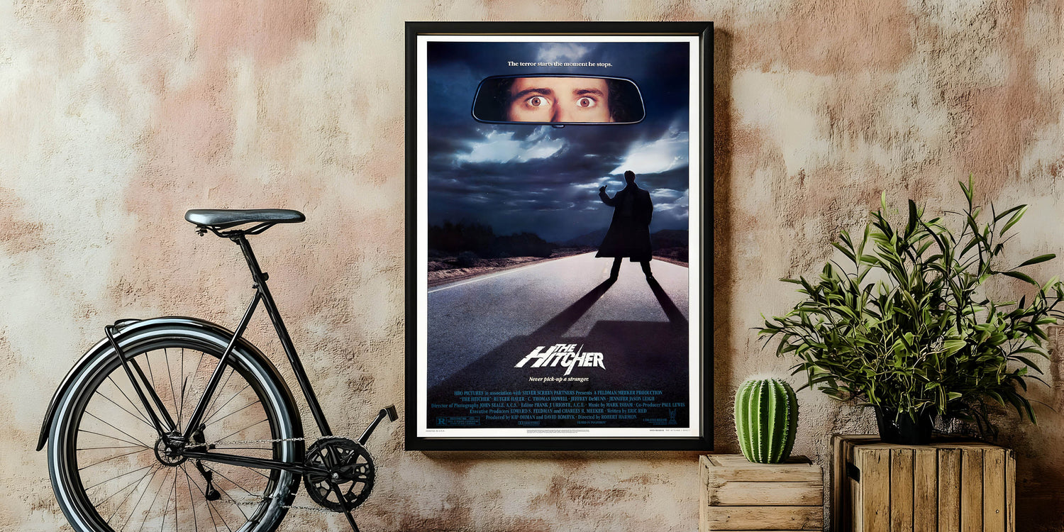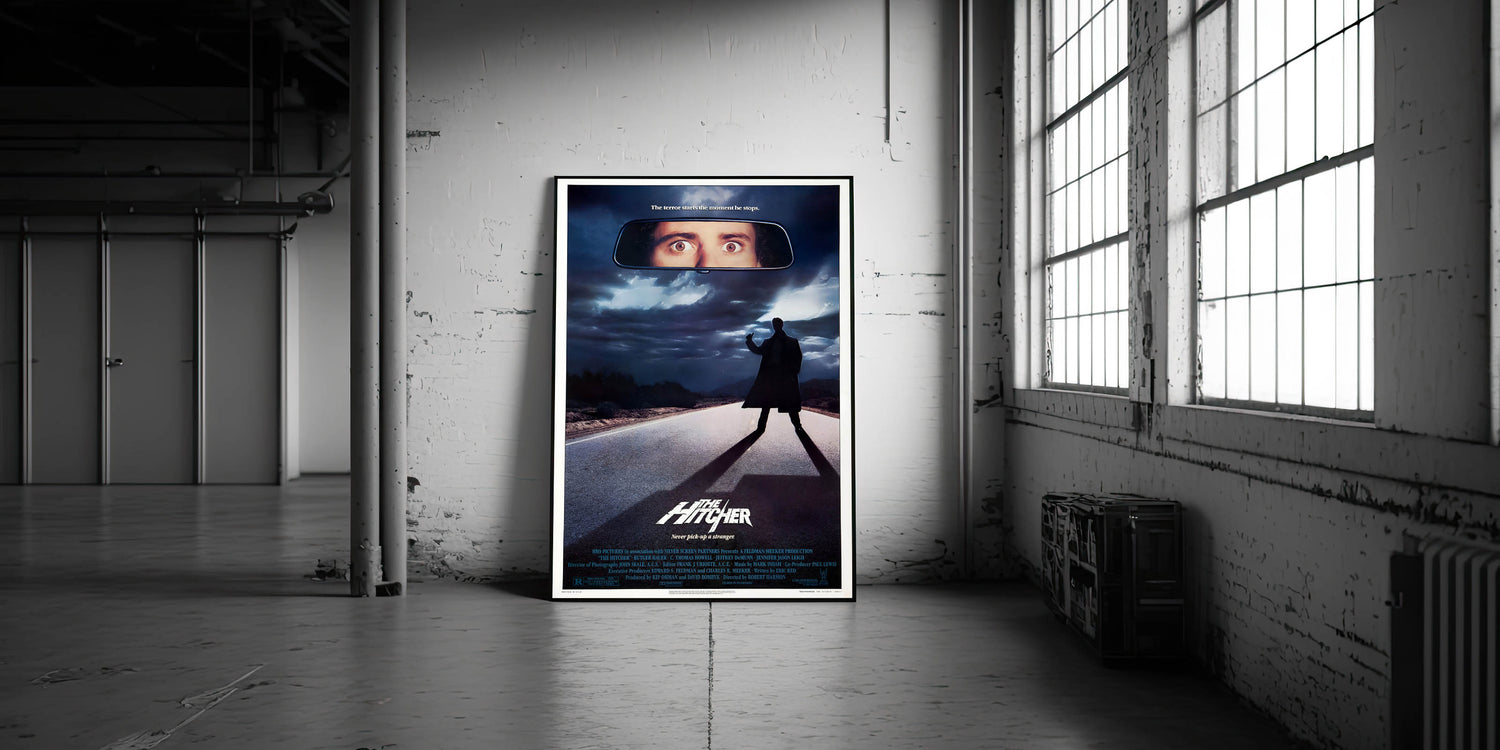 - Iconic horror design: The Hitcher poster showcases the menacing figure of the stranger in a dark, ominous setting, setting the tone for this tense road thriller.