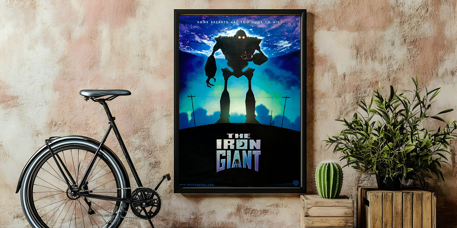 Whether you’re adding a touch of retro aesthetic to your living room or setting up a media room, this retro poster art is a must-have for fans of timeless retro designs. Relive the magic of The Iron Giant with this vintage print in your home!
