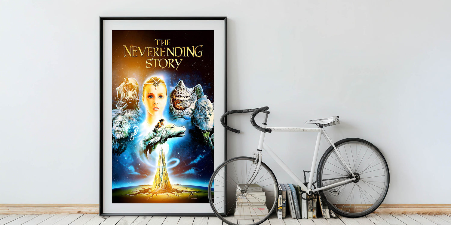 Whether you’re decorating your media room or adding a touch of 80s fantasy to your living room, this retro poster art is the perfect way to celebrate timeless retro designs and classic fantasy films. Relive the adventure of The Neverending Story with this vintage print in your home!