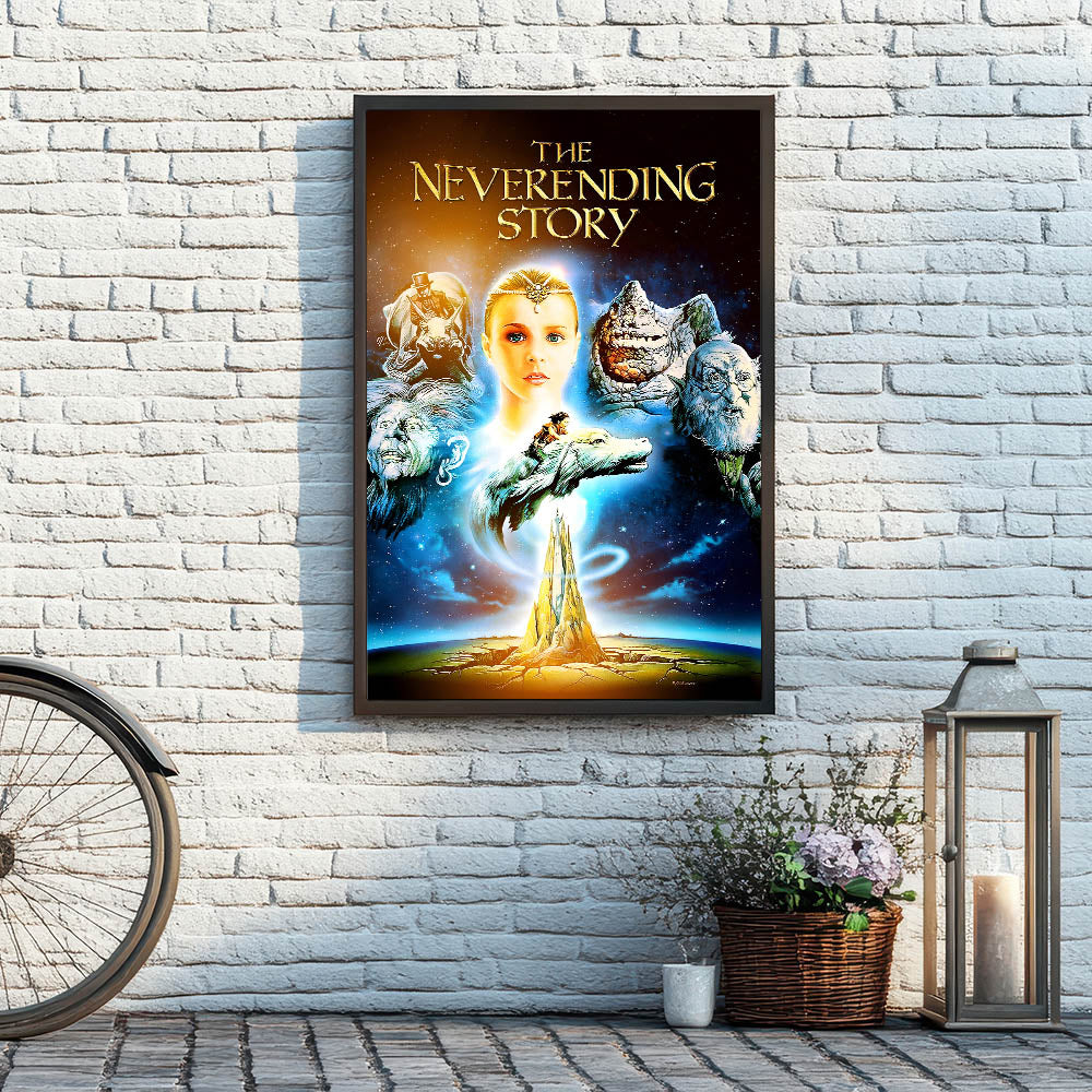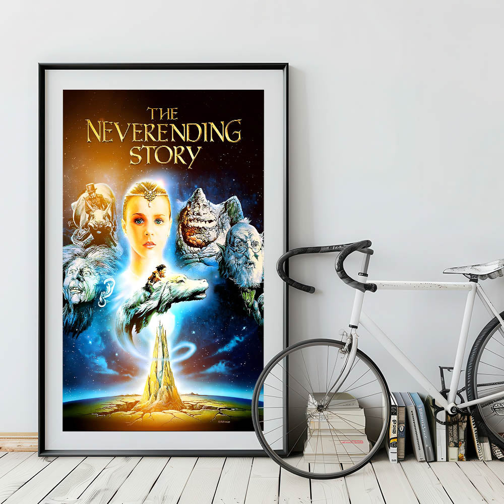Step into the magical world of The Neverending Story with this iconic retro movie poster. Featuring beloved characters like Atreyu, Falkor the Luck Dragon, and the Childlike Empress, this vintage print captures the whimsical and fantastical journey of the 1984 cult classic. Perfect for fans of nostalgic art prints and retro aesthetic, this piece adds a sense of wonder and adventure to any room.