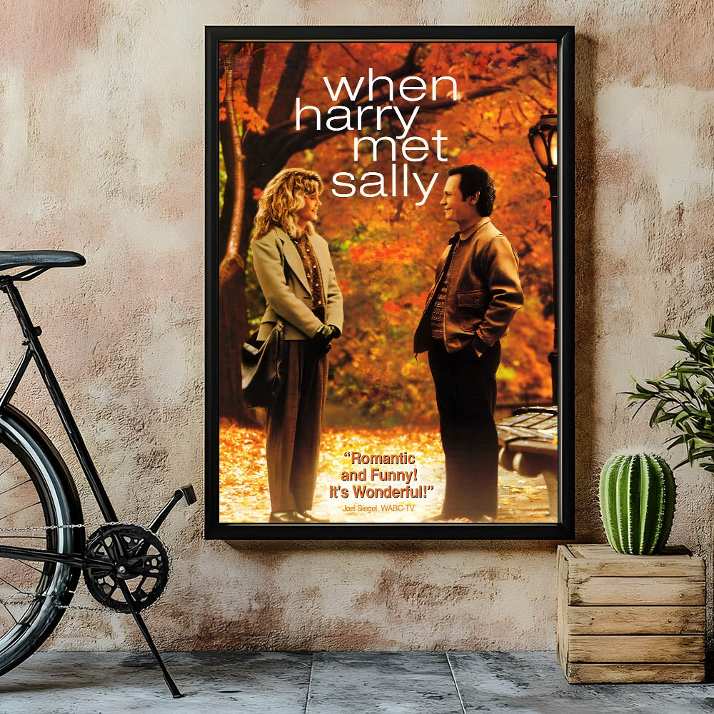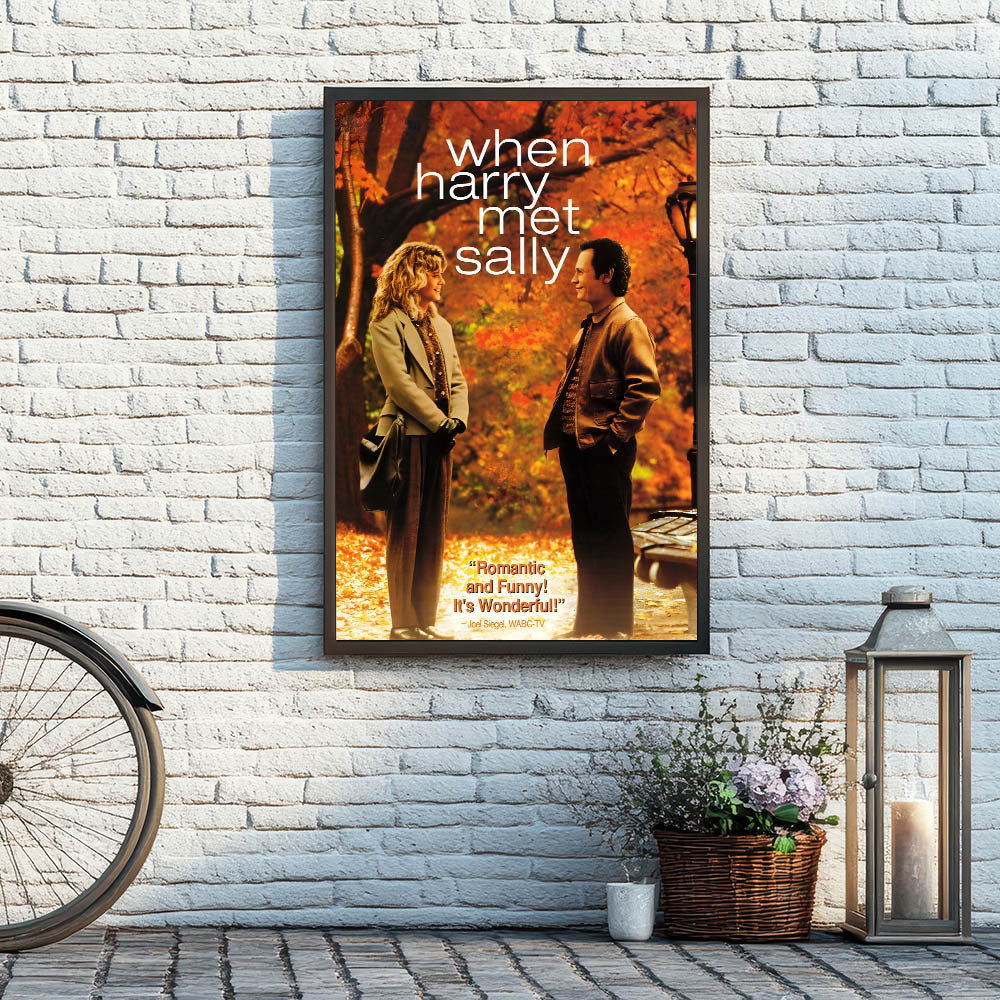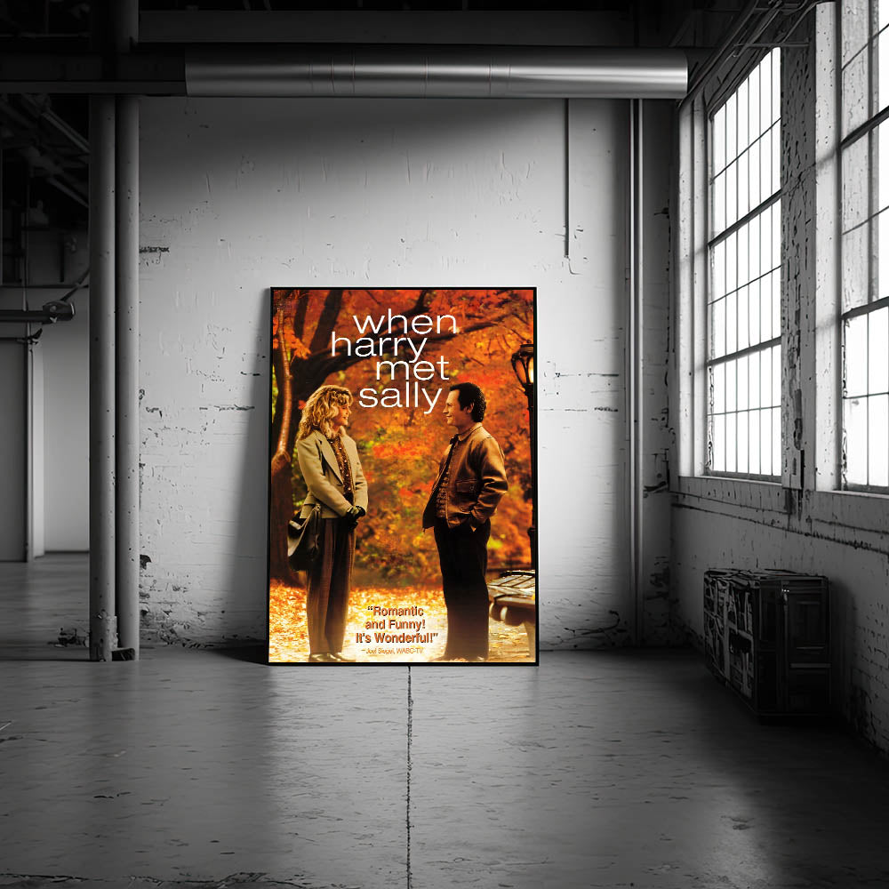Relive the magic of When Harry Met Sally, the 1989 romantic comedy that has become a classic, with this stunning movie poster. Featuring Billy Crystal and Meg Ryan, the film explores the question: can men and women ever just be friends? With vibrant autumn leaves as the backdrop, this poster captures a moment of witty romance between two beloved characters. Perfect for fans of romantic comedies, 80s nostalgia, or iconic movie art.