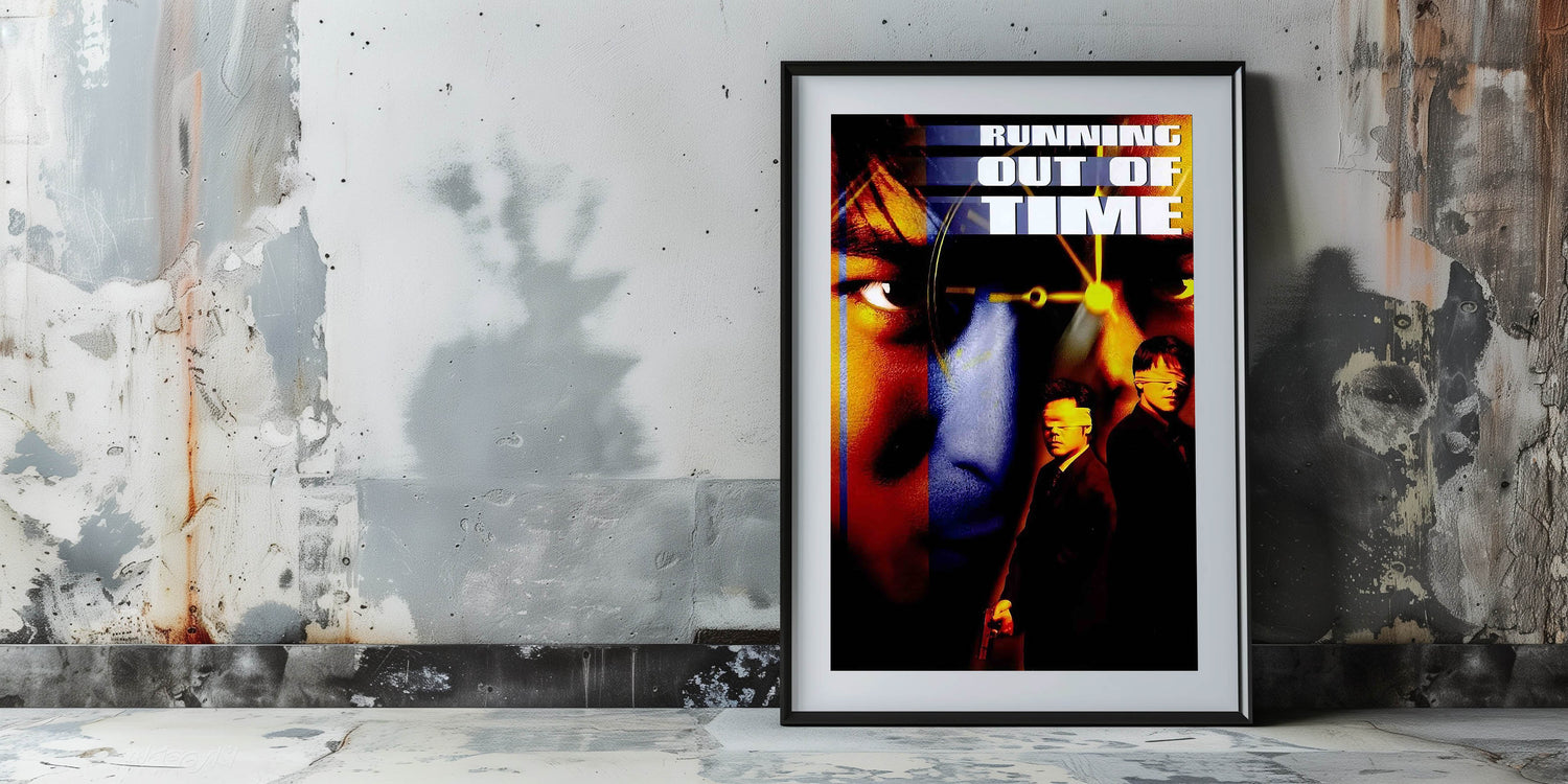 Immerse yourself in the high-stakes world of Hong Kong cinema with this Running Out of Time 1990s Vintage Movie Poster. Featuring a dramatic collage of intense close-ups, blindfolded figures, and a ticking clock, this classic 90s film art captures the suspense and stylish cinematography of the action-packed thriller. A must-have for fans of nostalgic 90s cinema art, this retro 1990s movie print is the perfect statement piece for any film enthusiast.