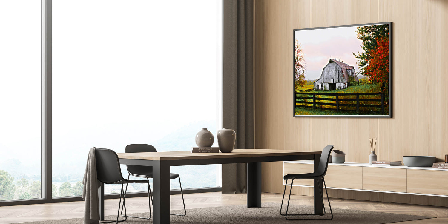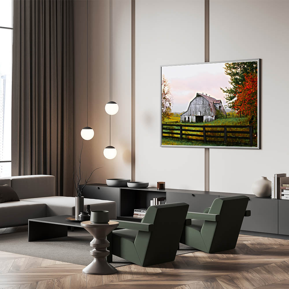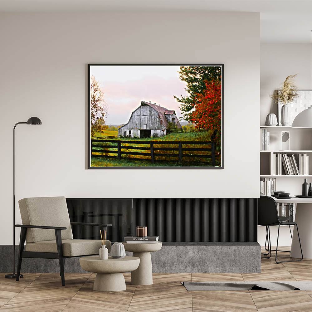Bring the timeless beauty of the countryside into your home with this striking rustic wall art featuring a weathered gray barn nestled amidst vibrant autumn foliage. This vintage-inspired wall art captures the charm of rural life, with the barn standing proudly against a backdrop of rich, seasonal colors. The natural tones and textures make this piece perfect for adding warmth and character to any room.