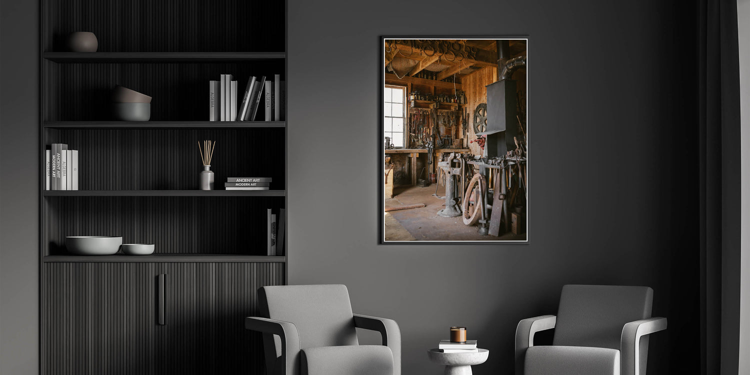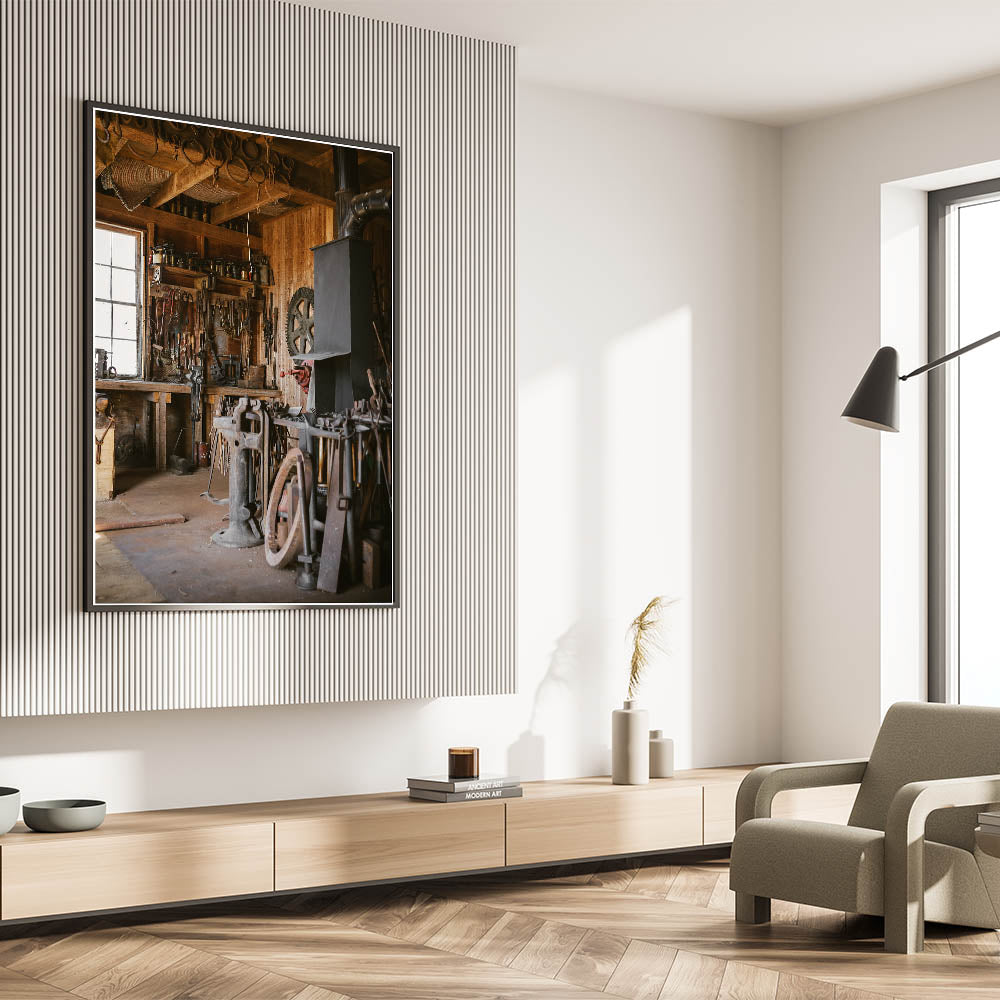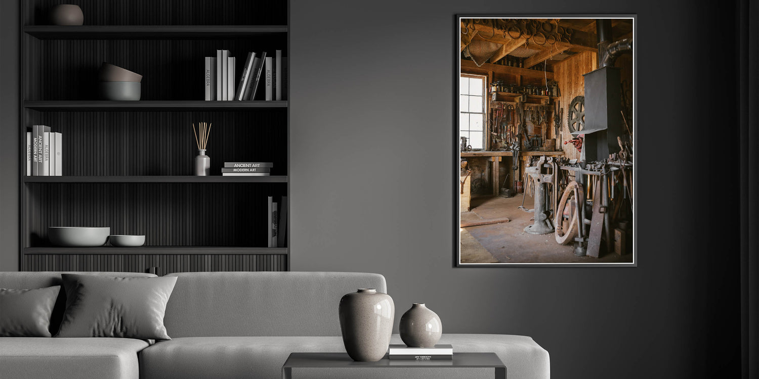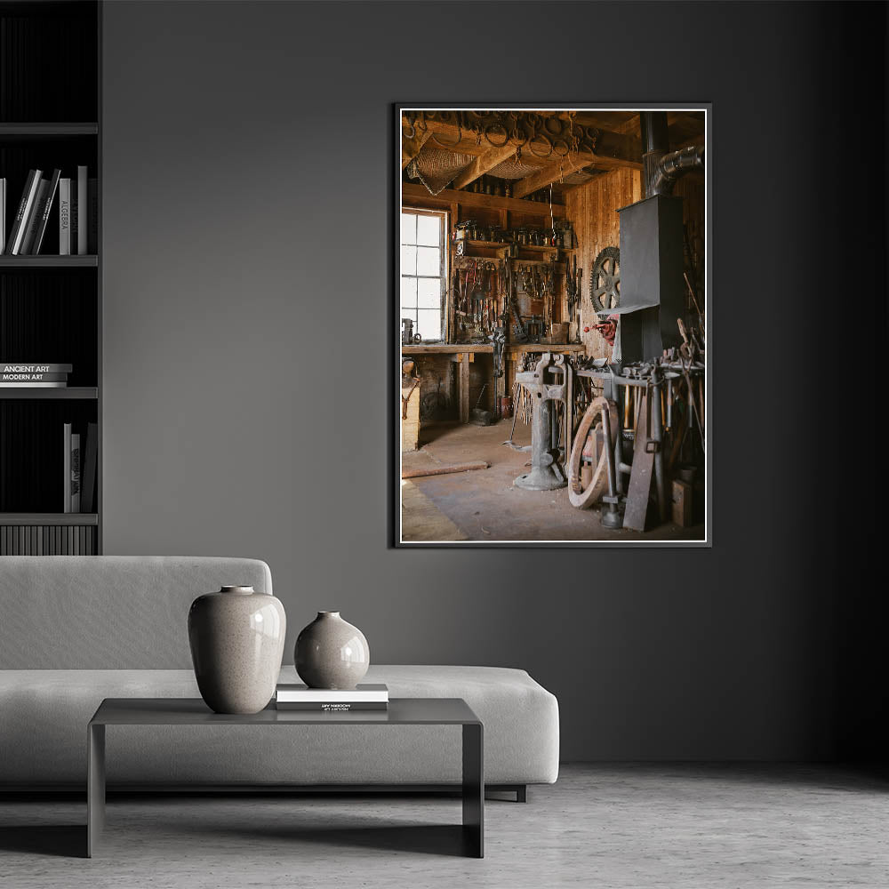 Embrace the essence of craftsmanship with our Rustic Workshop Tools Wall Art, showcasing a beautifully detailed collection of vintage tools in a traditional workshop setting. This piece is a tribute to the timeless appeal of hand tools and wooden benches, making it an ideal choice for enhancing any rustic or farmhouse-themed décor.This artwork captures the spirit of a bygone era where craftsmanship was the heart of the workshop. Its intricate detail and rich textures provide a deep connection to the past, perfect for anyone interested in vintage-inspired wall art or rustic home décor ideas.