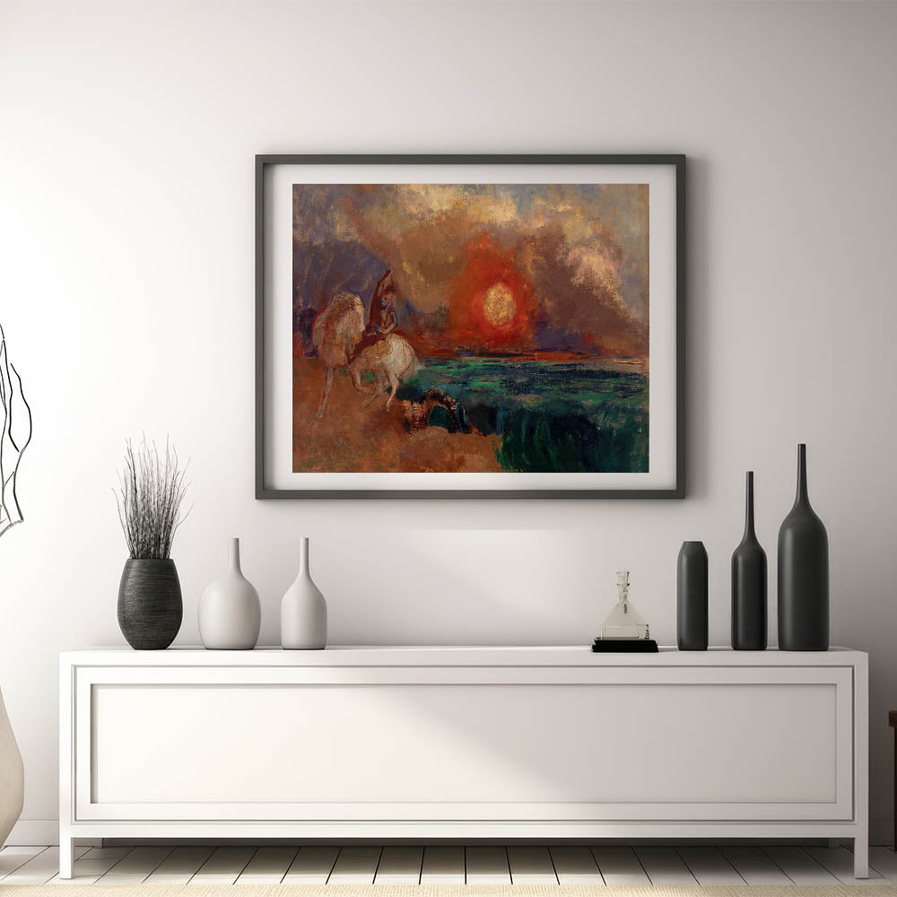 Immerse yourself in the mystical world of Saint George and the Dragon with this captivating wall art. This piece, rich in bold reds, earthy browns, and deep greens, brings a sense of drama and fantasy to any space. Ideal for those who appreciate unique modern art with a touch of mythology, this artwork is perfect for making a bold statement.