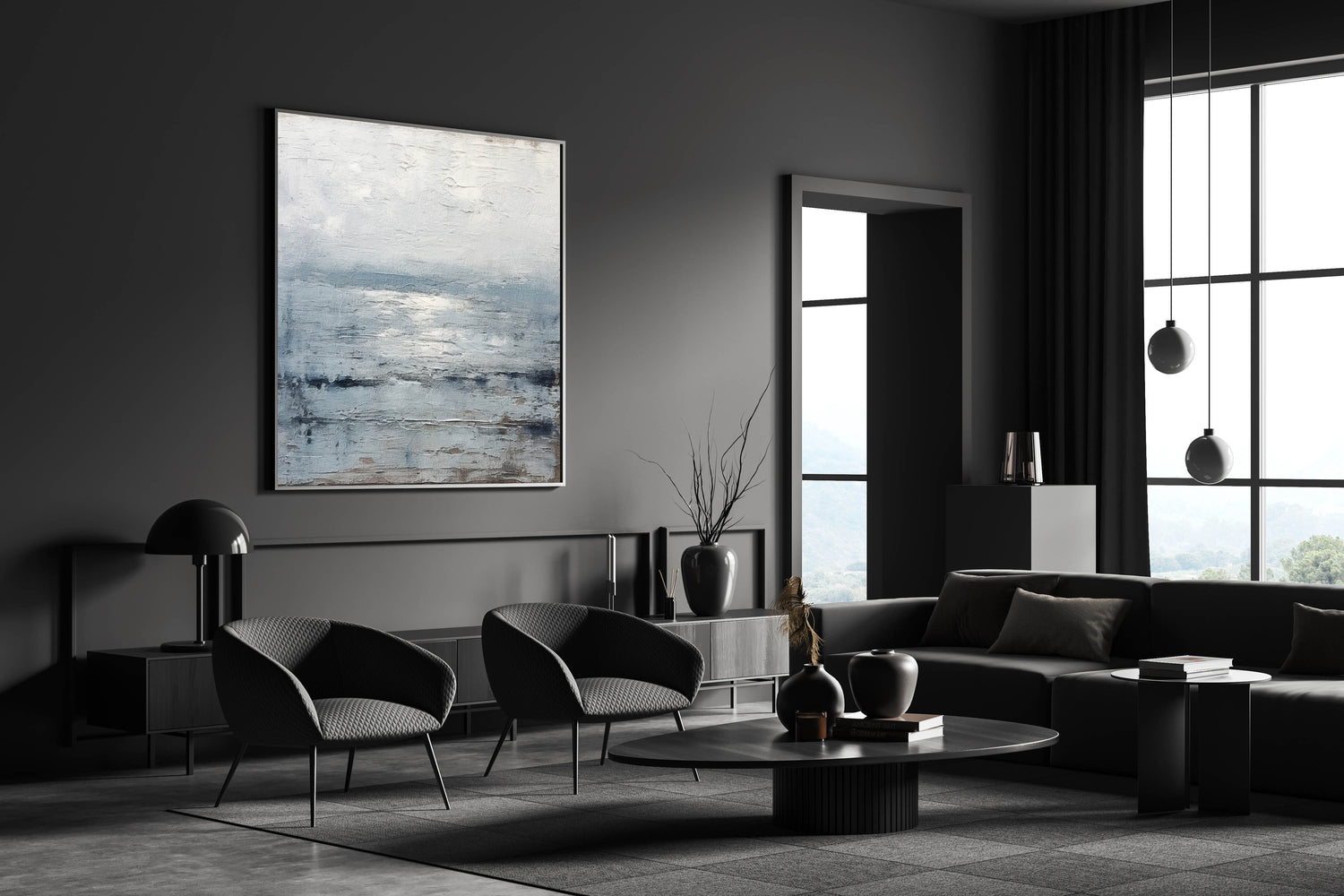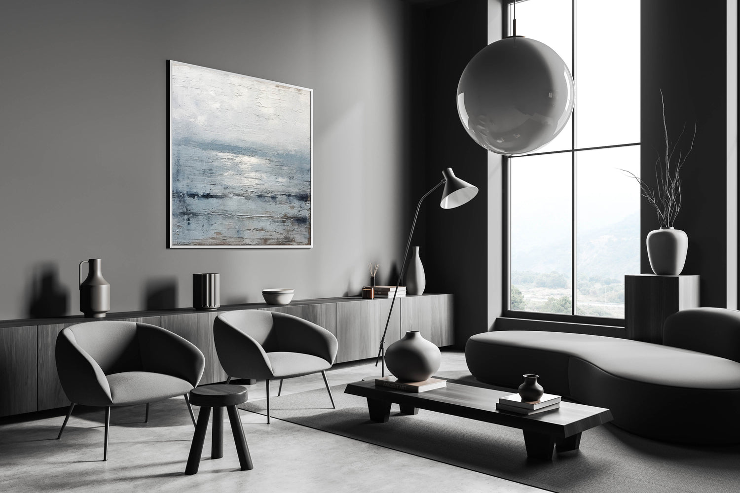 Capture the calmness of the ocean with this serene abstract strokes wall art, featuring soothing shades of gray and blue. The textured finish and soft blending of colors evoke a misty seascape, adding a peaceful and timeless feel to any space. Perfect for minimalist and coastal decor, this artwork brings a tranquil atmosphere to your home or office.