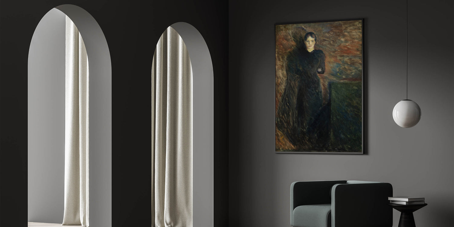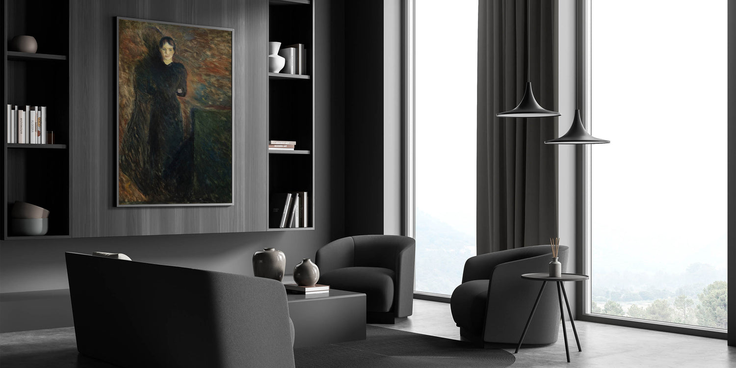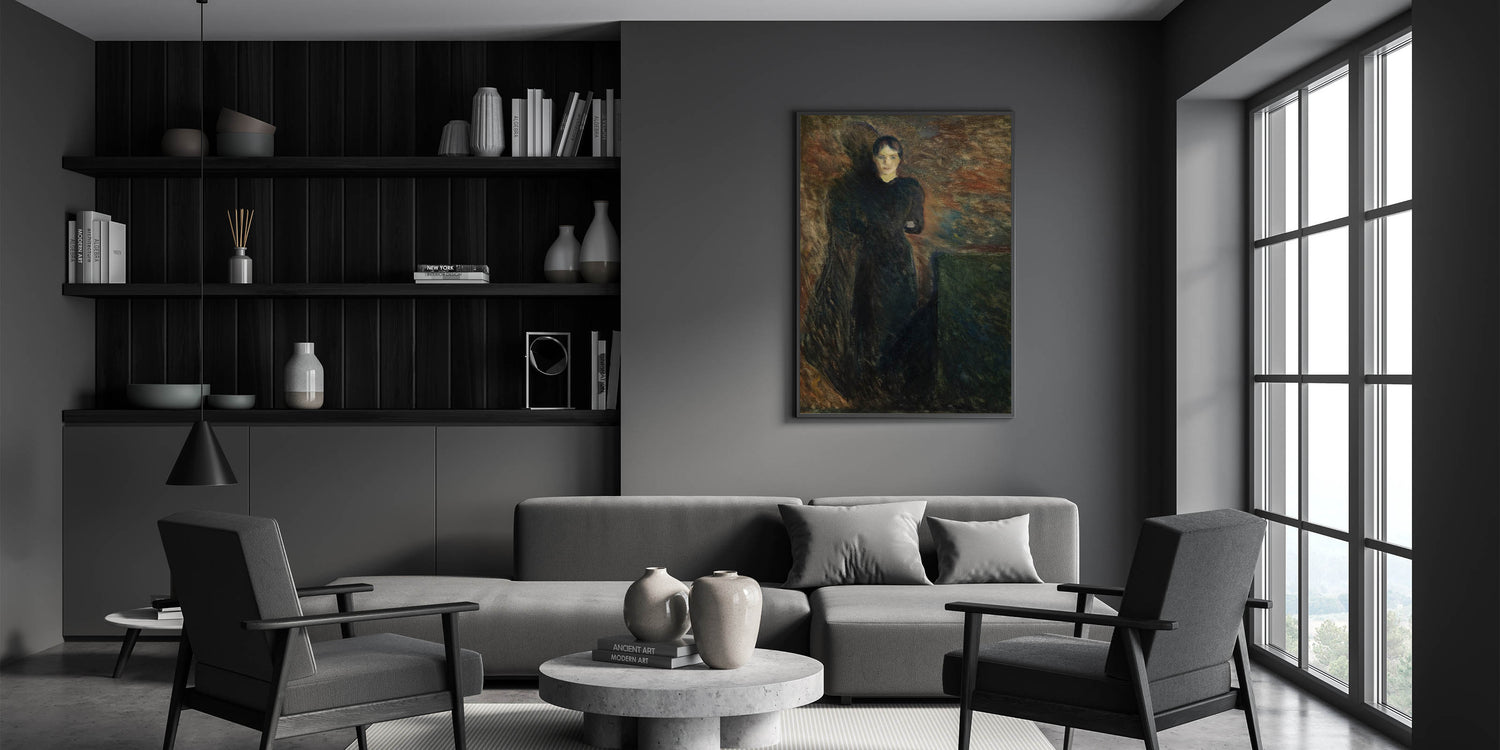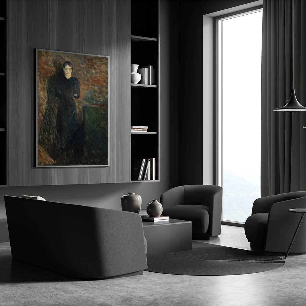 - Evocative Dark Academia wall art featuring a shadowy female figure in an abstract setting