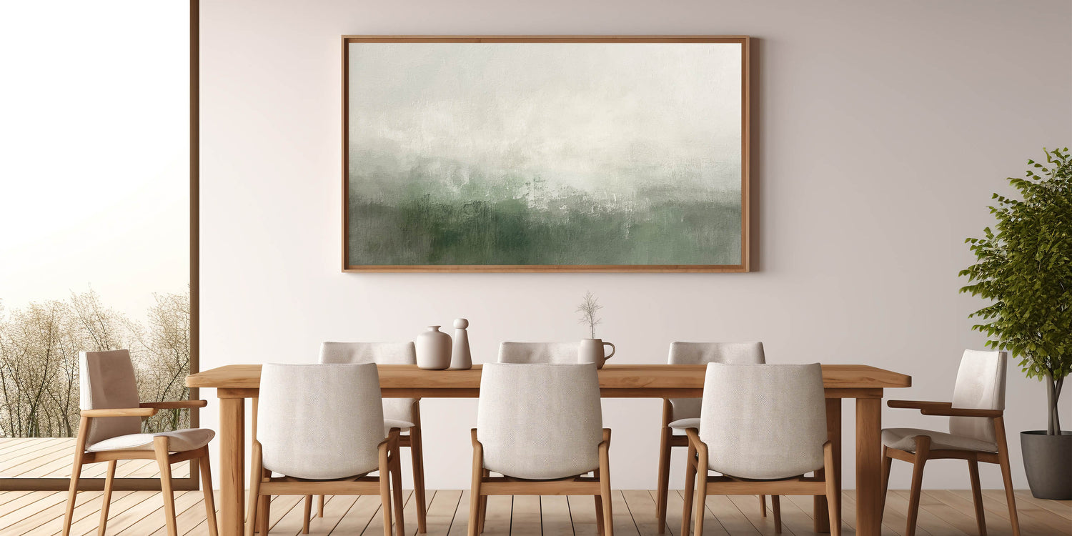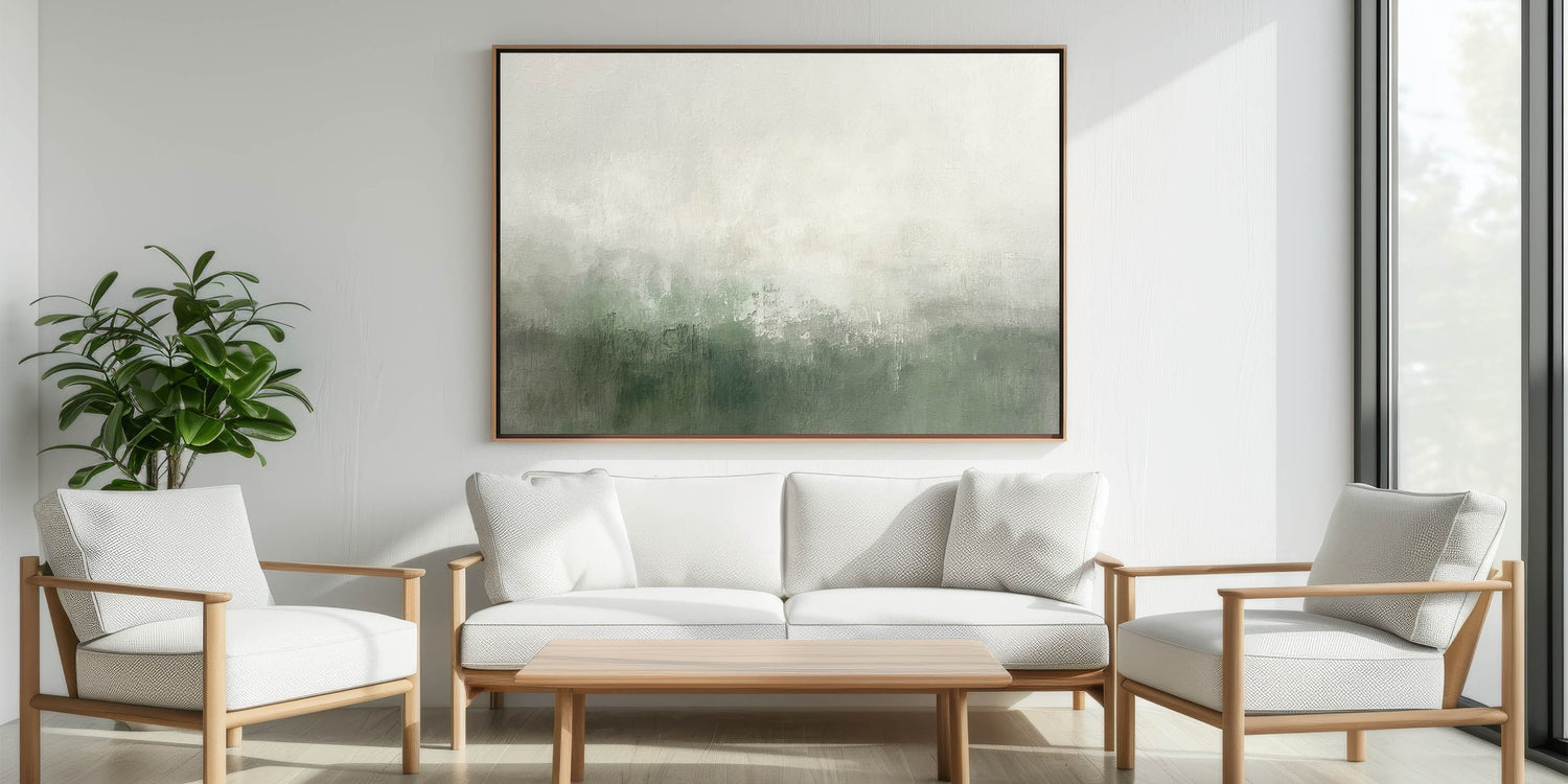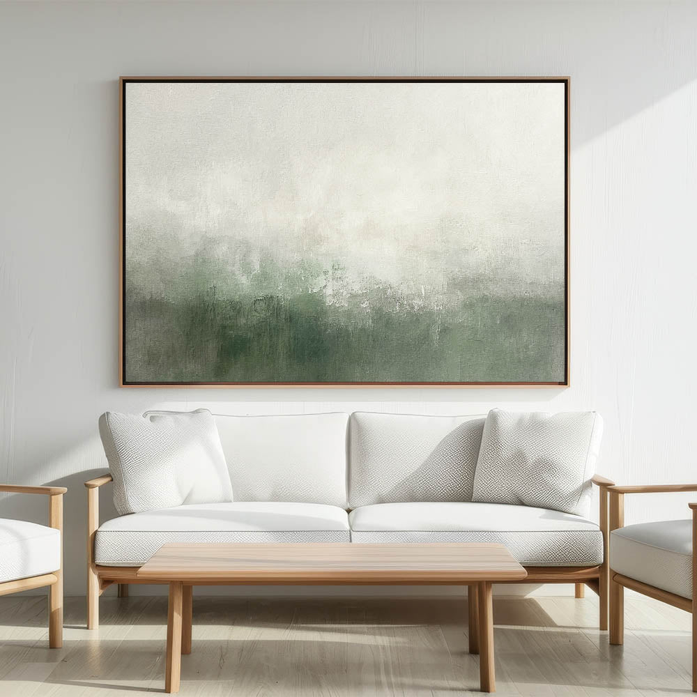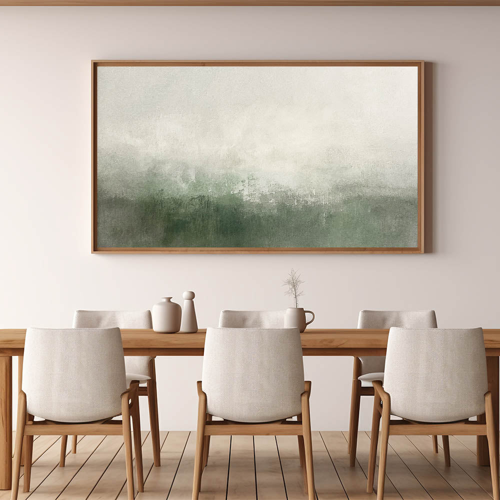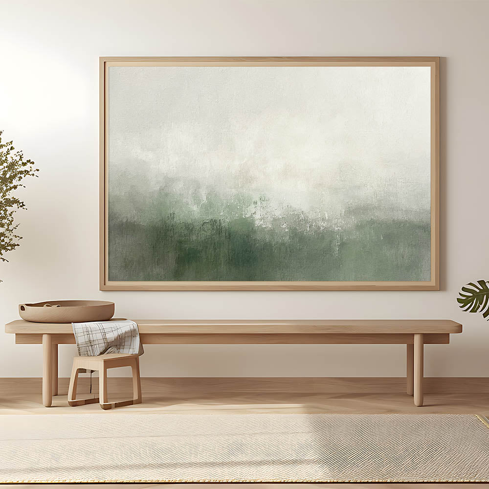Add a sense of calm to your space with this minimalist abstract landscape art featuring gentle greens and grays in a misty, serene composition. This piece captures the peaceful beauty of nature with soft, blurred textures and subtle gradients, creating a soothing atmosphere perfect for tranquil spaces. Ideal for those who appreciate understated elegance, this artwork is both modern and timeless.