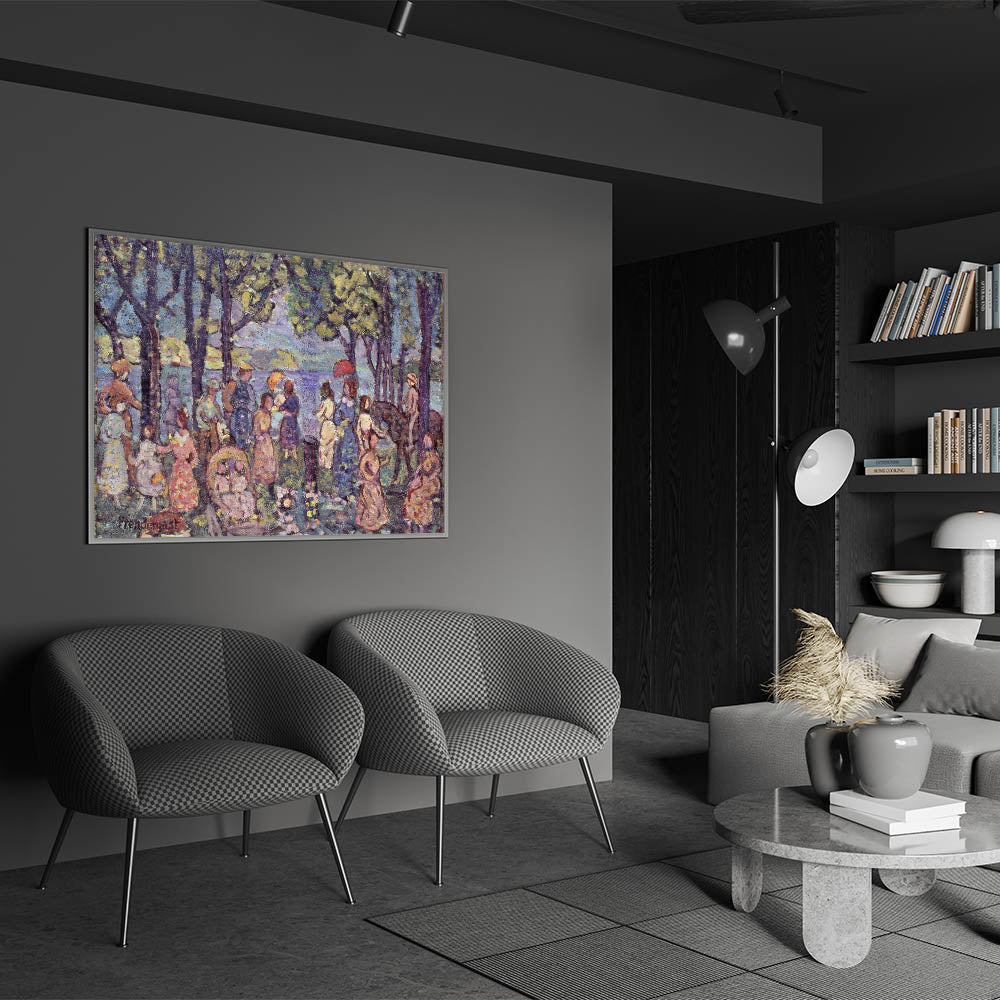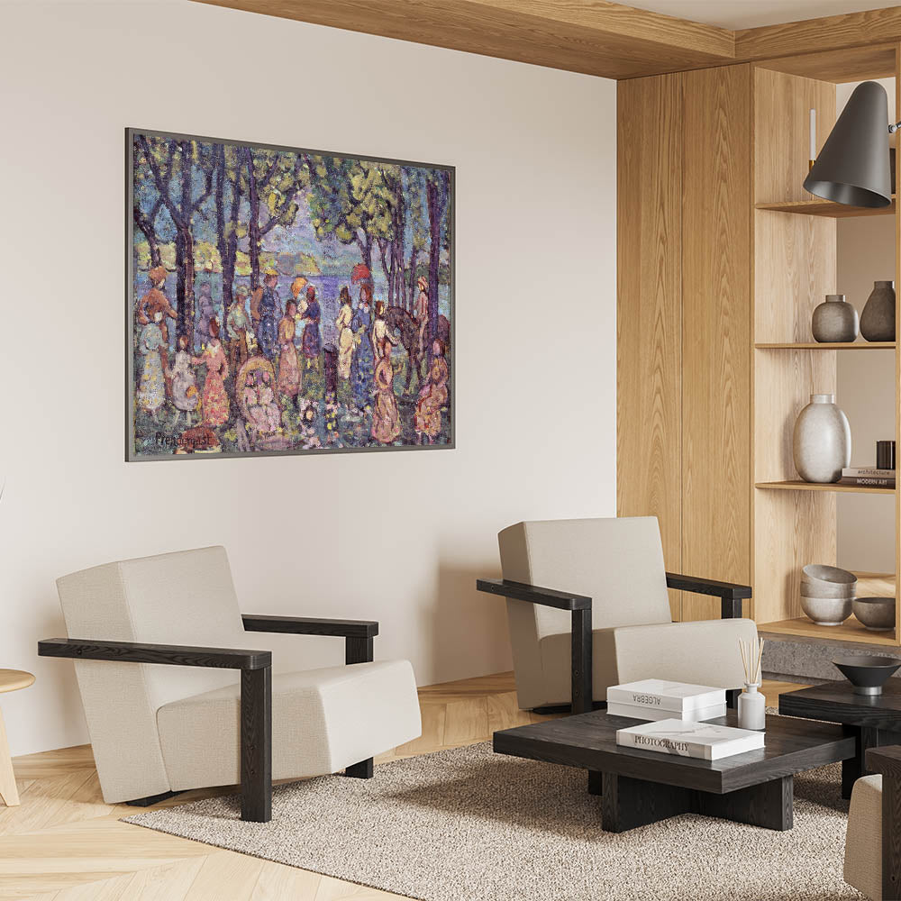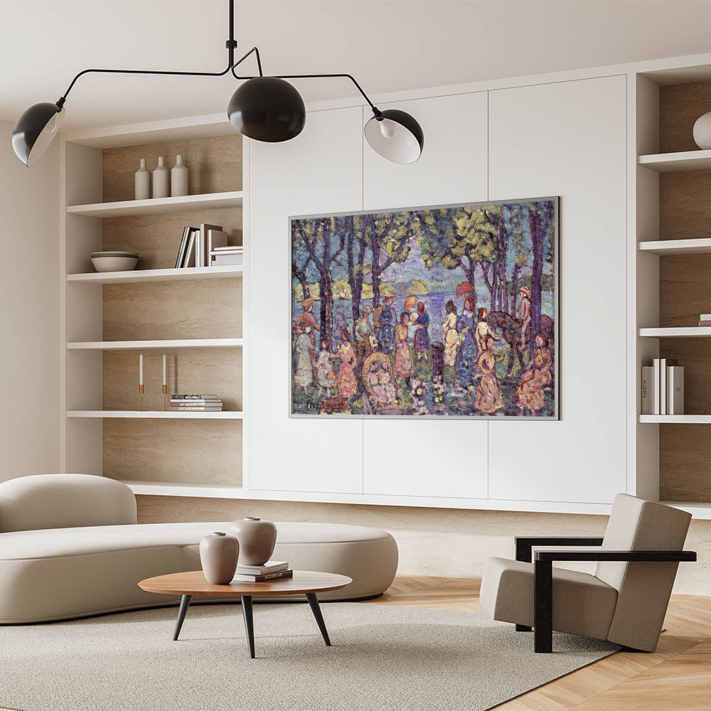 Infuse your space with the lively charm of "Summer in New England," a captivating piece of modern wall art by Maurice Prendergast. This vibrant artwork captures a joyful scene of people enjoying a sunny day by the water, surrounded by lush greenery and colorful attire. Perfect for trendy home decor, it evokes warmth, energy, and nostalgia, making it an ideal addition to your collection.