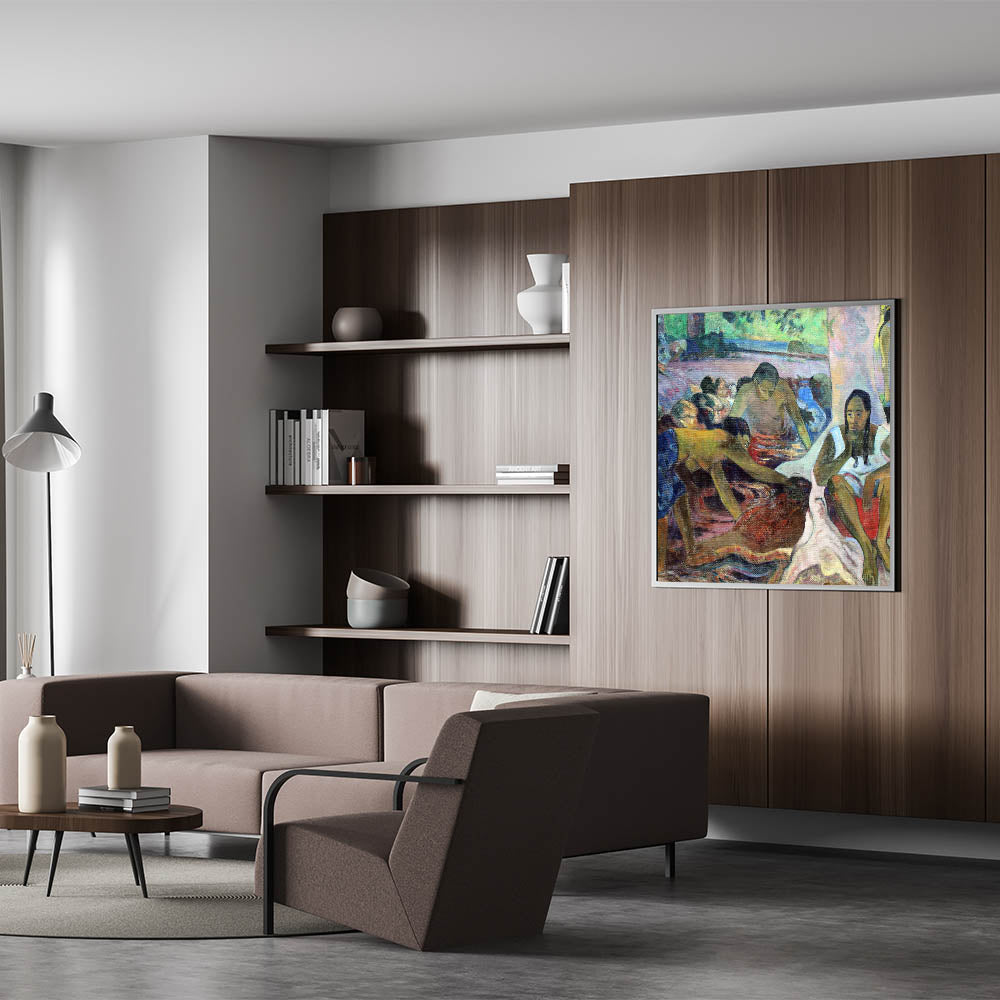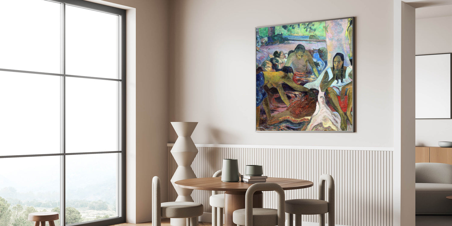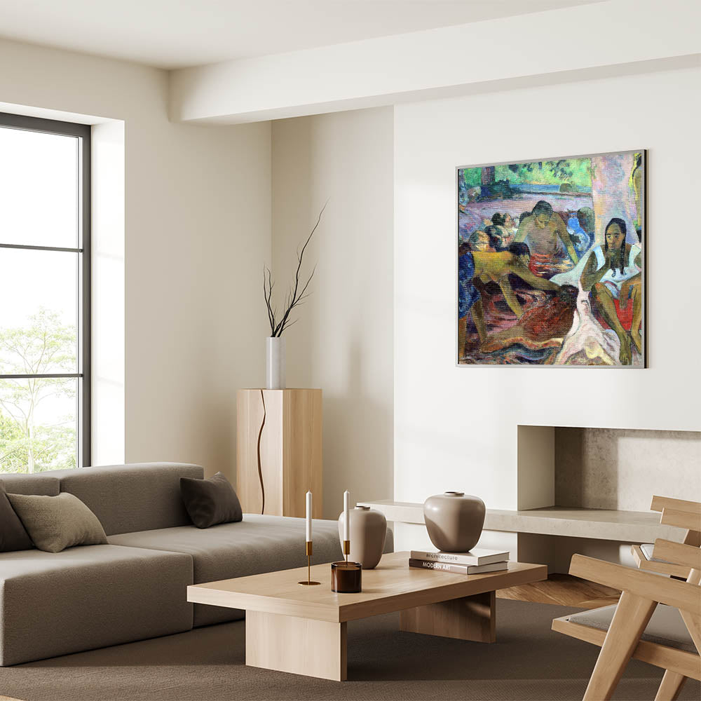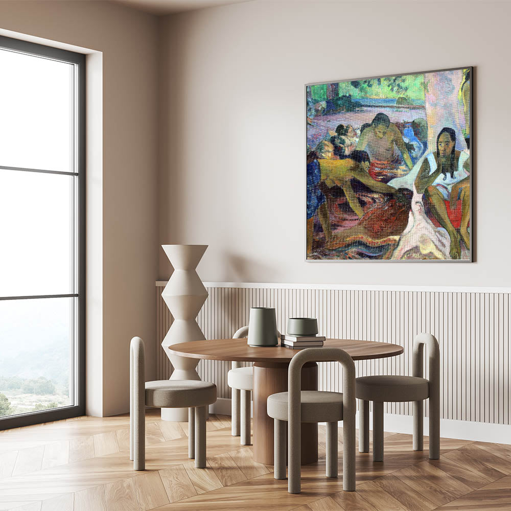 Bring a touch of exotic beauty to your decor with "Tahitian Fisherwomen," a vibrant and culturally rich artwork inspired by Paul Gauguin's iconic style. This piece captures a group of Tahitian women engaged in daily life, rendered in warm, earthy tones and lush greens that reflect the tropical landscape. Perfect for art enthusiasts who appreciate unique cultural pieces, this modern wall art adds a sense of warmth, history, and global perspective to any space.