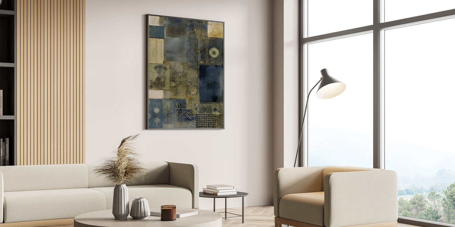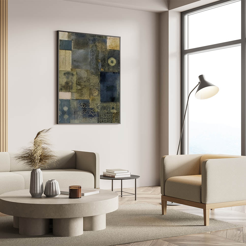 Infuse your home with the elegance of rustic textures and a hint of industrial style through this abstract wall art, designed to create a calm, harmonious ambiance in any room.
