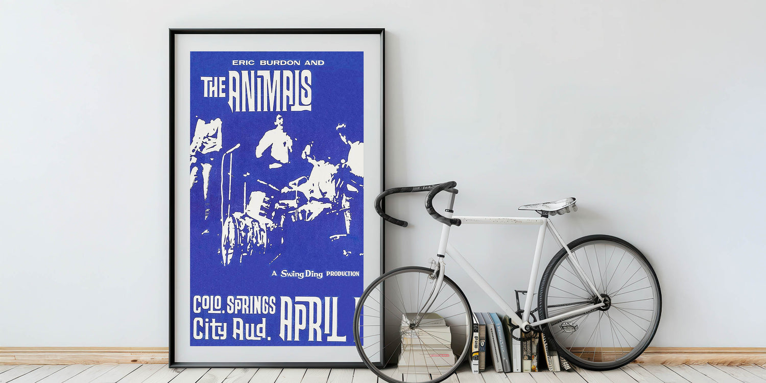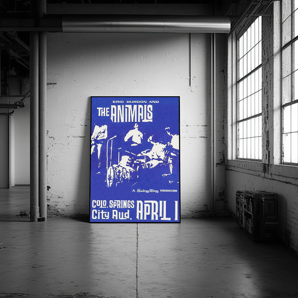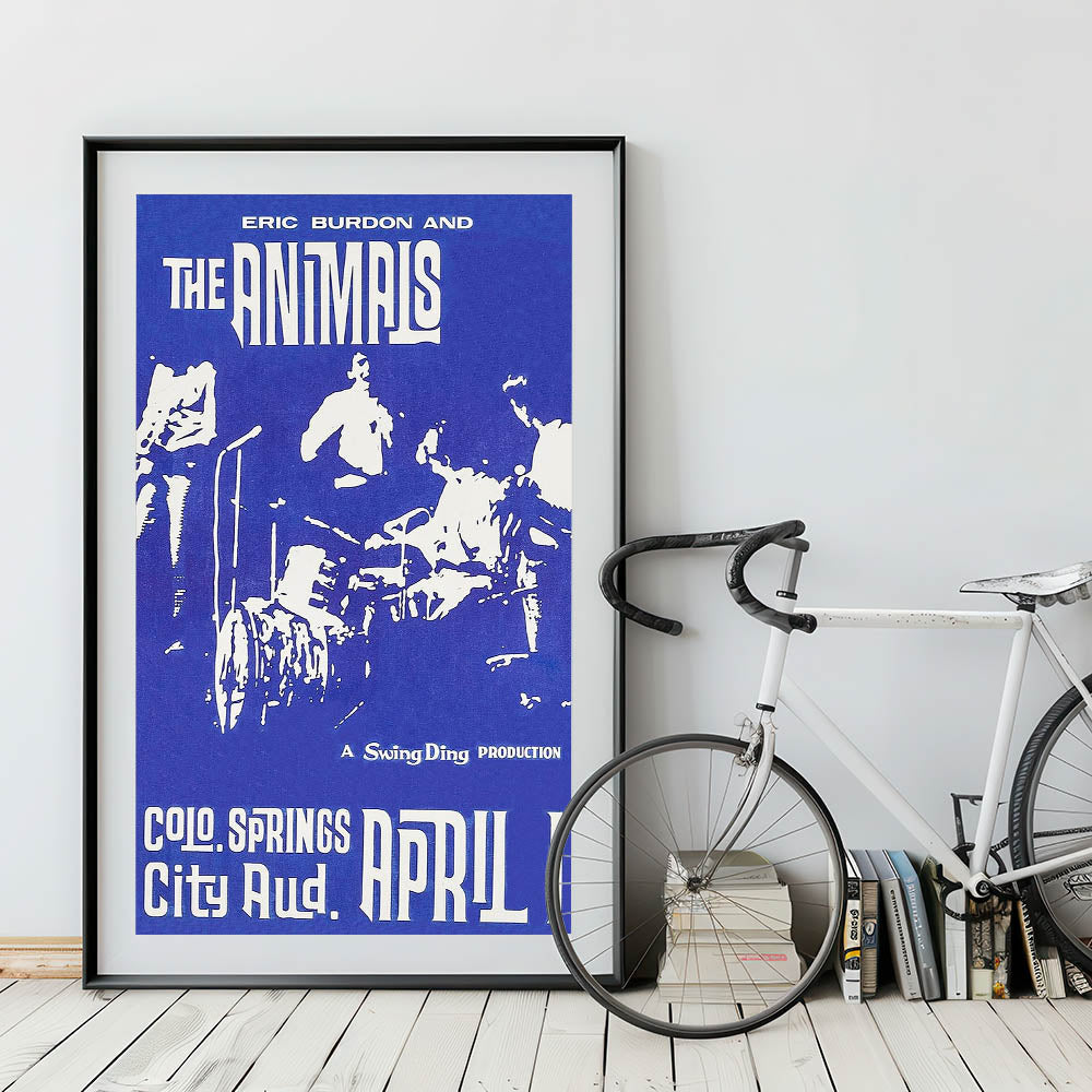 Capture the spirit of classic rock with this The Animals Retro Poster, inspired by a vintage concert in Colorado Springs. Featuring a bold blue and white design with striking typography, this vintage print embodies the essence of Retro Aesthetic and Mid-Century Modern Art. Perfect for rock enthusiasts and lovers of Vintage Decor, this nostalgic art print transforms any space into a tribute to the golden era of rock and roll. Its minimalist yet powerful design makes it a standout piece for music rooms, home offices, or living spaces.