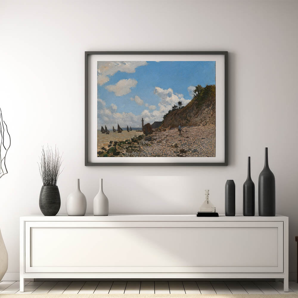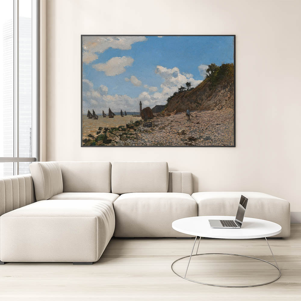 Bring the serene beauty of The Beach at Honfleur by Claude Monet into your home. This stunning Impressionist seascape captures the tranquil atmosphere of Honfleur’s shoreline. Monet's mastery of light and color is evident in the soft blue sky, delicate white clouds, and the earthy tones of the rugged coastline. The gentle movement of the sailboats adds a touch of liveliness, creating a harmonious composition.