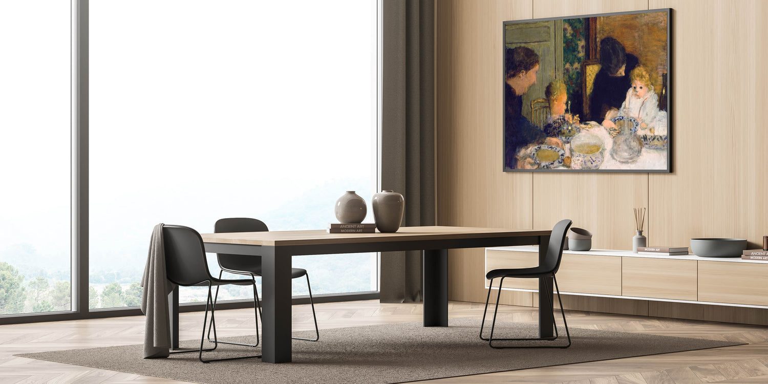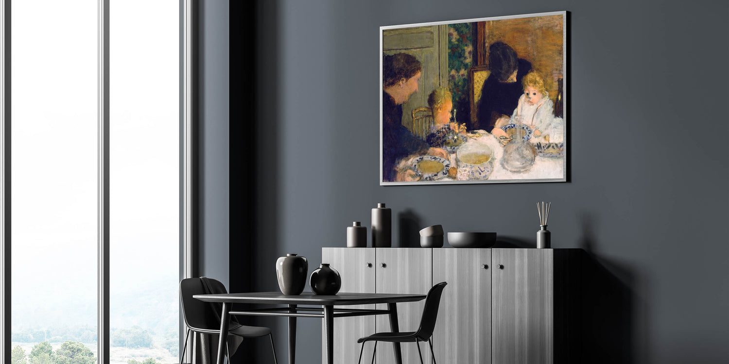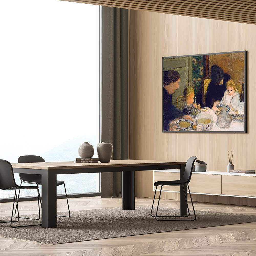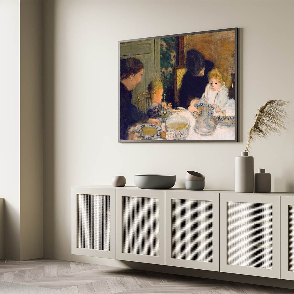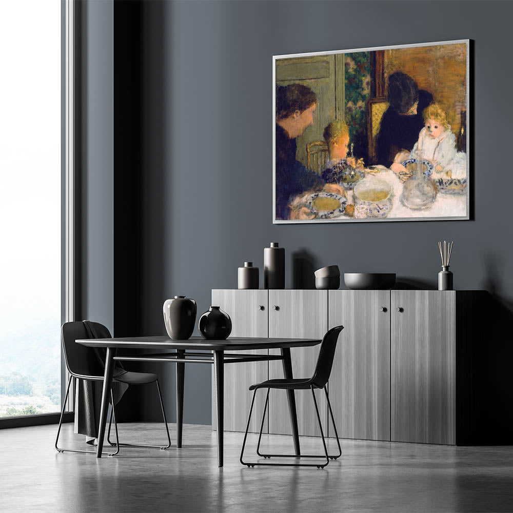 Add a touch of warmth and nostalgia to your home with "The Children's Meal," an intimate family scene painted by Pierre Bonnard. This artwork captures a quiet moment around the dining table, where gentle light and soft colors evoke a sense of comfort and togetherness. Ideal for lovers of timeless art, this modern wall piece brings an inviting, cozy atmosphere, perfect for creating a homely and welcoming ambiance.