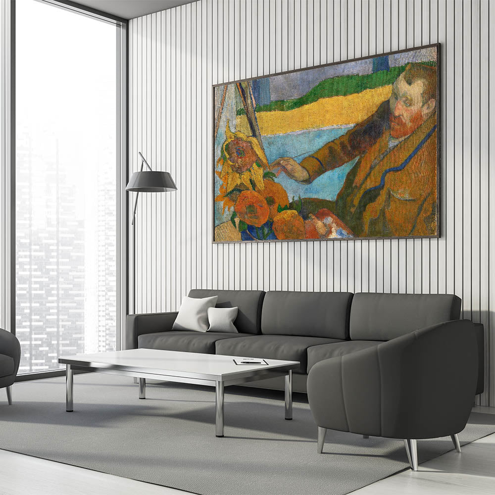 Celebrate the legacy of creativity with "The Painter of Sunflowers," an iconic artwork that captures a portrait of Van Gogh painting his famous sunflowers. This expressive piece, created by Paul Gauguin, uses warm, earthy tones and bold brushwork to depict the artist at work, surrounded by vibrant blooms. Ideal for art enthusiasts and admirers of the Impressionist era, this modern wall art brings a touch of historical charm and artistic spirit to any room.