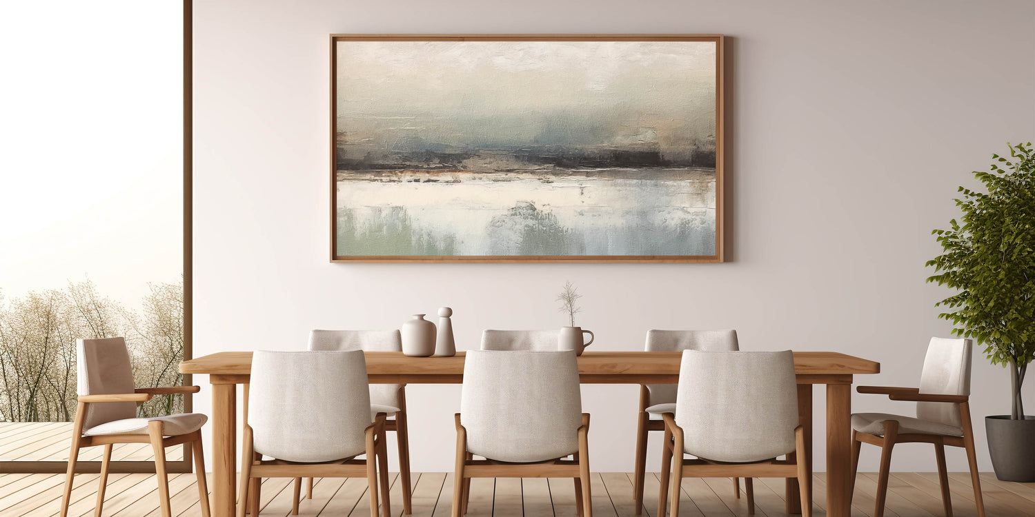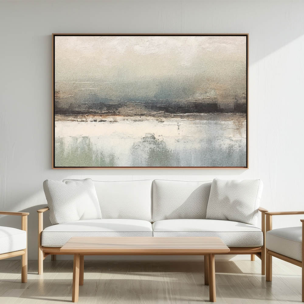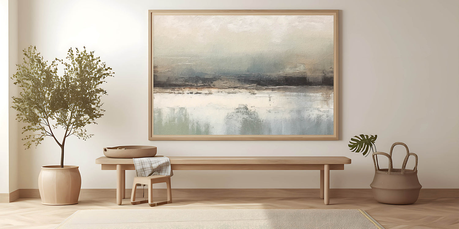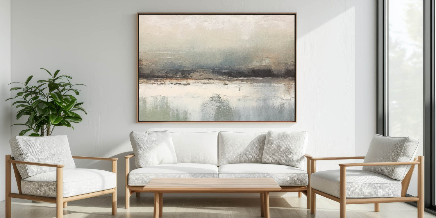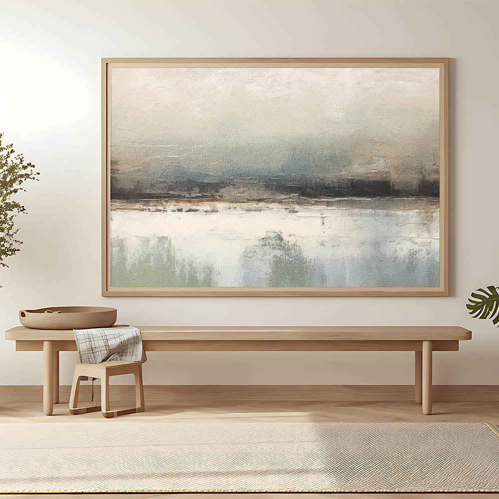 Transform your living space with this captivating abstract landscape art, a piece that merges serene tones with expressive textures. Perfect for contemporary and minimalist decor styles, this artwork adds a subtle touch of sophistication to any room. The muted color palette evokes a sense of calm and harmony, making it an ideal choice for creating a peaceful atmosphere in your home.