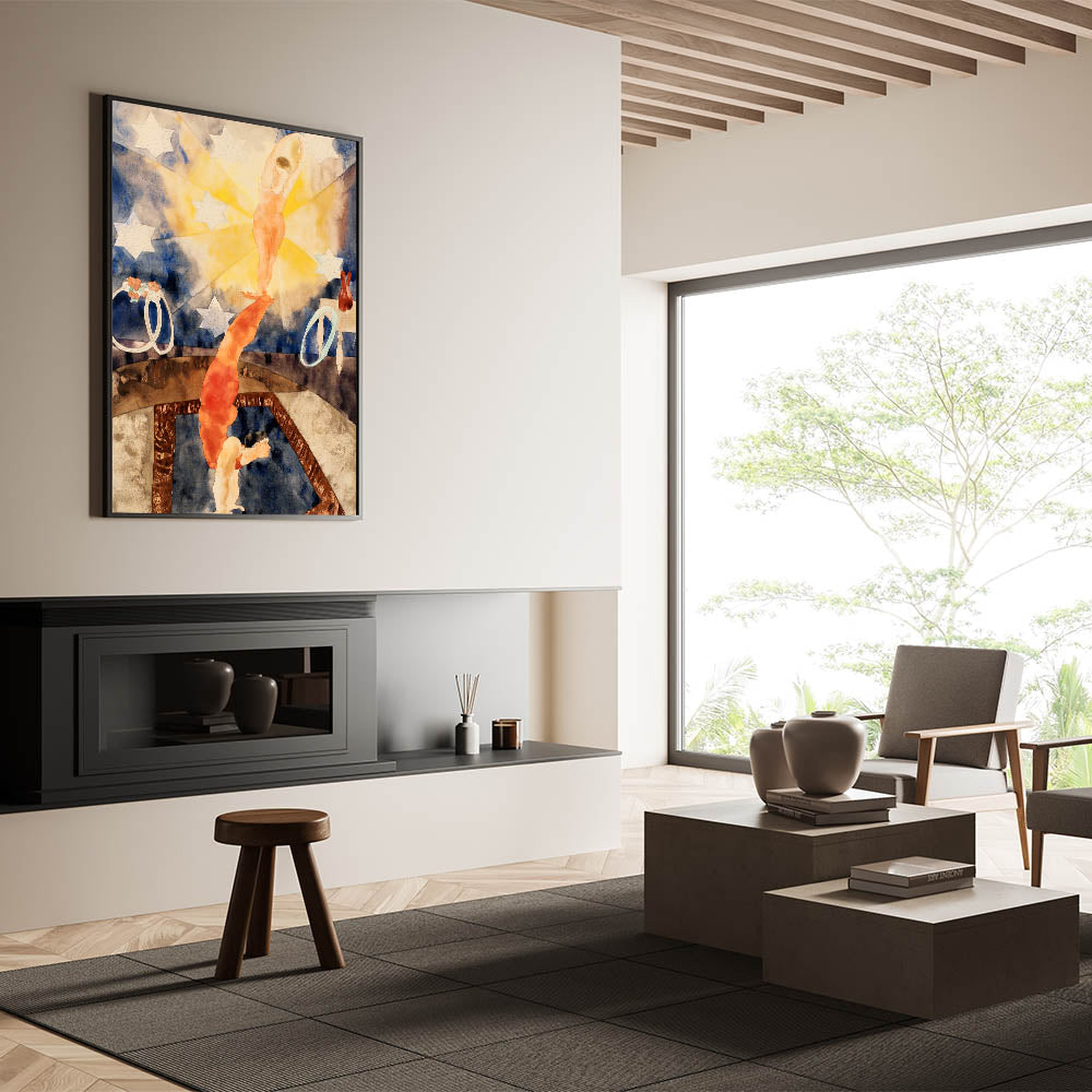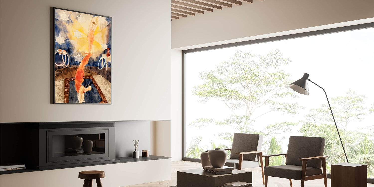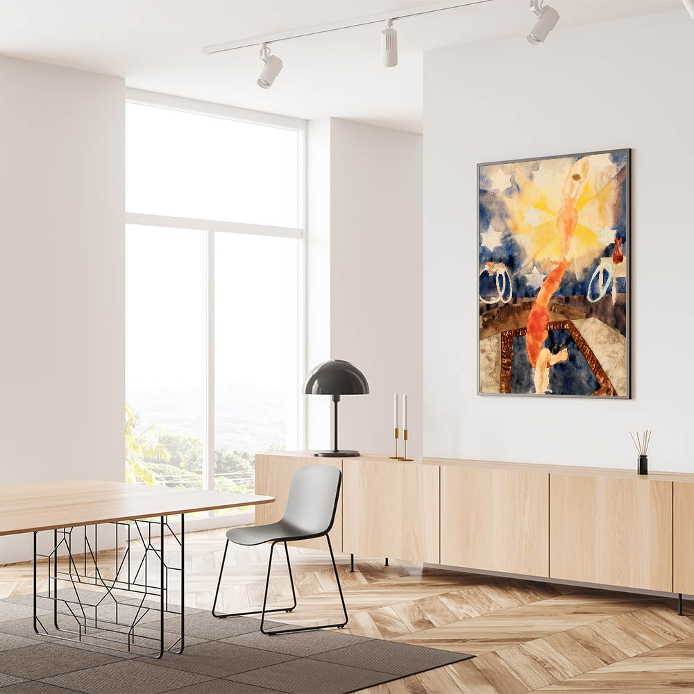 Bring dynamic energy and elegance to your walls with Charles Demuth’s "Two Acrobats in Red Tights" (1917), a stunning work of abstract modern art. This captivating piece features acrobatic figures in vivid red, highlighted by radiant yellows and deep blues, creating a sense of movement and theatricality. Ideal for trendy home decor, it beautifully blends modern design elements with timeless artistry.