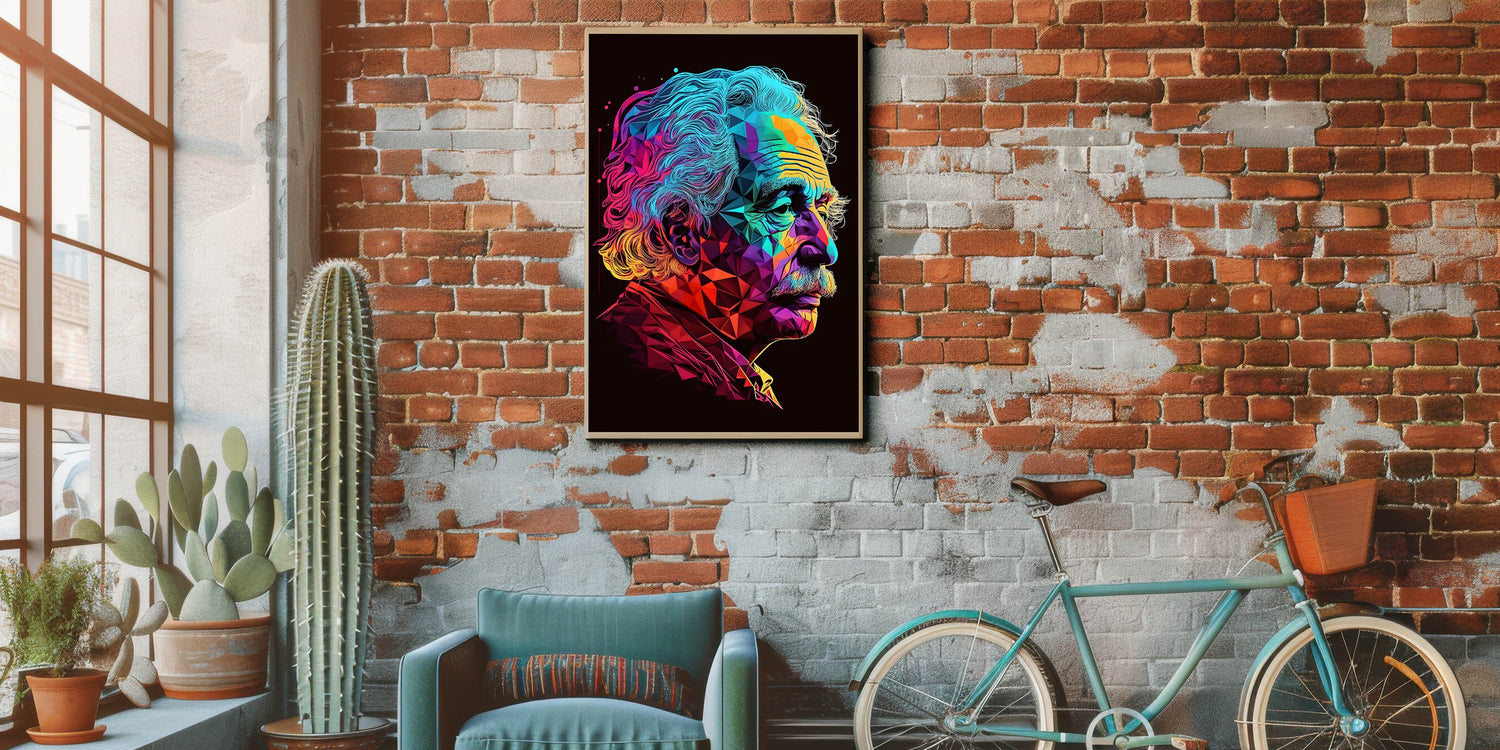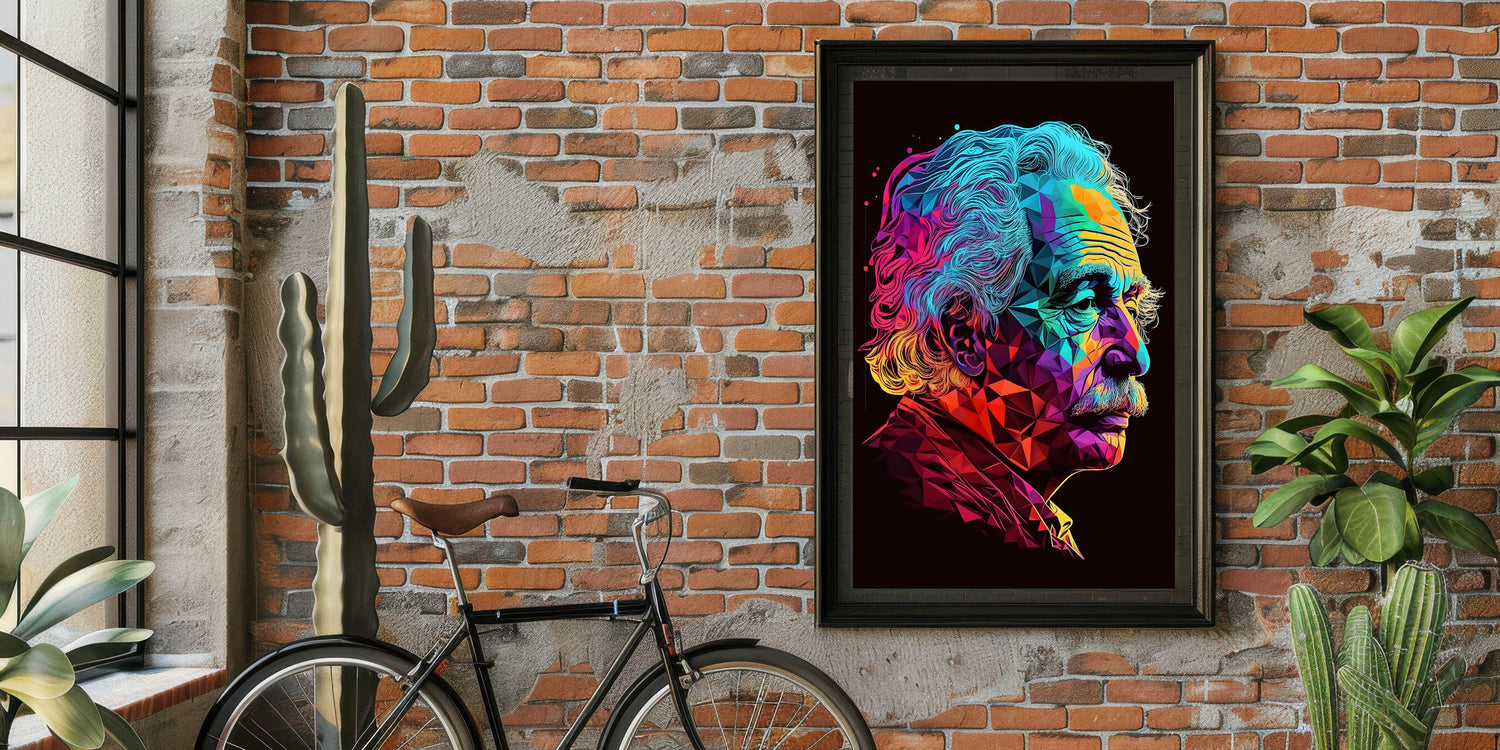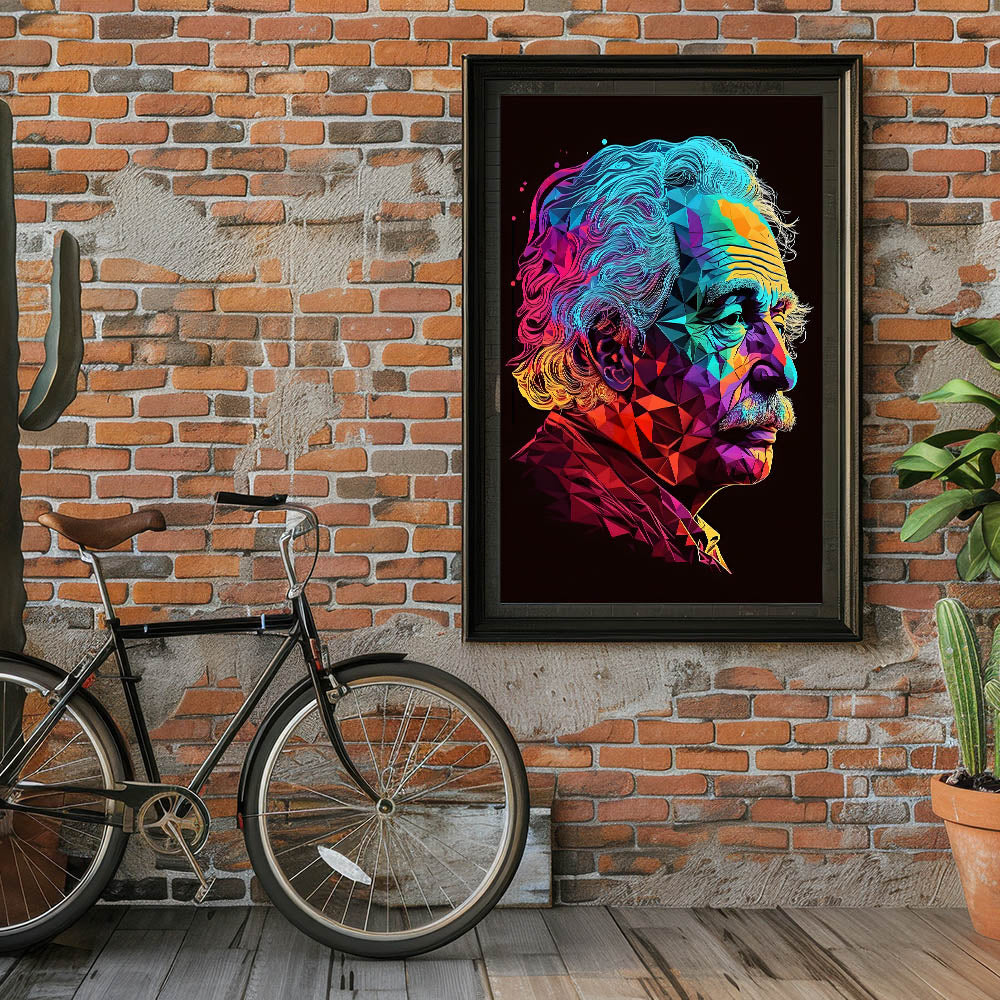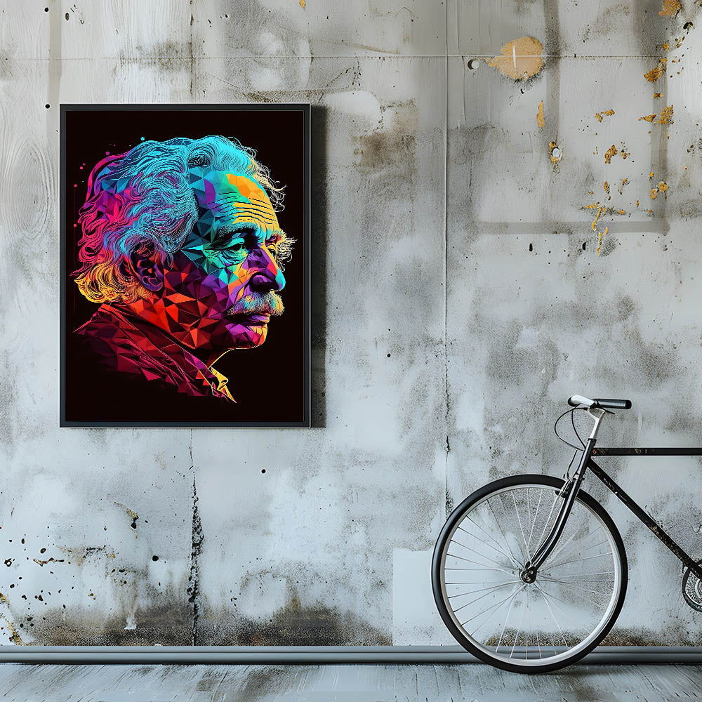 Brighten up your space with this vibrant Pop Art canvas featuring a low-poly neon portrait. This modern Pop Art print takes traditional portraiture and reimagines it through bold, angular shapes and vibrant colors. The striking combination of blues, purples, and yellows gives this artwork a dynamic, contemporary feel, making it a perfect addition to any modern living room or office.