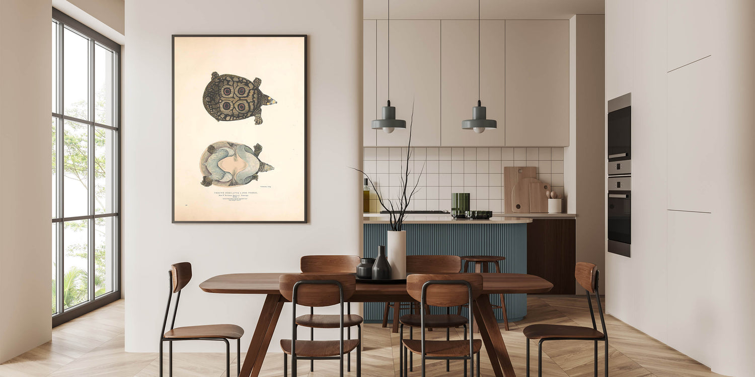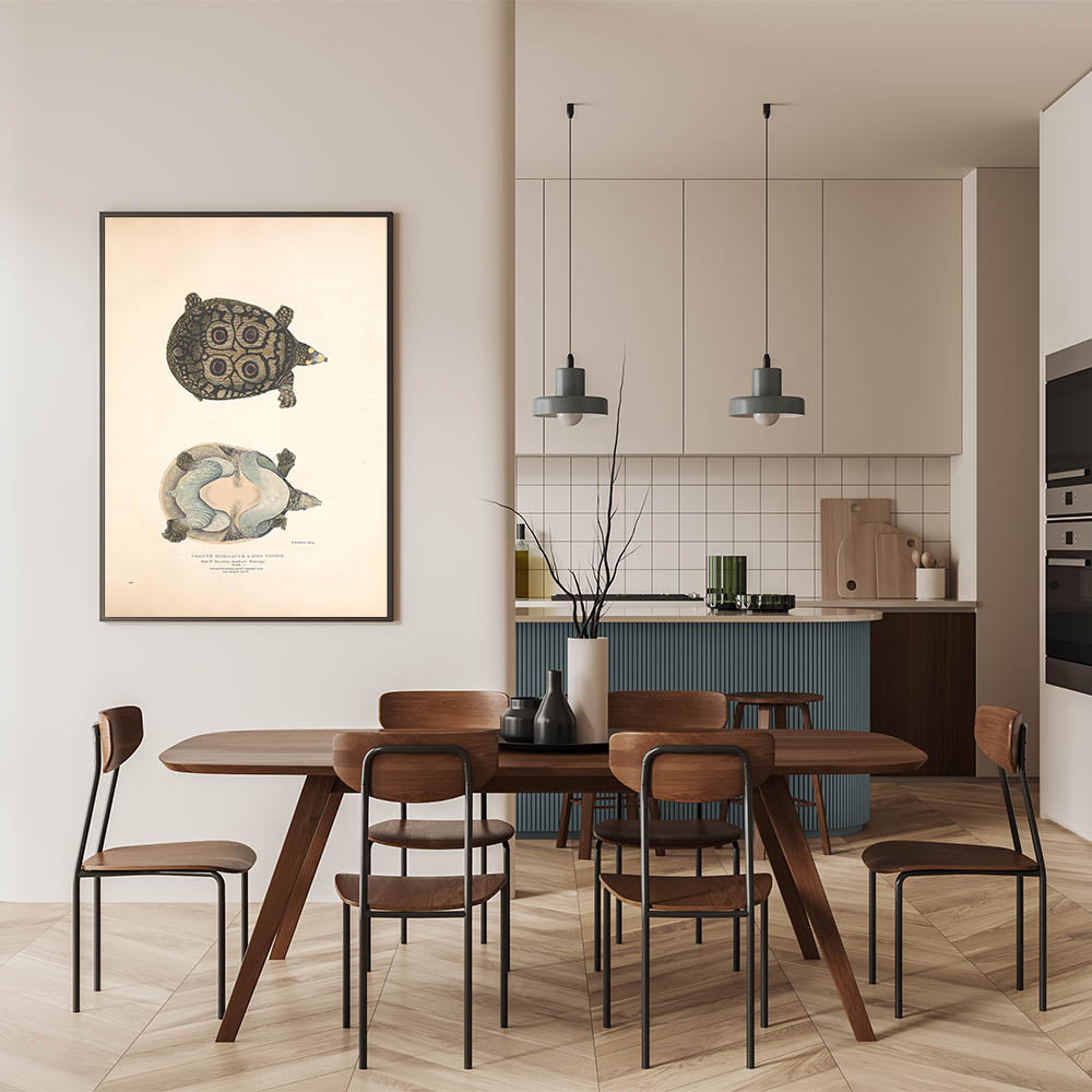 This illustration art print merges artistic animal wall decor with nature-inspired aesthetics, creating a sophisticated and organic look. Whether displayed in a study, office, or living room, this high-quality art print provides a fascinating glimpse into the world of unique reptiles.
