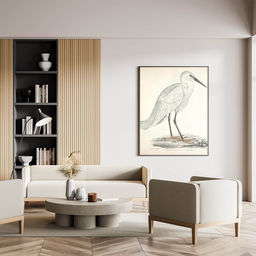 Vintage Animal Art – Indian White Heron Illustration Wall Print