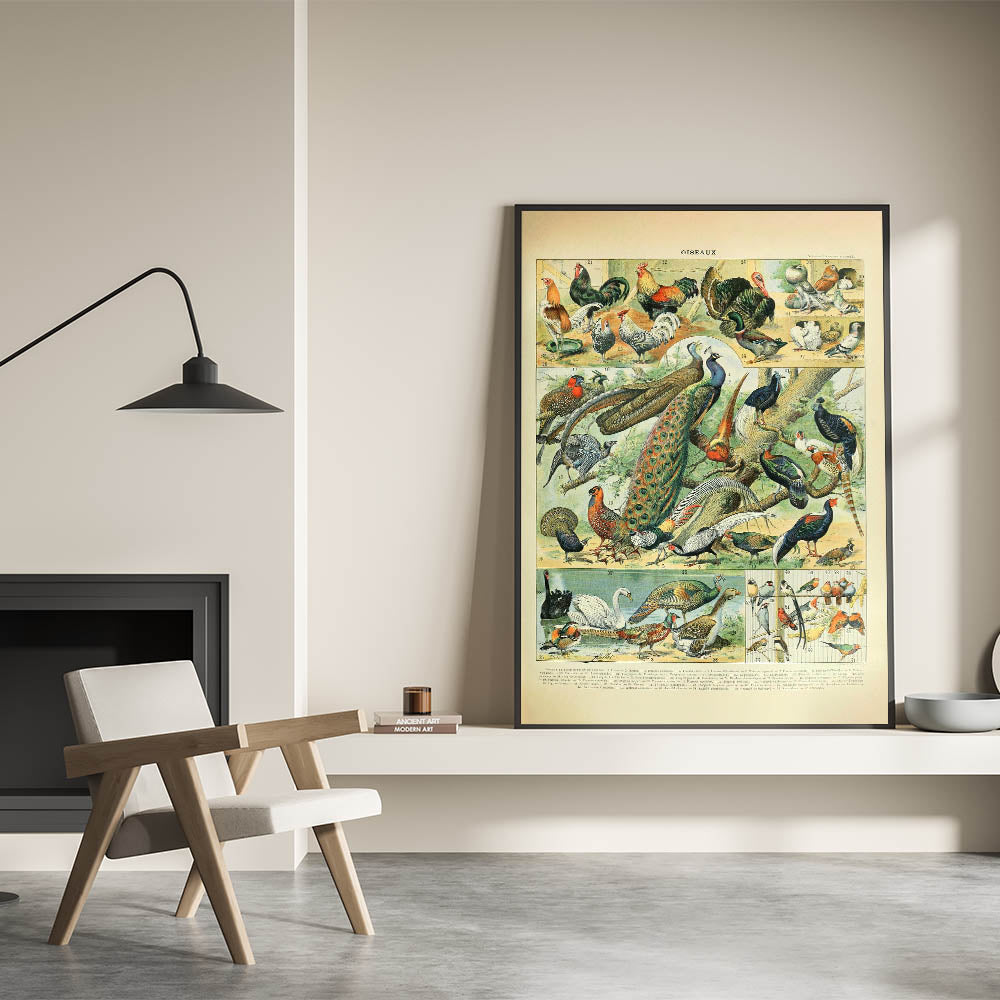 Enhance your space with this detailed animal artwork, blending nature-inspired illustrations with scientific precision. Shop now and bring the beauty of exotic birds into your home!