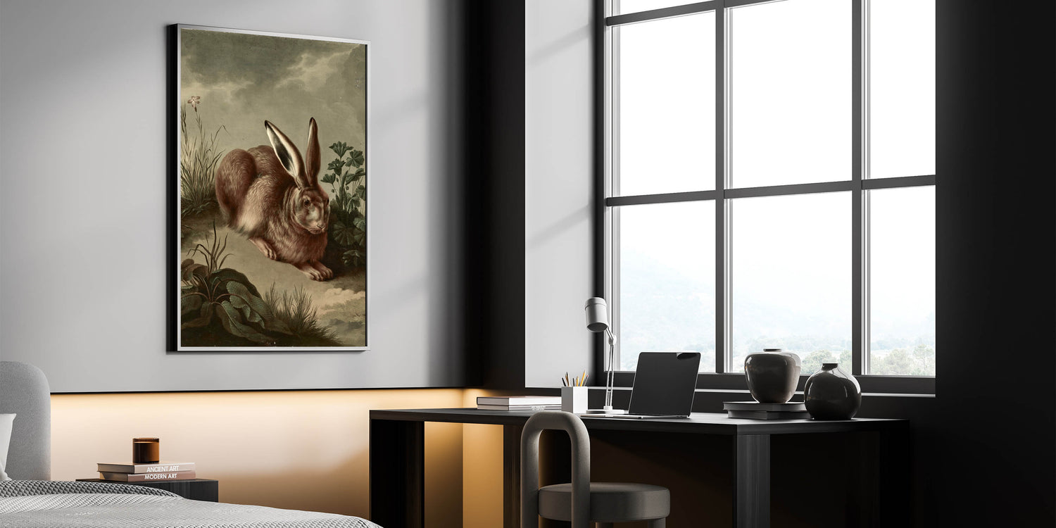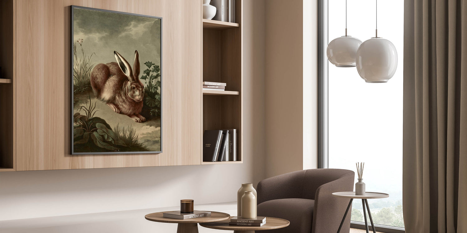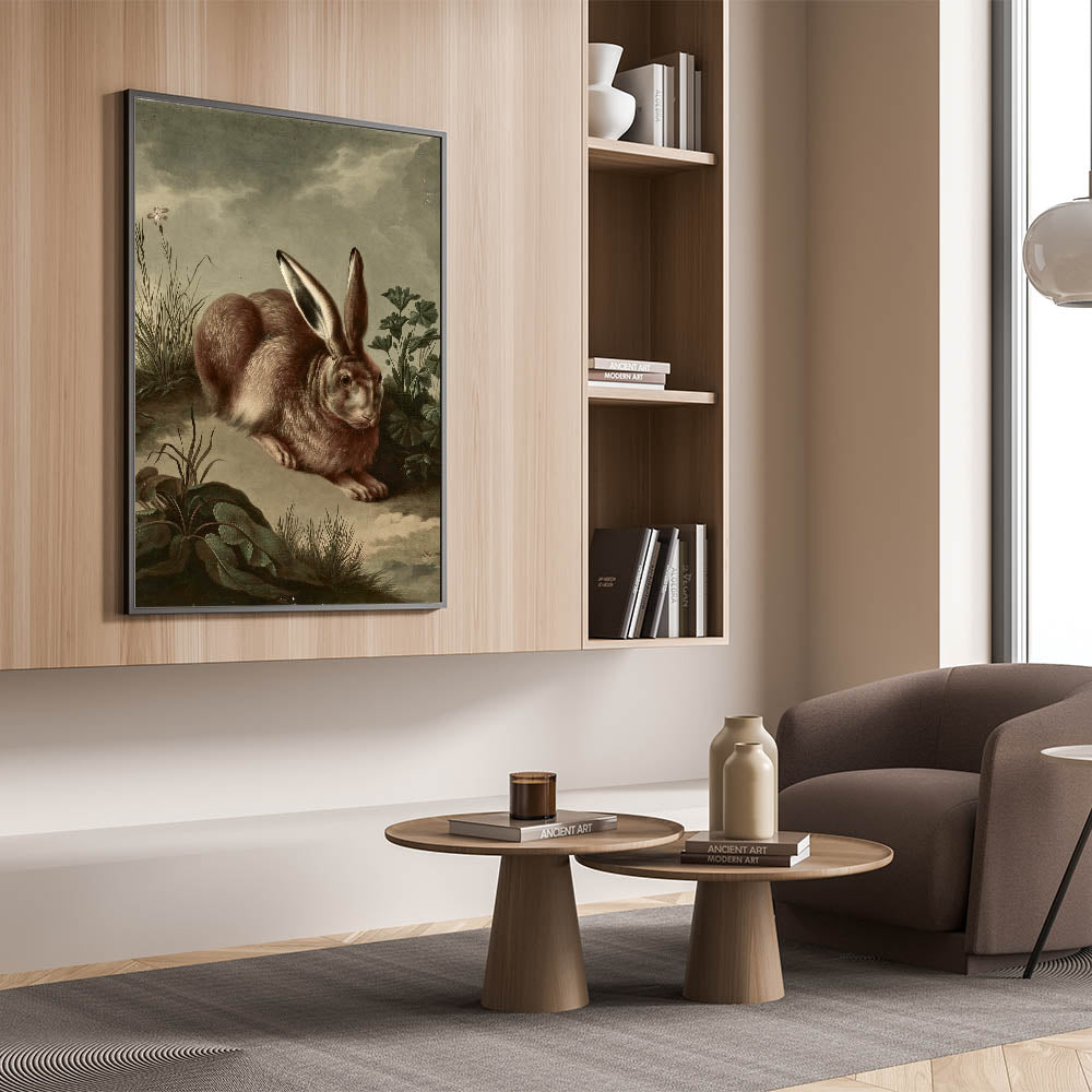 This vintage rabbit print brings the beauty of the natural world into your home. Its timeless design and serene composition make it a perfect fit for animal art enthusiasts or anyone seeking to add a touch of nature’s elegance to their decor.