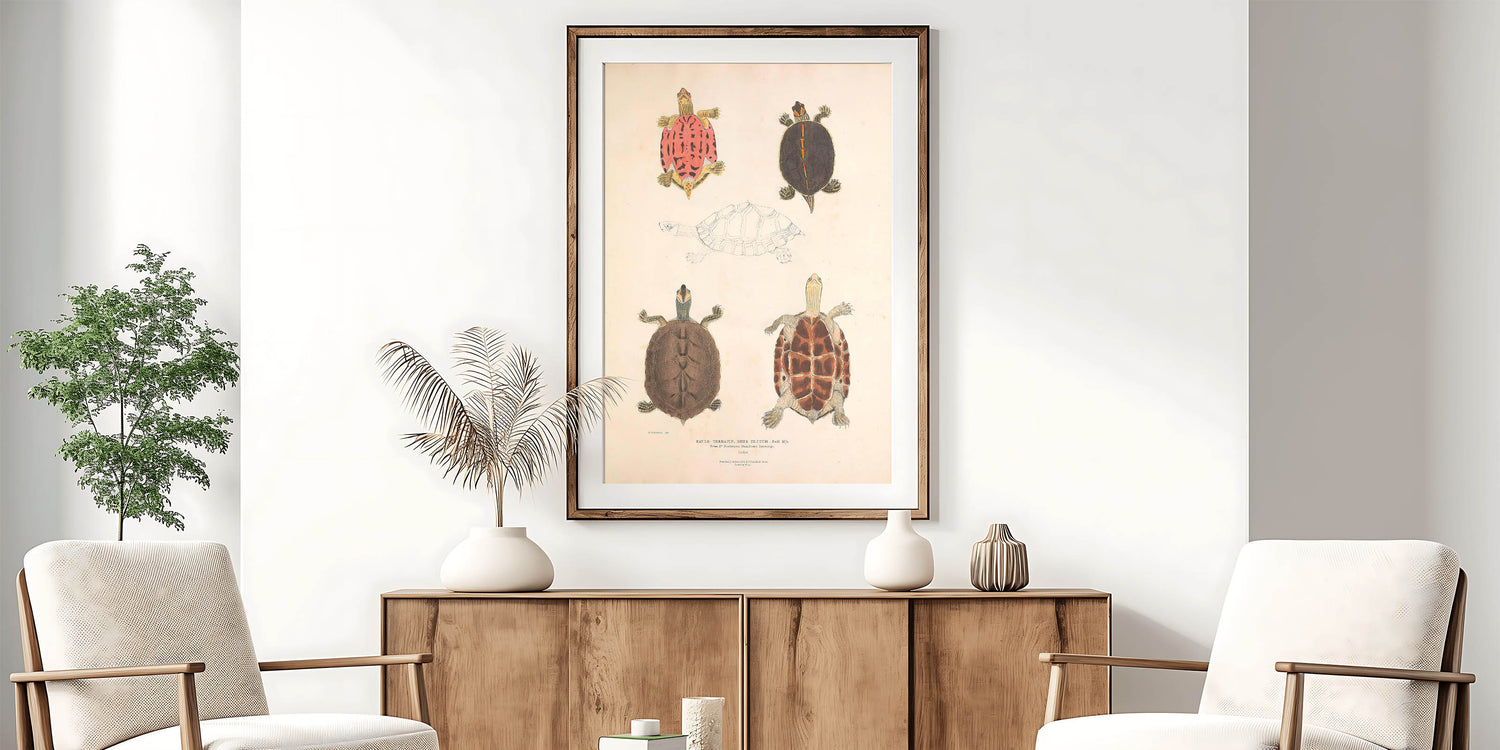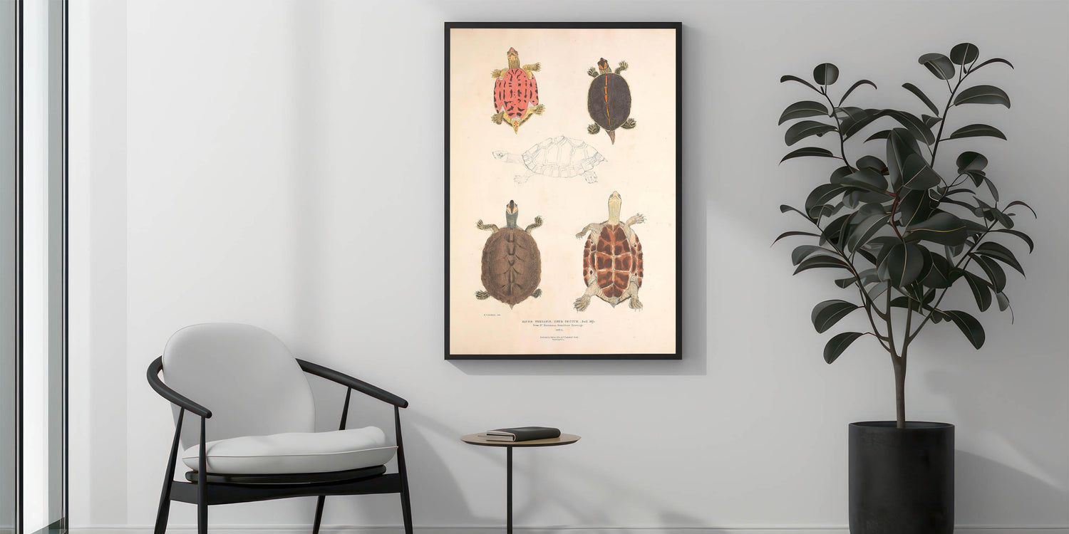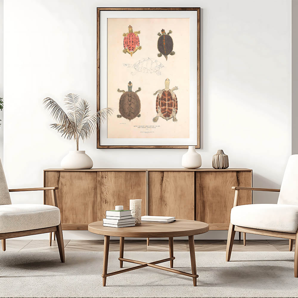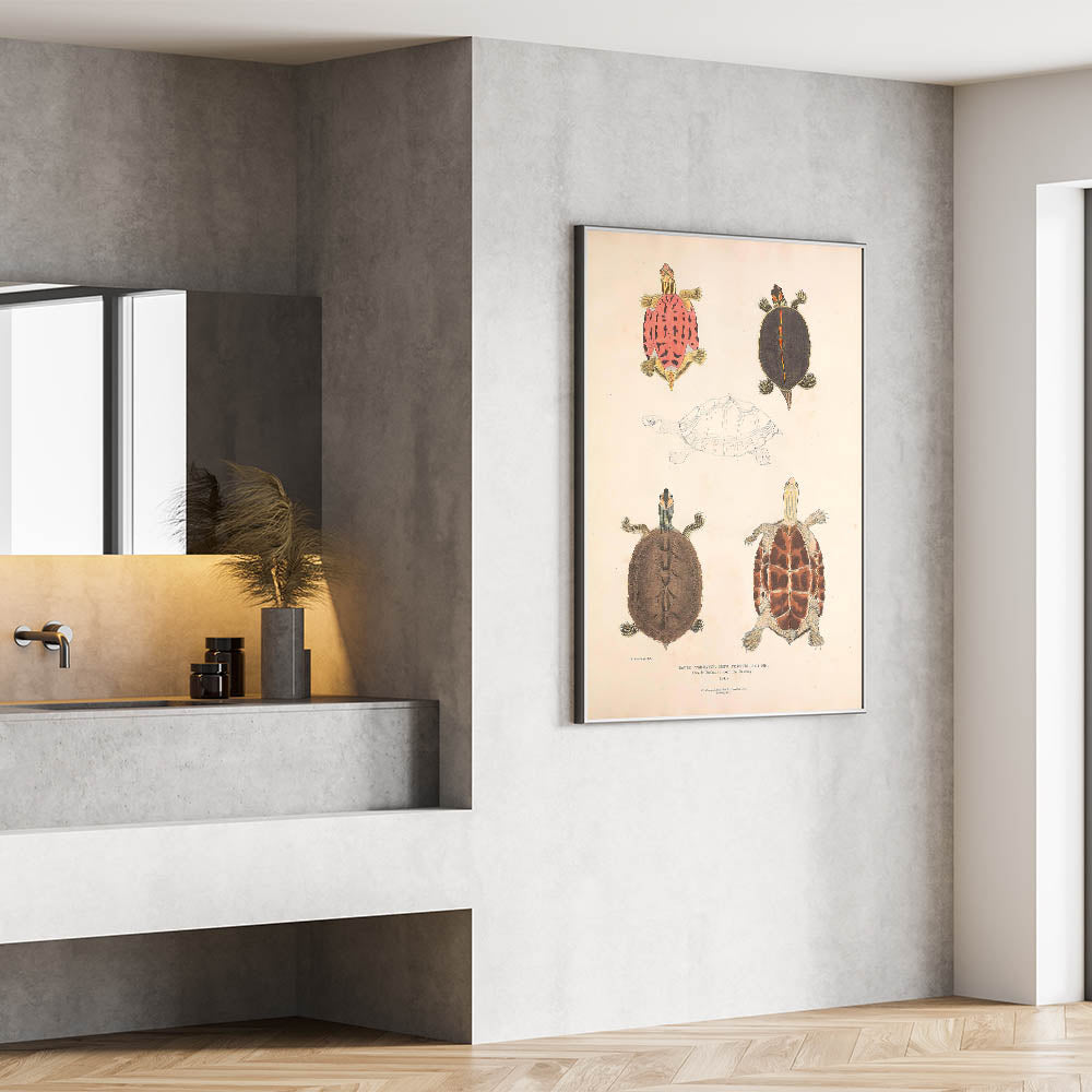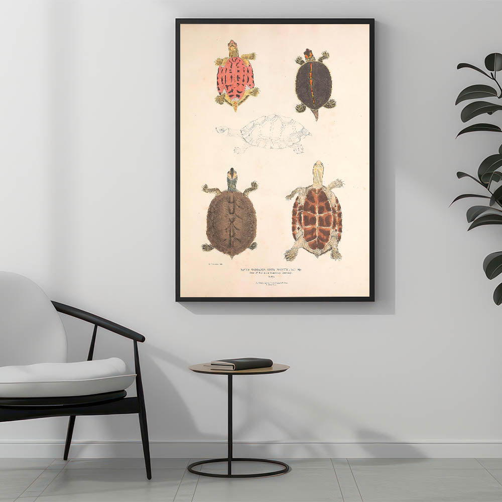 - High-quality art print featuring various terrapin turtles in vintage detail