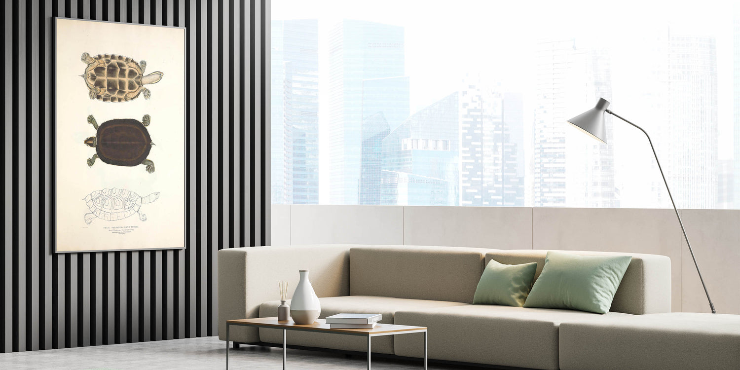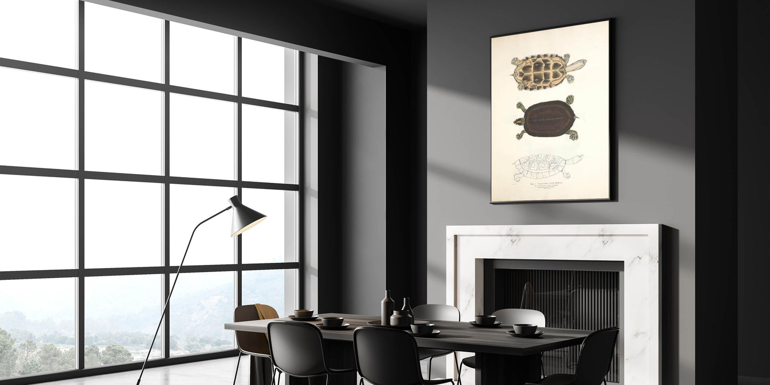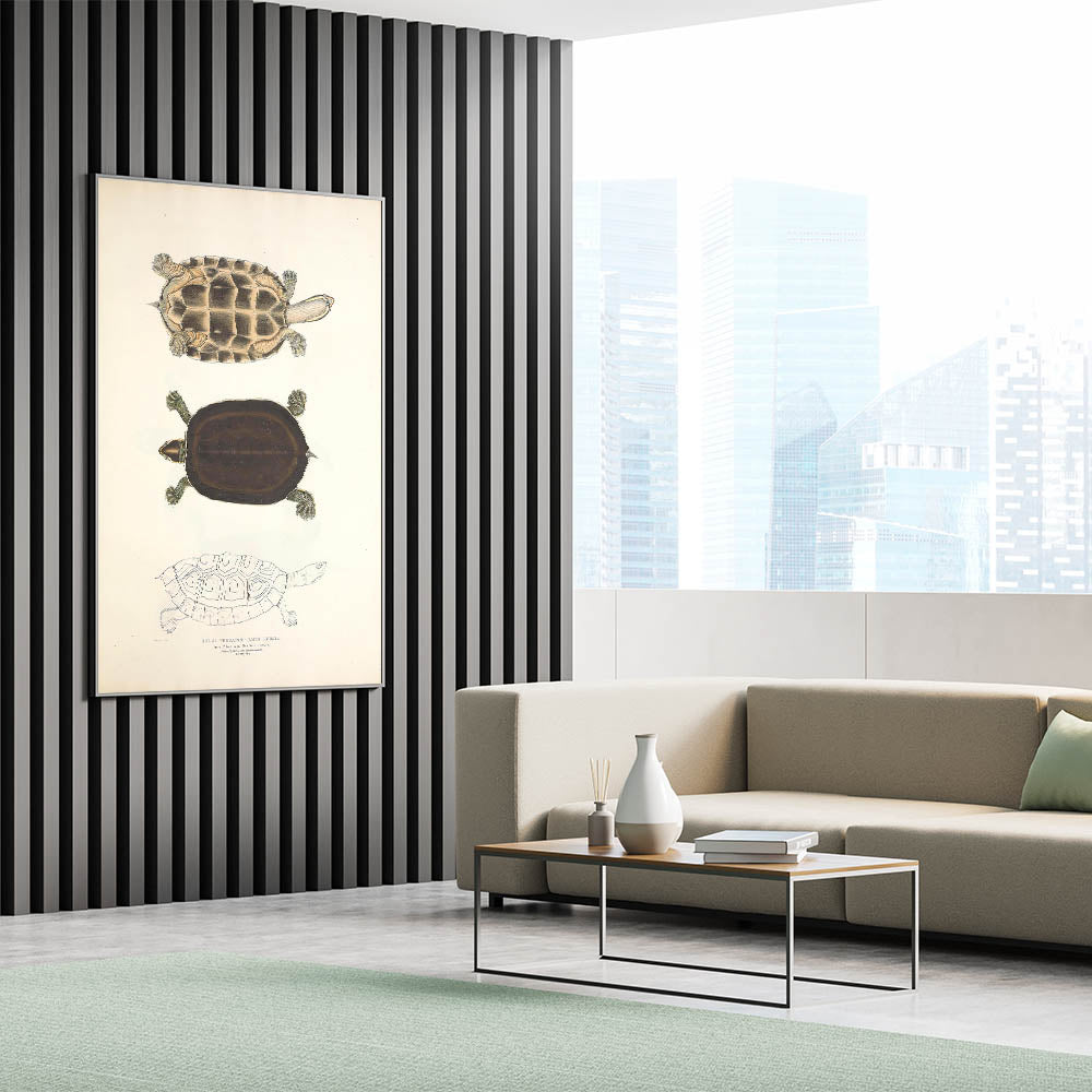 Discover the beauty of timeless vintage animal art with this Thuji Terrapin Turtle illustration. This detailed animal artwork presents multiple perspectives of these unique reptiles, highlighting their distinct shell patterns, textured skin, and intricate natural details. A perfect choice for animal wall decor enthusiasts and reptile lovers.