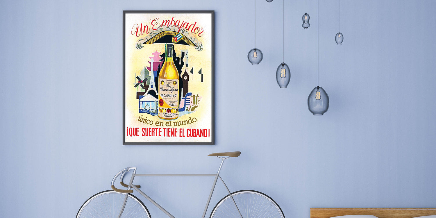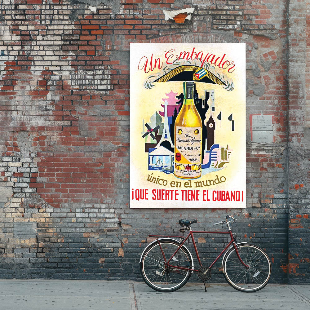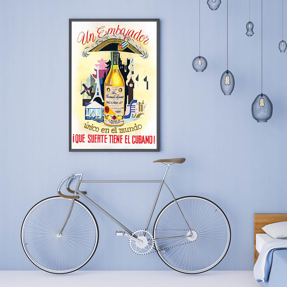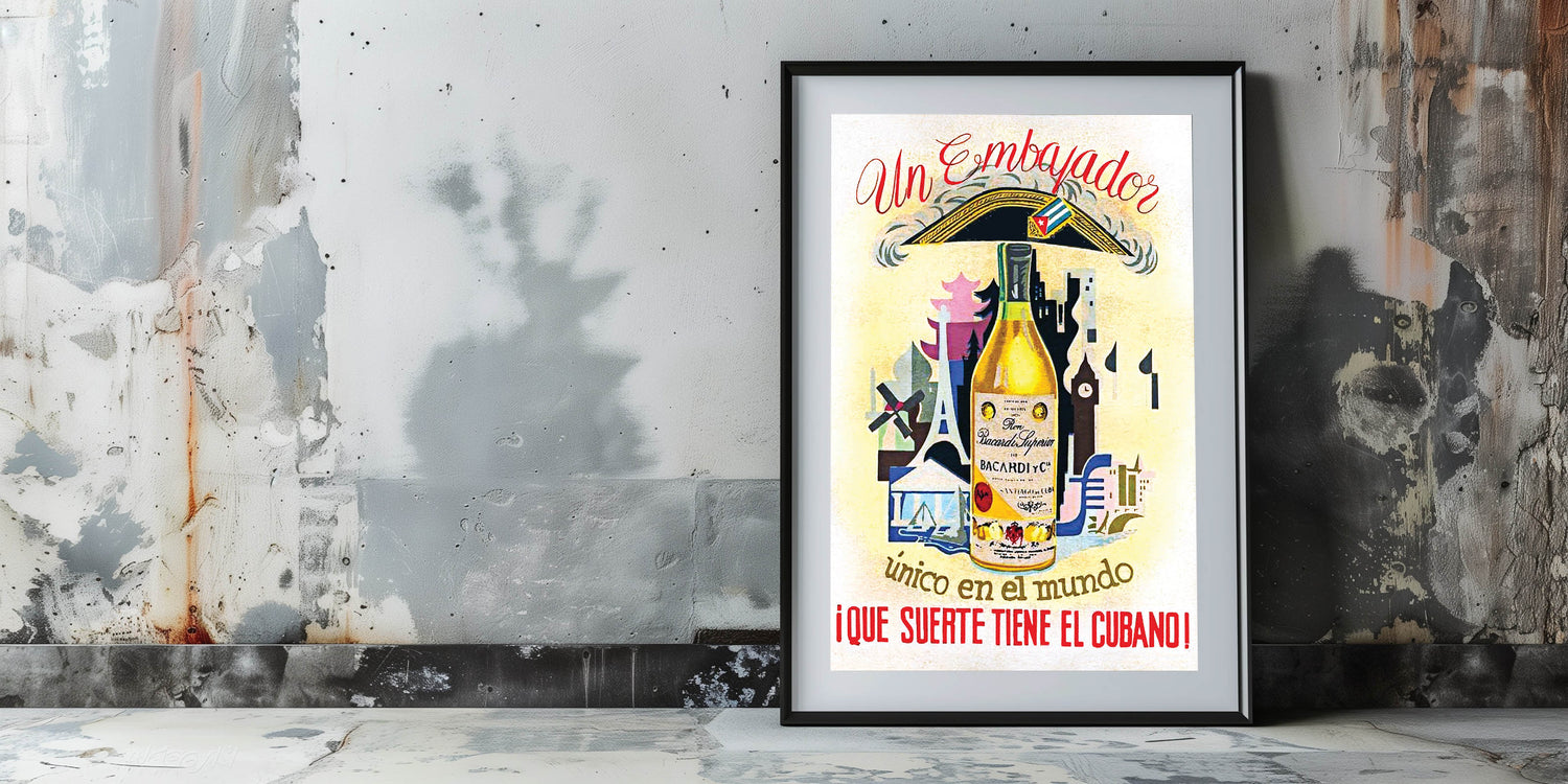 Bring a piece of Cuban history into your home with this stunning Bacardi Rum poster. Whether you're a rum enthusiast or simply love vintage advertising, this piece will make a statement in any room.