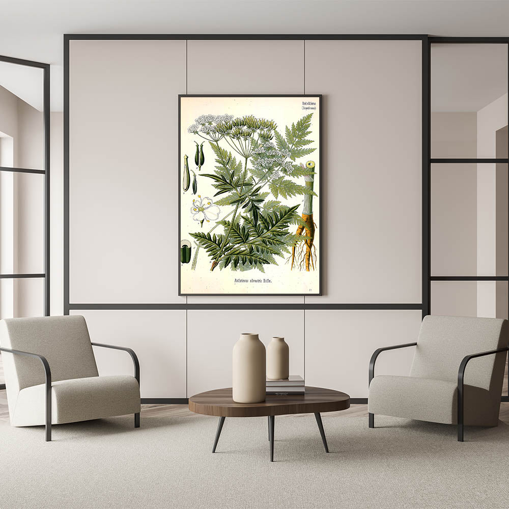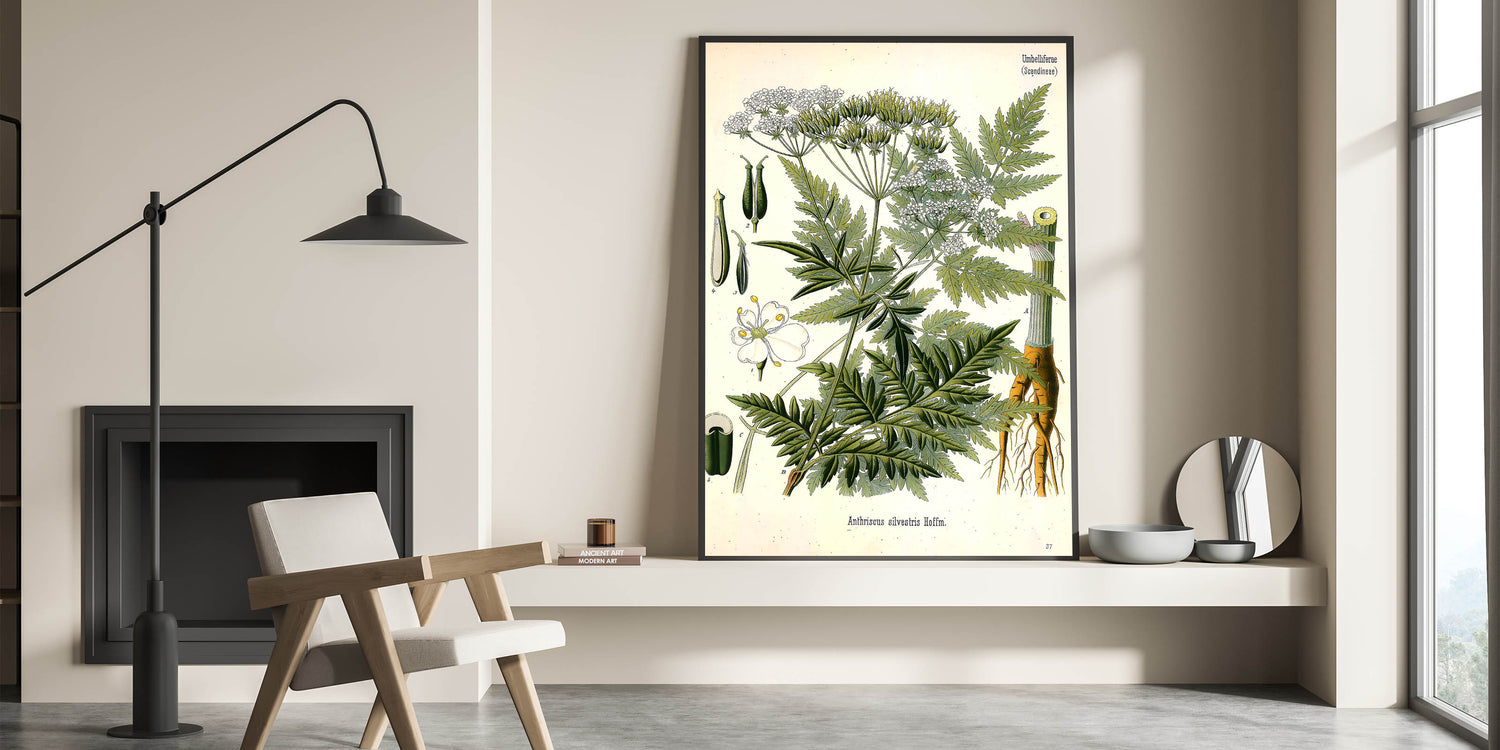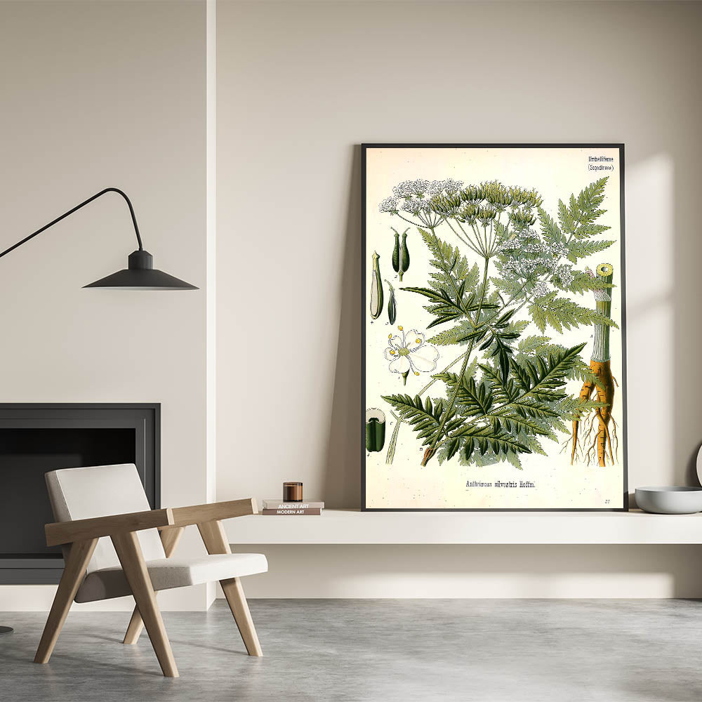 Bring the beauty of nature into your home with this elegant botanical art print of Anthriscus Silvestris, commonly known as wild chervil. Featuring delicate white flowers and finely detailed green leaves, this vintage botanical illustration adds a touch of wild charm to any room. Perfect for nature enthusiasts, botanical collectors, or anyone looking to bring a refreshing, natural element to their decor.