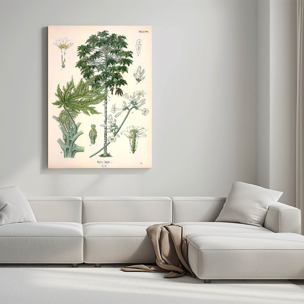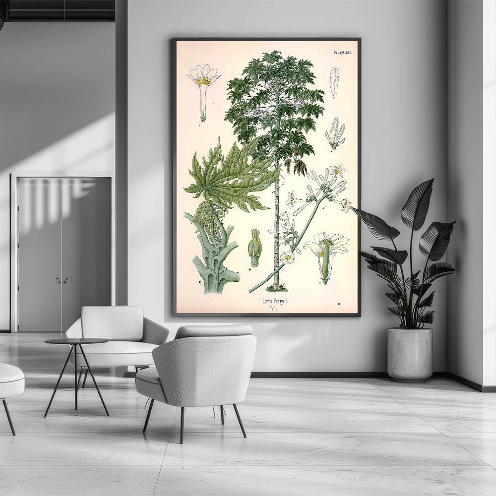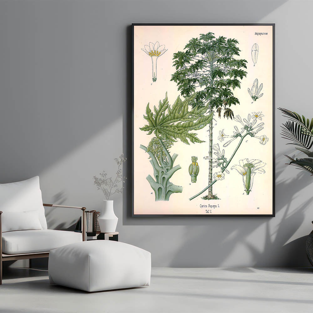 Vintage Botanical Art Print – Carica Papaya Tree and Flowers