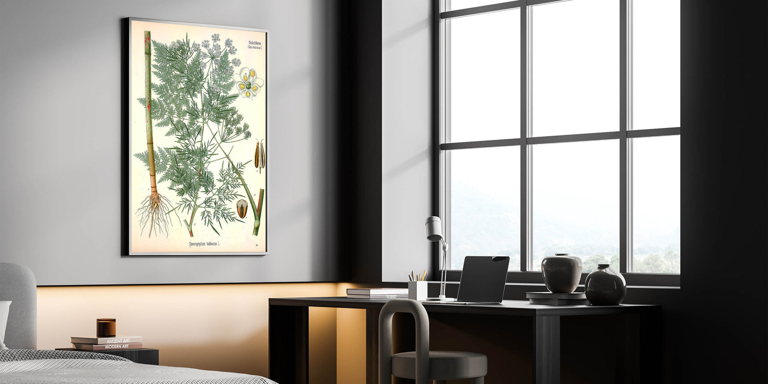 Add a fresh, nature-inspired touch to your home with this beautiful botanical art print of Chaerophyllum Bulbosum. Featuring intricate green foliage and delicate white flowers, this vintage botanical illustration showcases the elegance of this unique plant. Perfect for nature enthusiasts, botanical art collectors, or anyone looking to bring a refreshing, organic element into their home decor.