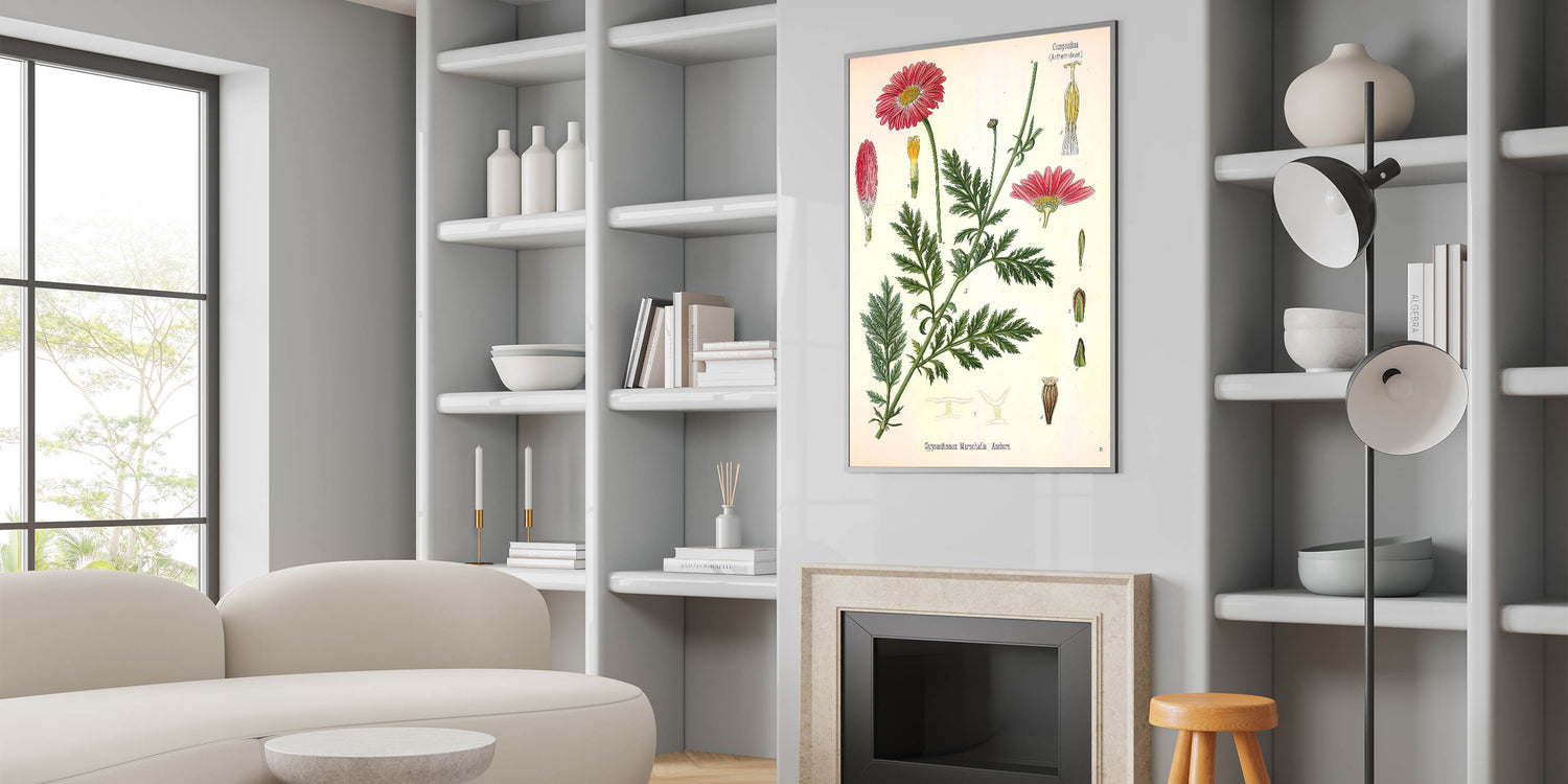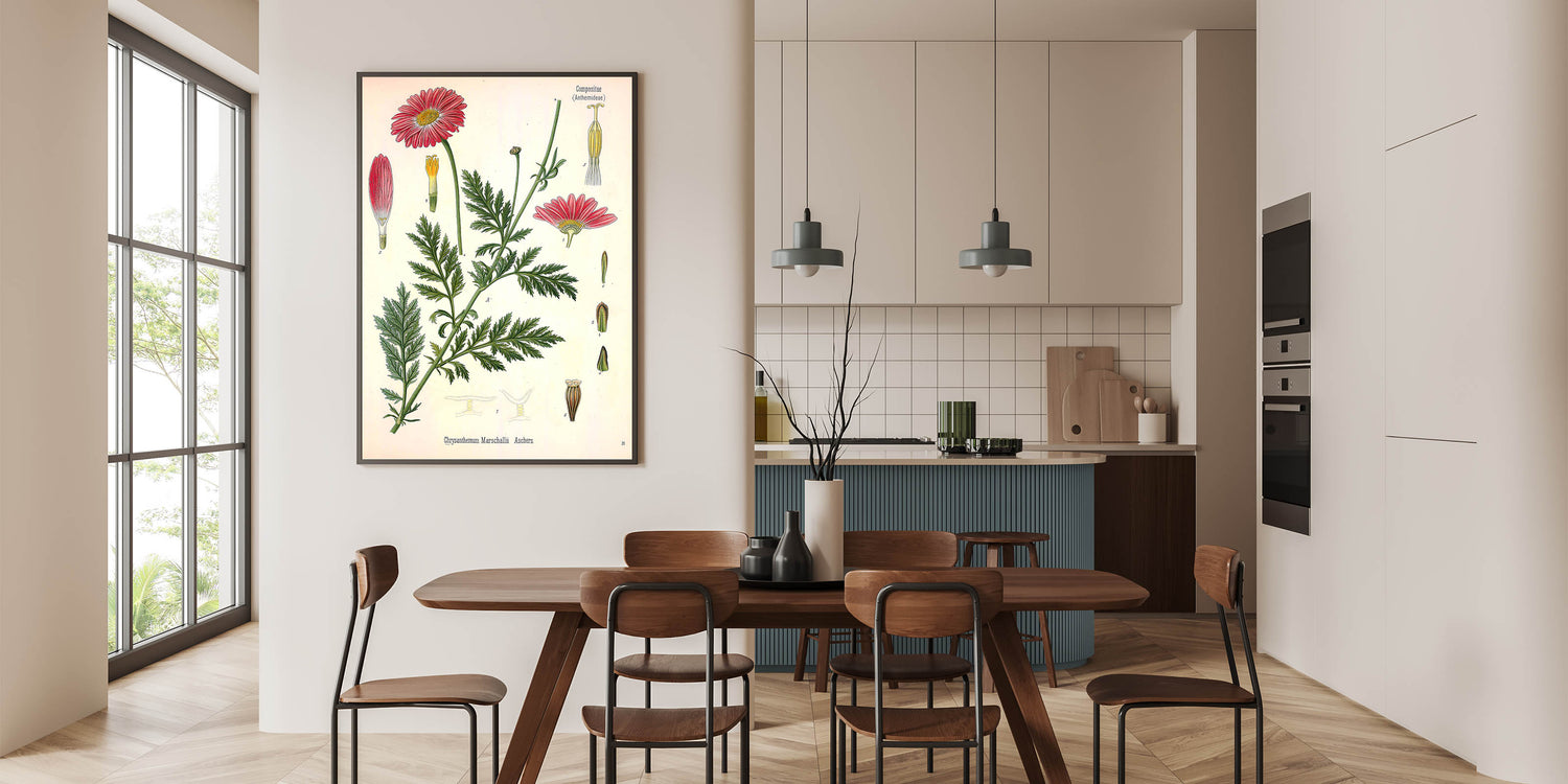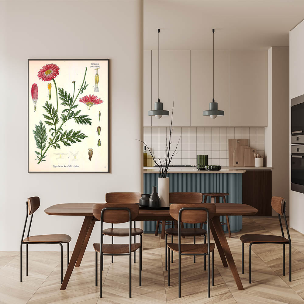 Elevate your space with this stunning botanical art print showcasing the vibrant red Chrysanthemum Marschalii. The detailed illustration captures the rich red petals and green foliage, adding a touch of vintage botanical charm to any room. Perfect for nature lovers and vintage art enthusiasts, this print is a timeless addition to your home decor.
