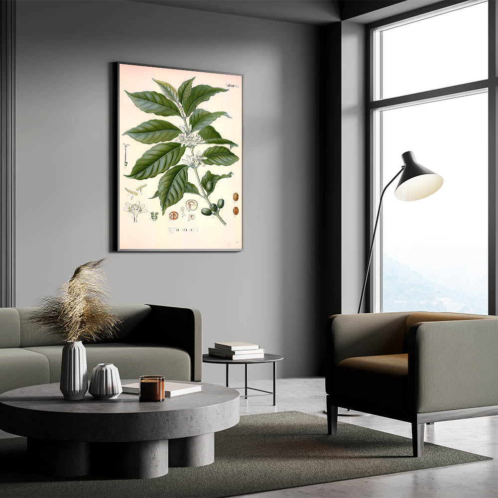 Add a touch of nature's elegance to your space with this vintage botanical art print featuring Coffea arabica (Arabica Coffee). This beautiful illustration highlights the plant's rich green leaves, delicate white flowers, and coffee cherries, showcasing the essence of the coffee plant. Ideal for nature-inspired decor, it brings both charm and sophistication to any room.
