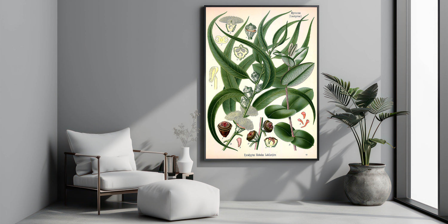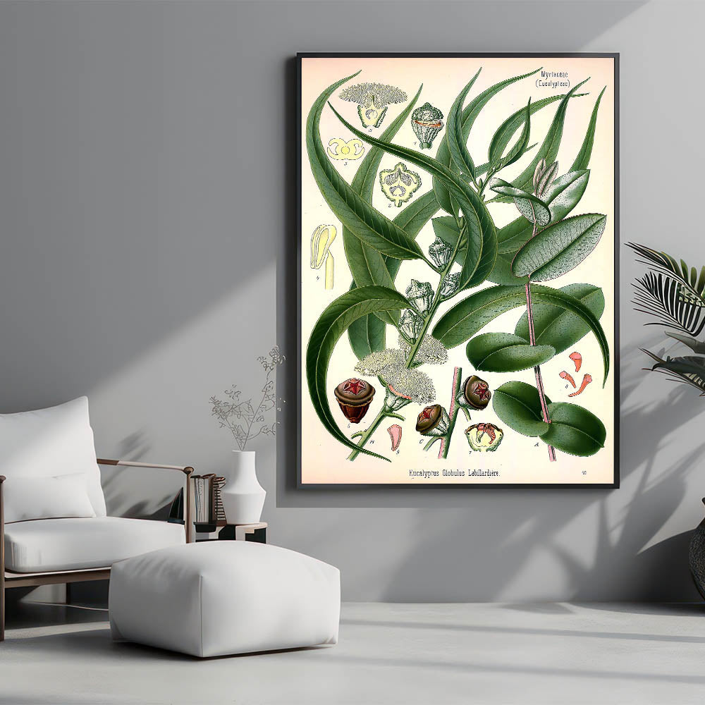 This beautiful botanical print showcases the elegance of Eucalyptus Globulus, making it a perfect addition to your home or art collection.