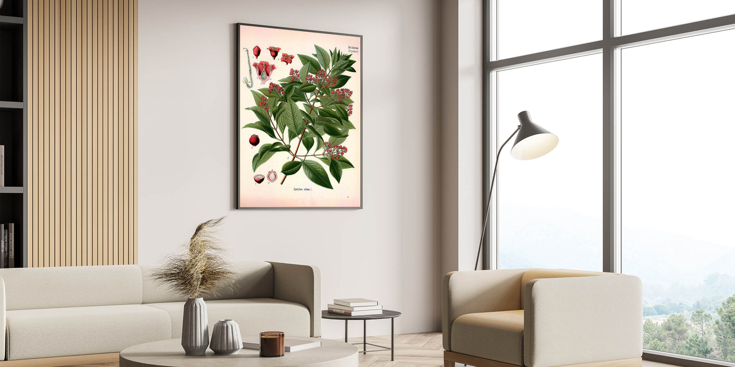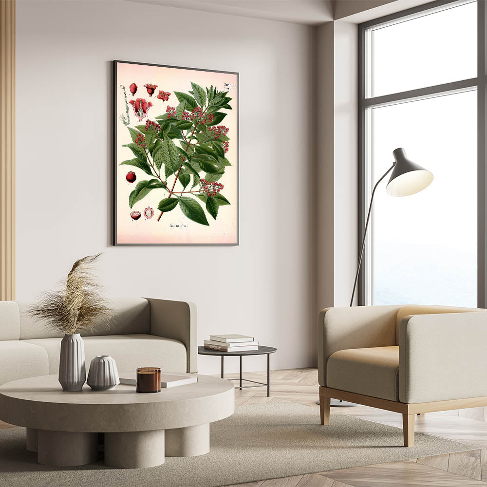 Add a touch of elegance to your home with this stunning botanical art print of Santalum Album, commonly known as sandalwood. This vintage botanical illustration showcases the plant’s beautiful red flowers and lush green leaves, making it a perfect addition to any room. Ideal for nature lovers, botanical art collectors, or anyone looking to enhance their decor with unique, natural beauty.
